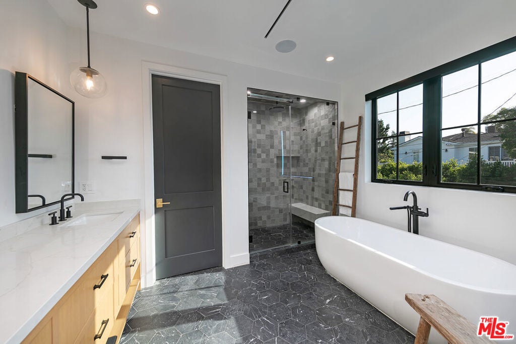 Private and Gated. A true gem nestled in a lovely pocket of Toluca Lake, this unique farmhouse was built by Core Homes with the utmost detail. Enjoy the ultimate luxury of indoor/outdoor living in this stunning smart home, boasting exquisite designer features such as wide plank wood flooring, a Control 4 system, handcrafted woodwork, shelving, and custom light fixtures throughout. The gourmet chef's kitchen is a dream come true, complete with a seated island, quartz waterfall countertop, wine storage and high-end Thermador appliances, two farmhouse sinks, and a walk-in pantry. The open-concept dining room and living room, featuring an elegant fireplace and large floor-to-ceiling pocket window doors, lead to the sun-drenched backyard. The first floor includes an ensuite bedroom currently used as an office, a powder room, and oversized laundry room with ample storage space. Upstairs, the spacious primary suite boasts vaulted ceilings, a large private balcony, dual walk-in closets, and a luxurious primary bathroom with a large shower and soaking tub. The secondary bedrooms are equally impressive, with beautiful lighting, ample closet space, and dedicated ensuite bathrooms. The perfect entertainer's backyard includes an outdoor cabana with a designated pool bathroom and outdoor shower, outdoor kitchen, dining area, mature landscaping, and a glistening pool/spa with Baja shelf. Located minutes from excellent dining and schools, this custom home seamlessly blends modern living with upmarket design in one of L.A.'s most coveted locals. SHOWING TIMES :: Tuesday, Wednesday and Thursday 1p - 7p Saturday 1p - 5p