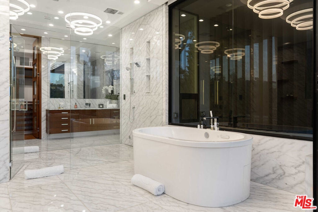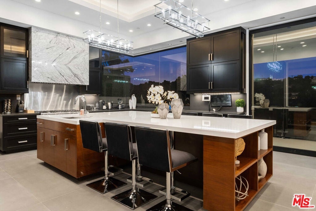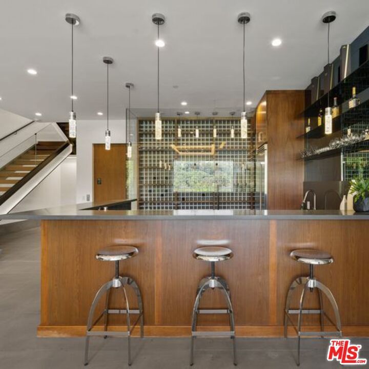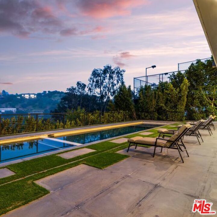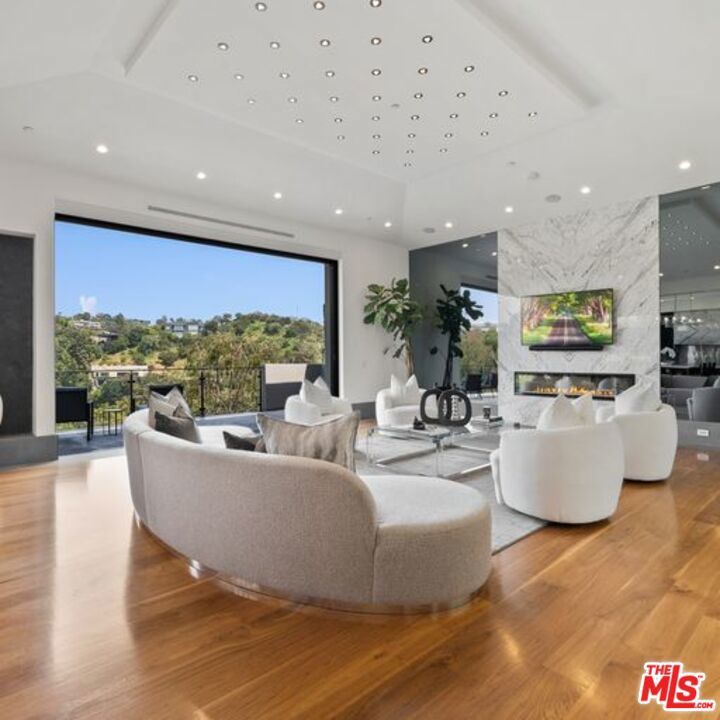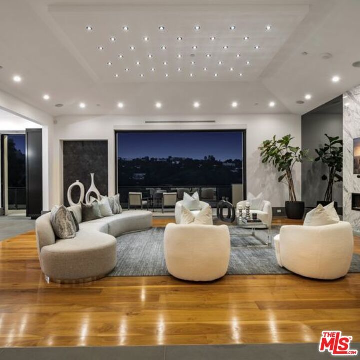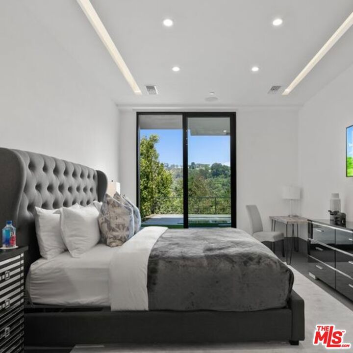 Available turnkey and ready for short, midterm, or long term lease! Situated on a quiet, cul-de-sac street with almost ~7,000 sq. ft of living space. This 3-story home, features 5 bedrooms and 7 baths, an open kitchen including top-of-the-line appliances, and a living room with floor-to-ceiling windows that leads to a terrace with gorgeous canyon views. The primary suite includes a spacious walk-in closet, a private sauna, and a private terrace for the ultimate in serenity and taking in the views. Take the elevator down to the entertainment level which boasts an impressive bar and media room that opens up to the pool and BBQ area, perfectly designed to enjoy indoor/outdoor living. Please inquire about short-term rate.