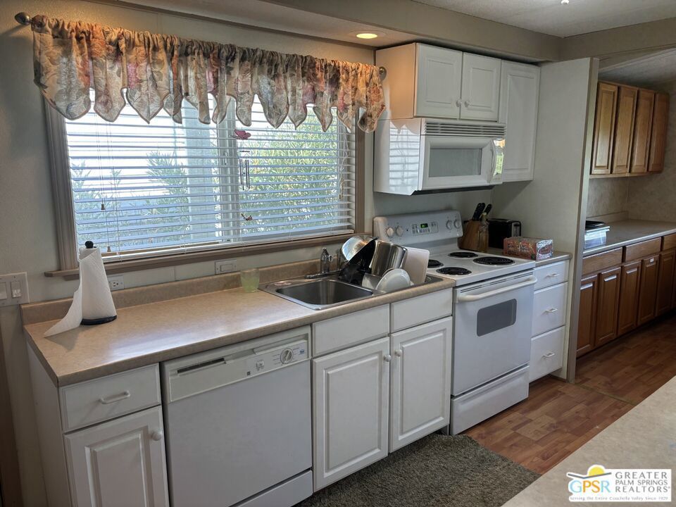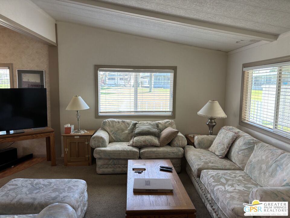 Great opportunity in Hidden Springs Country Club, a tranquil 55+ community in Desert Hot Springs. This large double wide home sits on the 9 hole golf course and has beautiful palm tree and surrounding hills views. The well appointed kitchen includes all appliances, a laundry area with washer/dryer, a huge prep island and breakfast bar, and opens up to the living area and dining room. The exterior features include a covered porch, attached carport, storage shed, and a deck facing the golf course. A little TLC will make this property a stunner. The community has a large swimming pool, 2 spas, a sauna, tennis courts, pickleball courts, a recreation room, and a dog park for your four legged family members. Check this one out!