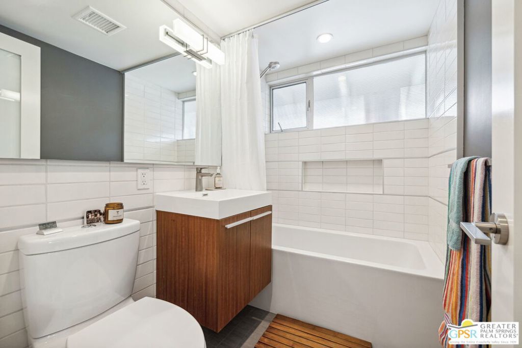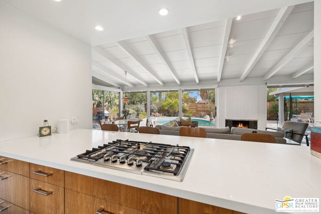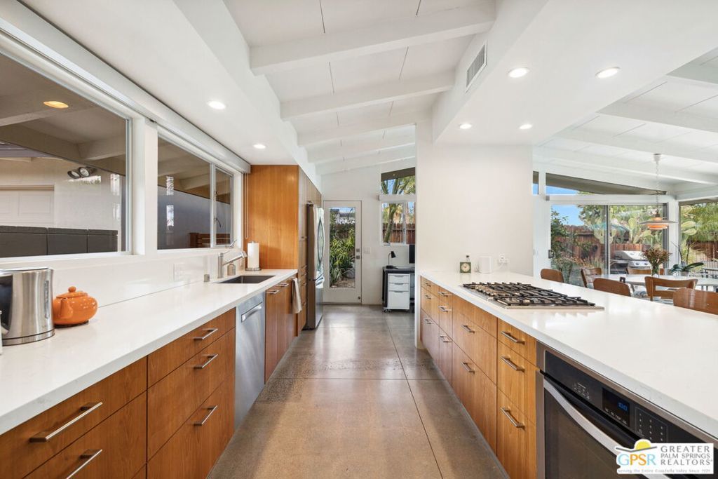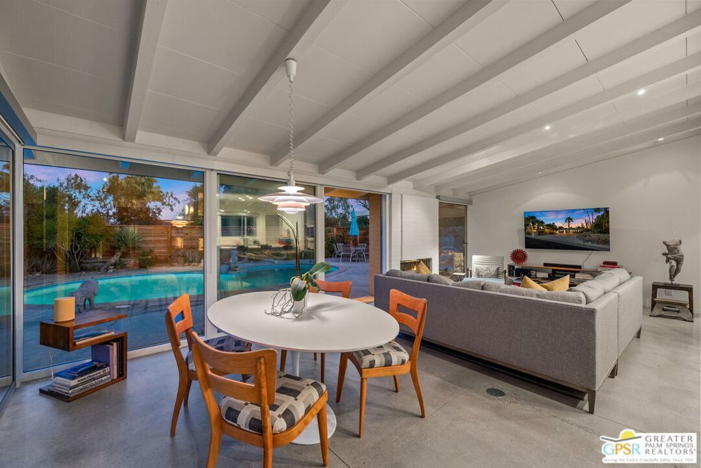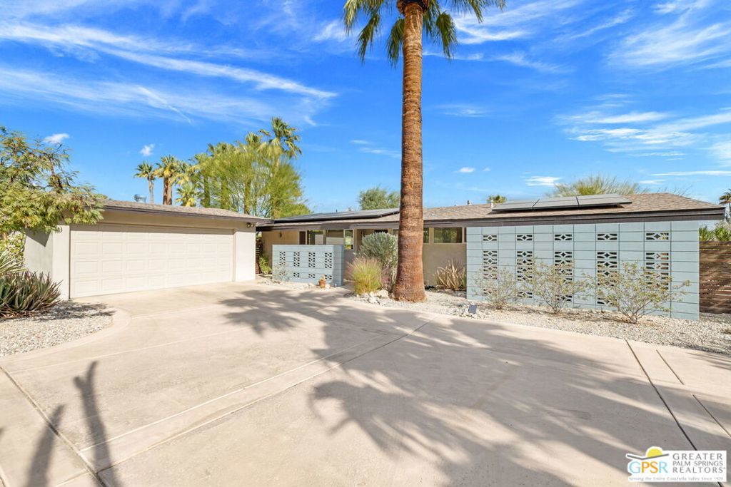*** Monthly Rates: November to December: $6,500. January to April: $7,500. May to October: $4,500. Available: May 1st, 2026, through the rest of the 2026/2027 Season.*** Welcome to 71798 San Gorgonio, an enchanting mid-century modern gem in the heart of Rancho Mirage's coveted Magnesia Falls Cove community. This fully renovated home captures the timeless elegance of mid-century architecture while offering thoughtful, modern updates, making it the perfect seasonal retreat for snowbirds and desert enthusiasts alike. The 1,243 sq ft interior features two usable bedrooms, two beautifully updated bathrooms, and an additional room permanently set up as a dedicated office, ideal for those seeking a workspace during their stay. While there is no true master suite, both bathrooms are conveniently located next to each other in the hallway, ensuring practicality without compromising the home's classic charm. Every detail has been carefully considered to enhance your experience. The polished concrete floors lend a sleek, contemporary feel, while expansive floor-to-ceiling glass windows invite abundant natural light and showcase the breathtaking desert landscape. The kitchen is wonderfully appointed with updated countertops, modern cabinetry, and high-quality appliances, creating a welcoming space for preparing meals or entertaining guests. A decorative fireplace adds a touch of mid-century charm to the living area, though it is not operational and purely aesthetic. Outdoors, a private oasis awaits. The sparkling pool is the centerpiece of the backyard, offering the perfect spot to cool off on warm days or relax under the stars in the serene desert evenings. With eastern exposure, you'll enjoy the gentle morning sunlight and magical moonlit skies, creating a truly tranquil environment. Please note that the pool does not include a spa, allowing the simplicity of the space to shine. Convenience meets sustainability in this home, with owned solar panels installed on the roof to help offset electrical bills. A detached two-car garage adds functionality, housing the washer and dryer for easy access. Whether you're escaping colder climates or simply seeking a serene getaway, this home is a celebration of indoor/outdoor living designed to embrace the beauty of the desert. From its thoughtful layout to its timeless aesthetic, 71798 San Gorgonio offers the perfect blend of mid-century sophistication and modern comfort, making it a retreat you'll never want to leave. Make your seasonal stay unforgettable in this one-of-a-kind property, where every detail invites you to relax, unwind, and experience the best of desert living.