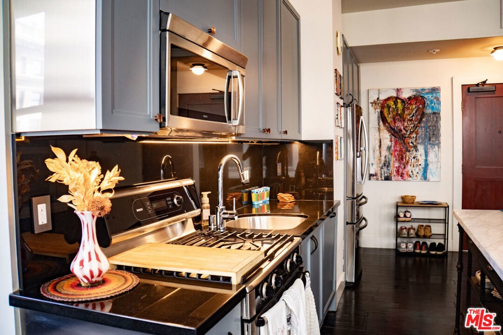 RARE Large & Upgraded Rowan Loft! This is an incredible opportunity to lease a contemporary loft with two baths and soundproof windows in The Rowan Building, the crown jewel of Downtown LA's Historic Core. Unit 514 is a spacious ~1,000 sf condo with a functional modern loft layout, tasteful upgrades, and two full bathrooms. The interior tastefully blends historic character with modern finishes and comforts, including hardwood floors, soaring ceilings, custom designer cabinetry, high-end stainless appliances, in-unit W/D, and central Heat & AC. A wall of huge, mahogany-framed windows with southern exposure brings in an abundance of natural light to the unit and provides views to the gorgeous surrounding cityscape. The primary bedroom is separate and private, and includes an enormous en-suite bath. The living area features a separate full bath, an additional storage closet, and a flexible floorplan with space for living, dining, entertaining and home office. Both bathrooms feature stone tile, granite counters, ample storage and extra-deep soaking tubs. Among the countless features are custom sound-proof windows, which provide a respite from the city bustle when needed, along with automatic window shades, upgraded cabinetry with pantry storage, newer appliances and designer lighting.Originally built in 1912, the historic Rowan Building was designed by famed LA architects Parkinson & Bergstrom in the iconic Beaux-Arts style. In 2009, the building was extensively restored and converted into live-work condominiums. Historic details have been preserved including exposed brick walls, Carrara marble corridors, and Art Deco elevator doors. The property boasts countless amenities including 24/7 security and concierge, bike storage, and resident lounge. Perfectly-manicured outdoor spaces include a lush tropical garden, pet relief area, hot and cold plunge pools, outdoor seating with fire pits, and built-in gas BBQs. The Rowan is perfectly situated within the vibrant Historic Core neighborhood: adjacent to Spring Street Park, two blocks from the Pershing Square Metro, and surrounded by the countless restaurants, culture, transportation and nightlife options to compliment the perfect downtown lifestyle. This is the DTLA lease opportunity that you have been looking for! Showing by appointment. Tenant pays Electric and Cable/Internet. Parking and storage available for an additional fee.