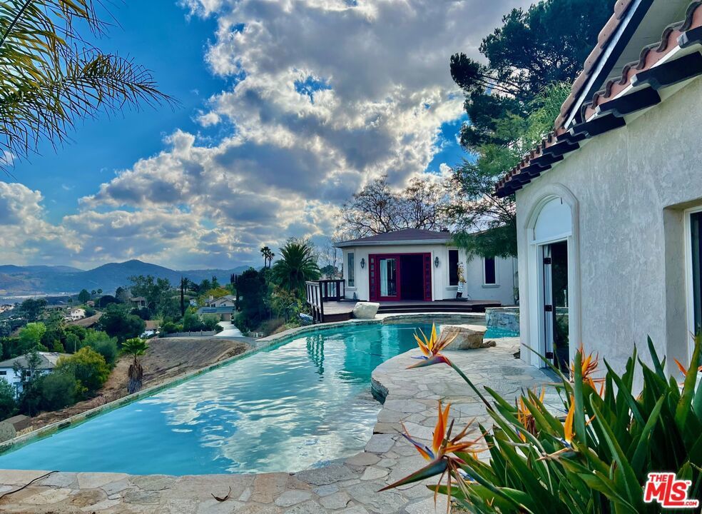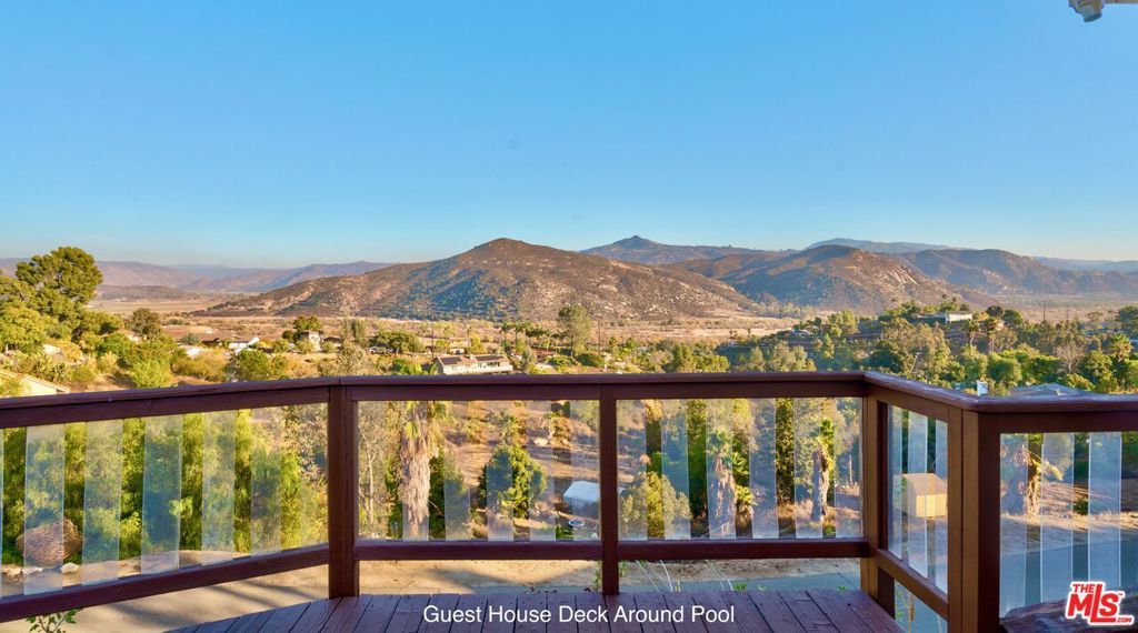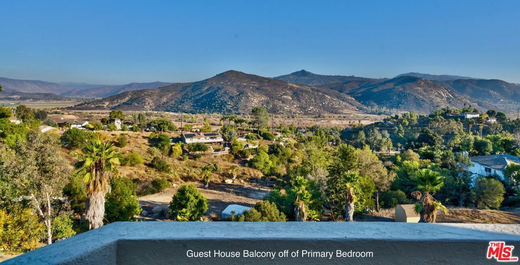 2 Custom Built Homes on Massive 32,234 sqft, 0.74 acre lot! Breathtaking mountain views from most rooms and from the large edge-less pool trimmed with real stone. Stunning property in the quiet neighborhood of San Pasqual, where you'll enjoy the serenity of countryside living while being just minutes from top dining, shopping, and entertainment options. Main house completed in 2002 and Guest house completed in 2004 by the owner/builder, this is one of the newer builds in the area, combining modern amenities with a prime location. Main house: Single level Spanish Ranch house, 4695 sqft, 5 beds, 4 baths, vaulted ceilings to a 15' peak, 10' ceilings, exterior walls built with 2x6 framing, large vaulted kitchen area, staff quarters, and 2 car garage. 2-Story Guest House: 1942 sqft, separate driveway and 1 car garage perfect for generating rental income or a work-from-home/artist's studio. Upper Level; open-concept 1 bed/1 bath with vaulted ceilings. Lower Level; full 1 bed/1bath with kitchenette unit, & additional 3/4 bath to possibly convert the garage parking to another bedroom/studio. Garages are finished, heated, cooled, and dry-walled, with entry doors leading to the main houses, permitted as living areas per builder, offering even more flexibility.
