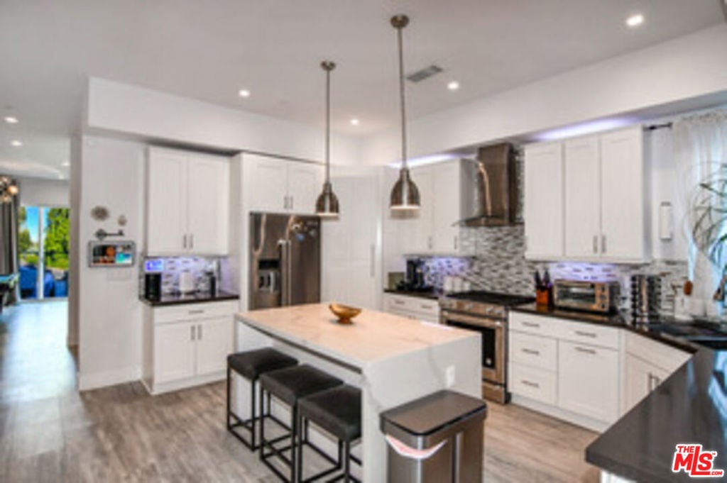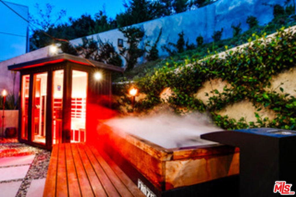 Where Modern Luxury Meets Nature's Embrace! Discover tranquility in the heart of Woodland Hills with this beautifully crafted contemporary home. Nestled just below Cerrillos lookout, this stunning retreat sits amidst rolling grassy hills and towering oak trees, offering both privacy and a connection to nature. Built in 2018, this 3-bedroom, plus den/office, home is a true trophy property, showcasing sleek architectural details and luxurious finishes. Step Inside: The smooth stucco exterior, accented with white lap siding, makes an elegant first impression, while the spacious front deck beckons for alfresco evenings under the stars. The open floor plan on the main level, flooded with natural light, seamlessly integrates defined spaces for relaxation and entertainment. Gather around the gas fireplace in the family area, enjoy meals under the chandelier in the dining space, or cook up a storm in the kitchen, featuring quartz countertops, a center island, and stainless steel appliances. Sanctuary Awaits: Upstairs, the primary suite is a haven of comfort, complete with high vaulted ceilings, dual closets (including a walk-in), and a private patio. The en-suite bathroom boasts dual sinks, a jacuzzi tub, and a sleek subway-tiled shower. Two additional bedrooms share a full bath, equally spacious and luxurious. Space for Work & Play: Head down to the den/office for a peaceful workspace, or indulge in some recreation with the full gym, meditation room, infrared sauna, and pool table. After a long day, unwind with a dip in the jacuzzi or a refreshing plunge in the cold pool. The professionally designed backyard is the perfect backdrop for relaxation and entertainment. Prime Location: Just 30 minutes from Malibu's beaches and a quick drive to local dining and attractions, this home places you central to both adventure and relaxation. Top-rated schools, easy freeway access, and nearby hiking trails make this an ideal location for anyone looking to experience the best of Woodland Hills. Experience life at this sanctuary, where wellness, comfort, and creativity converge in an unforgettable setting. Fully Furnished and Ready for Move in . . . Schedule your tour today!