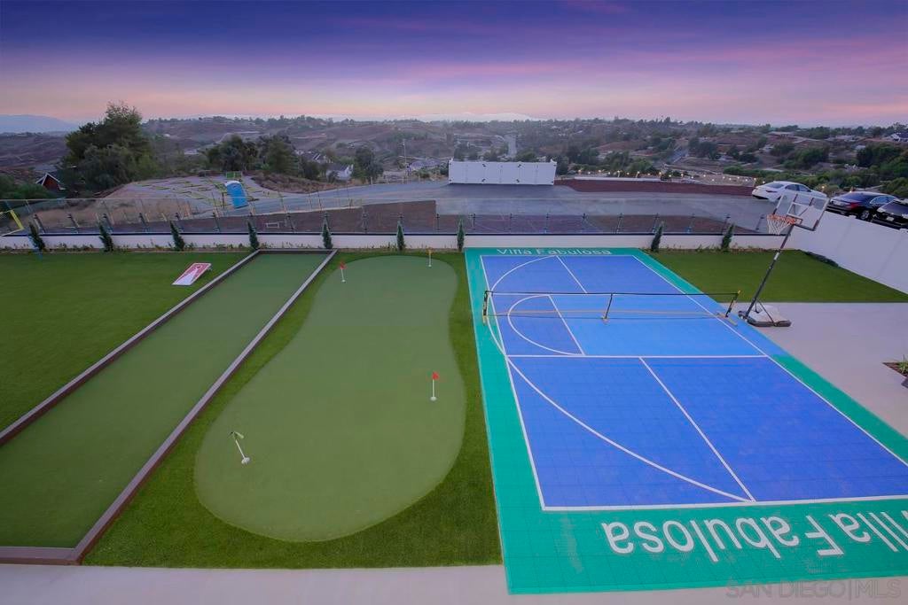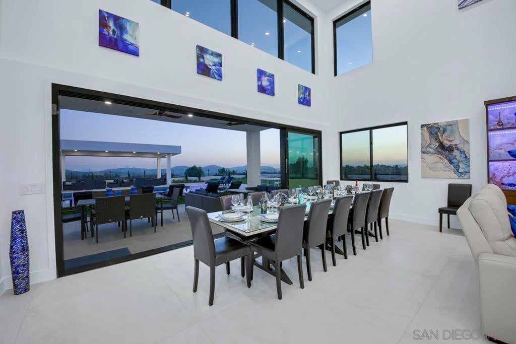 Villa Fabulosa is an architectural masterpiece and the ultimate destination for luxury and entertainment in the heart of Temecula Wine Country, accommodating up to 24 guests. Unmatched Location and Views: Enjoy breathtaking 360-degree views of rolling vineyards and hot air balloons as you immerse yourself in the magic of Wine Country. With over 55 wineries just minutes away, this villa is a dream getaway for wine enthusiasts and vacationers alike. Refined Interiors and Spacious Accommodations: Seven Bedrooms, 5.5 Bathrooms: Perfectly designed for large groups, including a stunning bridal suite ideal for special occasions. Sophisticated Decor: Contemporary furnishings create an ambiance of elegance and relaxation. State-of-the-Art Kitchen: Equipped with premium appliances and every cooking tool imaginable. Missing something? Let us know, and we’ll provide it for your stay. Outdoor Luxury and Entertainment: Private Pool Area: Relax by the sparkling pool with two Baja shelves and enjoy sunsets under a pergola with seating for 20. Chef’s Outdoor Kitchen: Cook with two pizza ovens, a Teppanyaki grill, a large BBQ, burners, and a full outdoor refrigerator—all paired with a large-screen TV. Activities Galore: Professional 18-hole mini-golf, pickleball and basketball courts, bocce, and a professional 8' pool table offer endless entertainment. Indoor Fun for All Ages: The game room boasts arcade games, air hockey, foosball, shuffleboard, and a poker table for lively game nights. Luxury Amenities and Extras: Tesla chargers and an ADA-accessible bathroom for inclusivity and conv