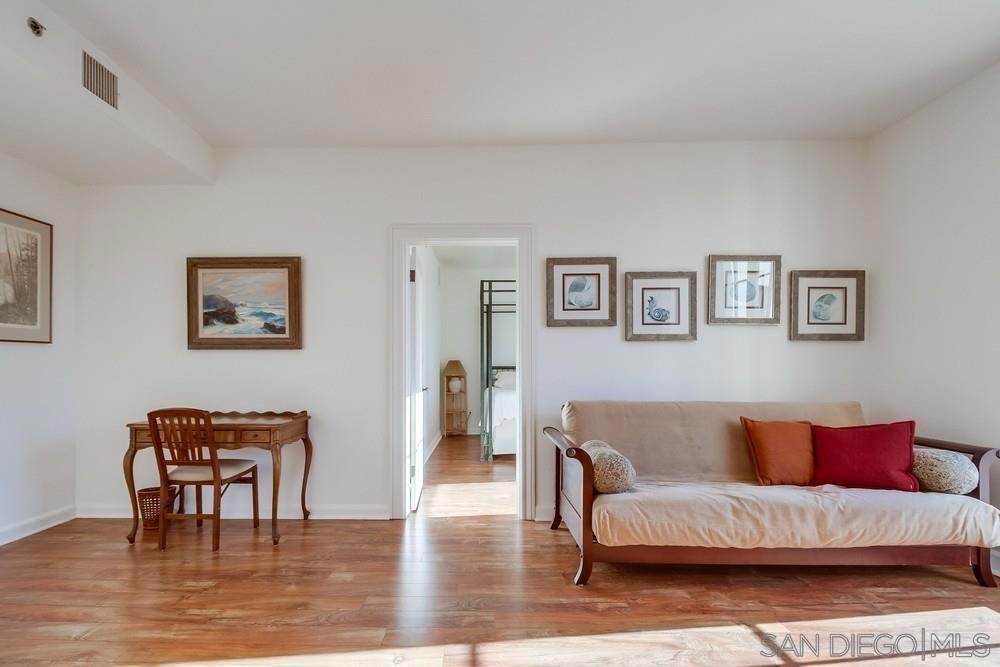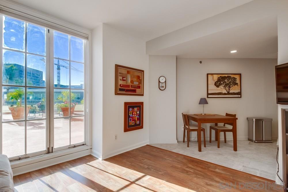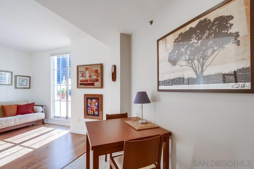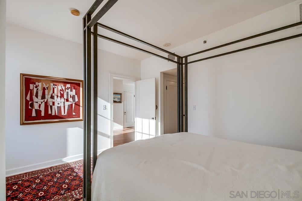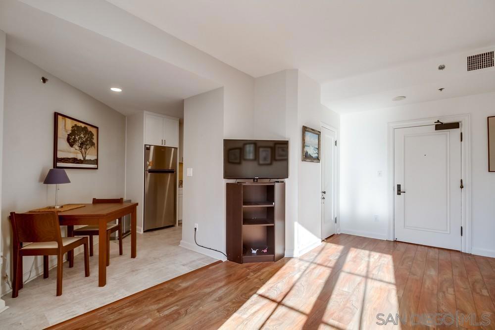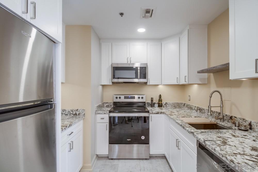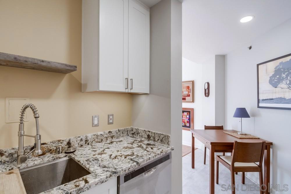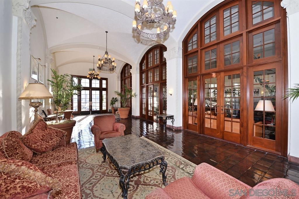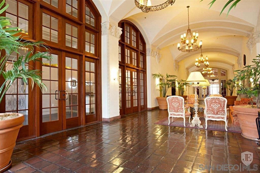 West facing one bedroom on the terrace level of the historic and iconic El Cortez! Priced for immediate action. A new look and fresh paint just completed in January 2025! The Mills Act for historically significant properties in place for a substantially lower property tax rate. Gorgeous granite and stainless kitchen with under cabinet lighting. Beautiful floor to ceiling windows fill the space with natural light....large bedroom with ample closet storage & classic subway tile bath. Complex features a stunning lobby, well equipped gym, outdoor pool, full elevator access, gated garage with one space. Re-write your own history and become a resident of this storied San Diego landmark!