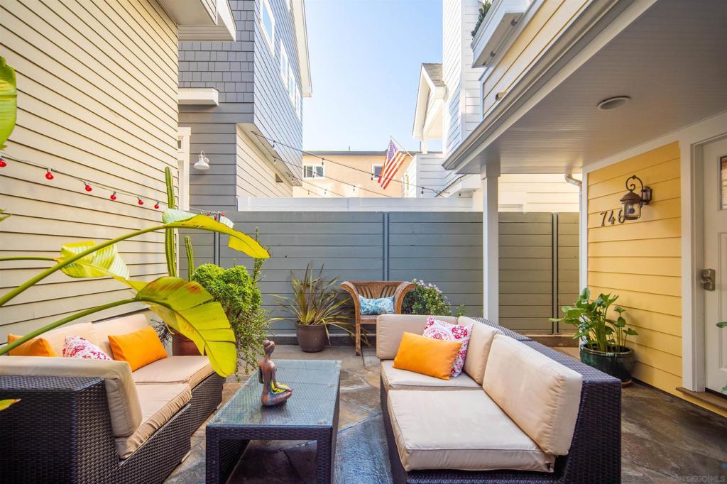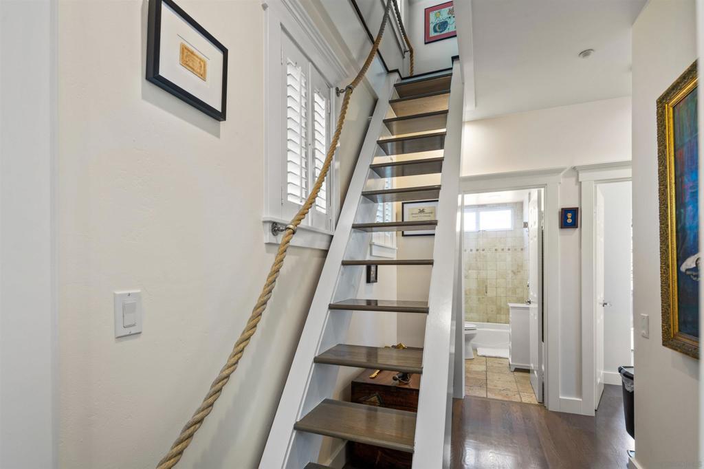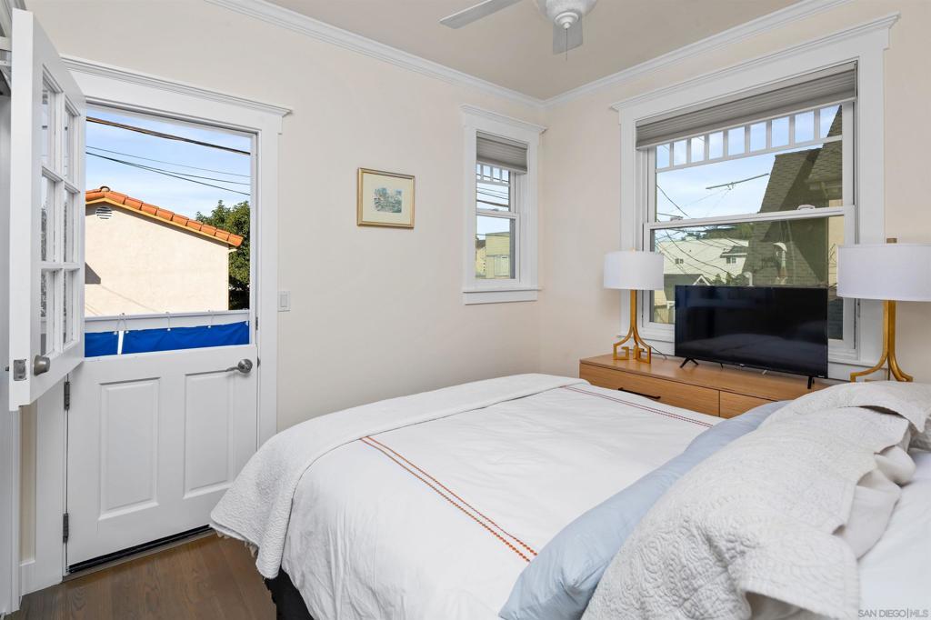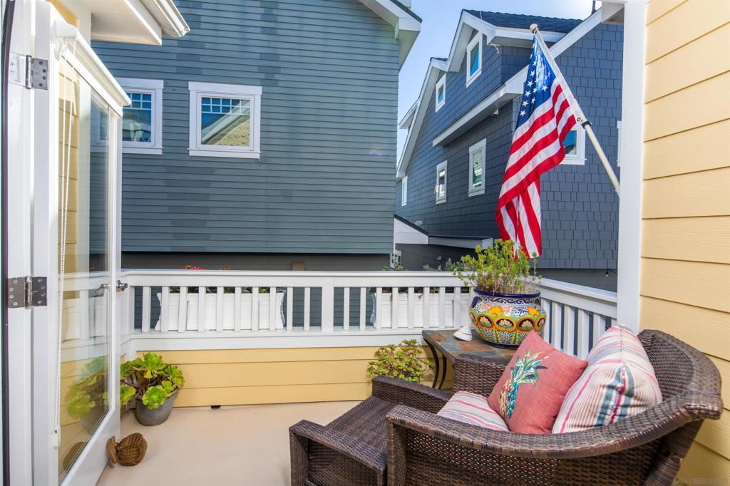 Wonderful location! This beautiful fully furnished, air-conditioned home boasts 3 bedrooms with an optional fourth being a third-level loft complete with a daybed with two twins and a window bed perfect for extra guests. The location is ideal for walking and/or biking to the beach and into town. Enjoy the outdoor seating on the front patio and balconies throughout the home. As you enter, there is a bedroom with a queen-size bed with its own bath along with an office and a stacked washer/dryer. Walk up the staircase to the second level where you will find an open and airy kitchen/dining/living room area with vaulted ceilings and wonderful lighting from all the windows. The kitchen has stainless steel appliances and a granite island with seating for 3 which opens up to the living room complete with a gas fireplace, TV, comfy window seat, built-in bookcase, and French doors leading to a balcony with seating. There are 2 additional bedrooms on the second level that share a bath, one has a queen-size bed with a TV, and a barn-style door that opens out to a balcony with seating. The other bedroom has a King size bed and also has a TV. The third level features a cozy loft with a twin trundle bed and a window seat/bed along with a desk. The home also has a BBQ, bikes, and all the beach amenities you will need to enjoy your Coronado vacation. Please Note: This is a back house on an alley with a detached home in front. Monthly rates vary depending on the season and length of the lease. September/RENTED October thru December 2025/RENTED January 2026 thru May 2026/ $9,500 June 1 - 26, 2026/ $11,500 JULY 2026 / RENTED August 2026 / $12,500 September thru December 2026/ $9,500