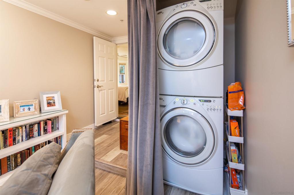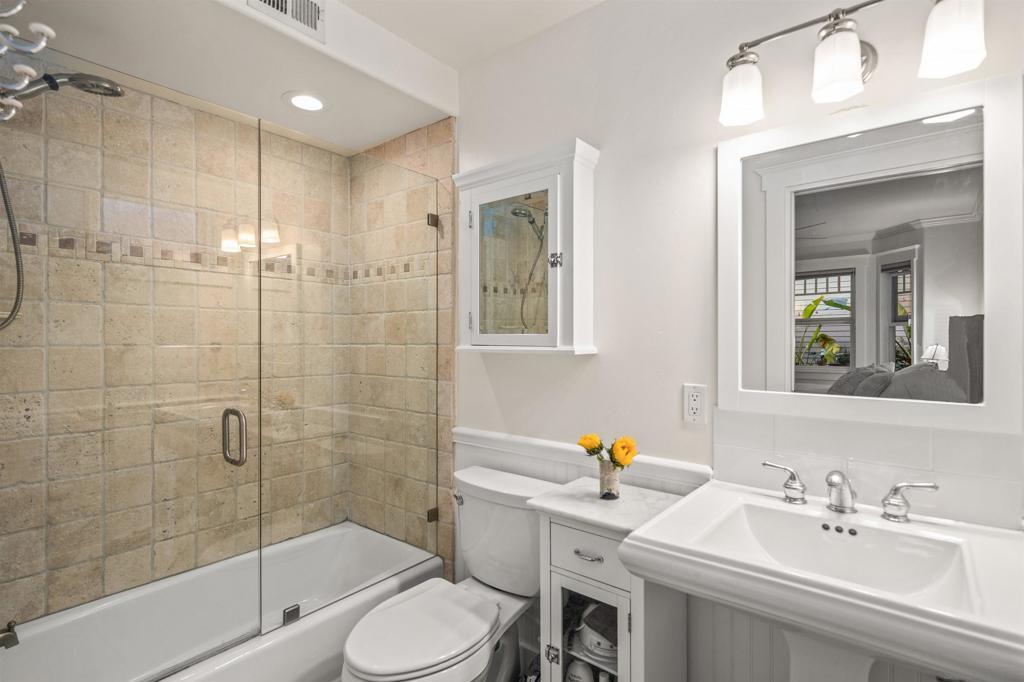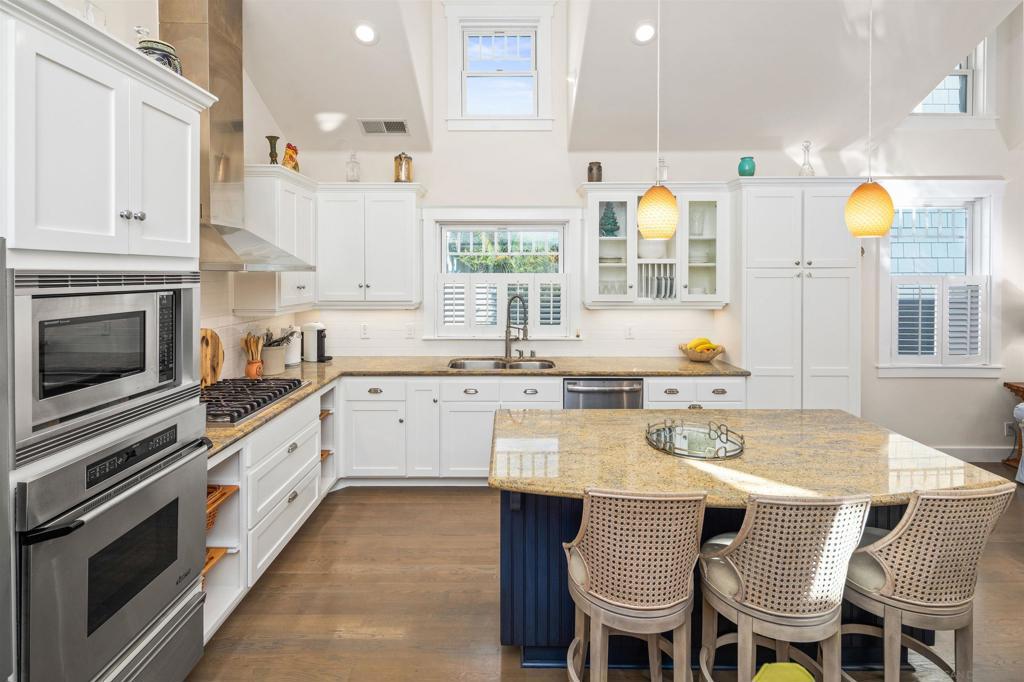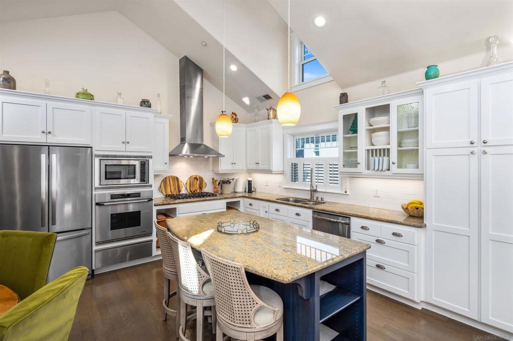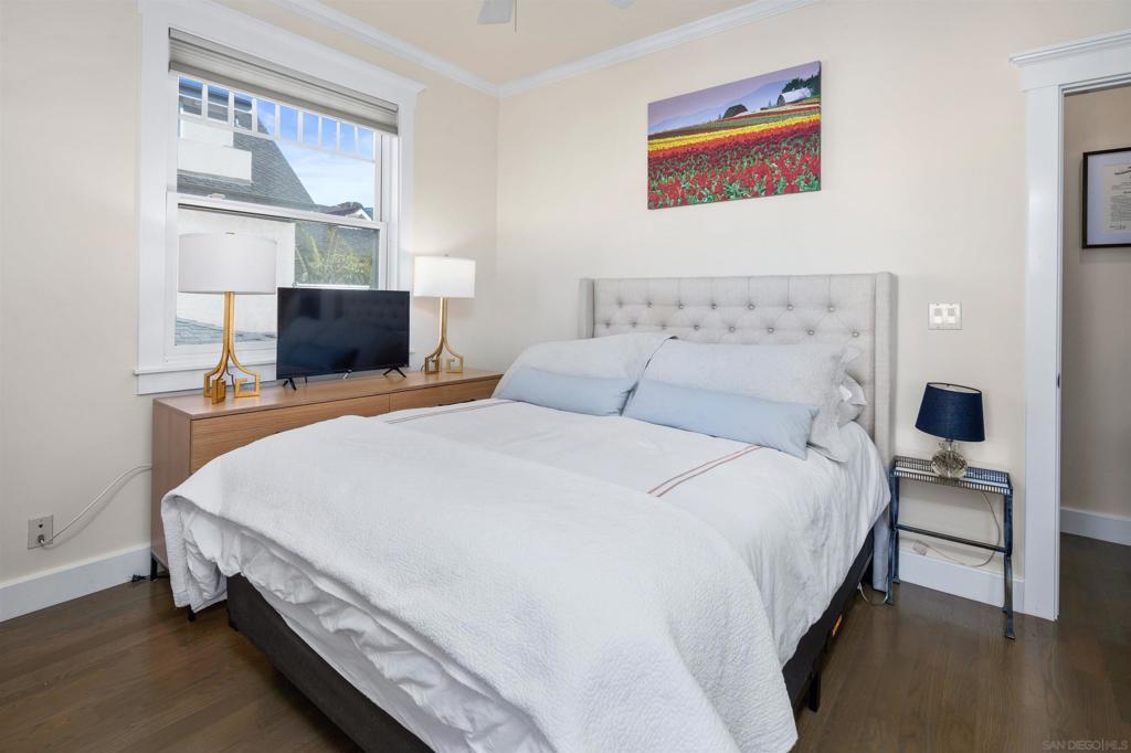 Wonderful location! This beautiful fully furnished, air-conditioned home boasts 3 bedrooms with an optional fourth being a third-level loft complete with a daybed with two twins and a window bed perfect for extra guests. The location is ideal for walking and/or biking to the beach and into town. Enjoy the outdoor seating on the front patio and balconies throughout the home. As you enter, there is a bedroom with a queen-size bed with its own bath along with an office and a stacked washer/dryer. Walk up the staircase to the second level where you will find an open and airy kitchen/dining/living room area with vaulted ceilings and wonderful lighting from all the windows. The kitchen has stainless steel appliances and a granite island with seating for 3 which opens up to the living room complete with a gas fireplace, TV, comfy window seat, built-in bookcase, and French doors leading to a balcony with seating. There are 2 additional bedrooms on the second level that share a bath, one has a queen-size bed with a TV, and a barn-style door that opens out to a balcony with seating. The other bedroom has a King size bed and also has a TV. The third level features a cozy loft with a twin trundle bed and a window seat/bed along with a desk. The home also has a BBQ, bikes, and all the beach amenities you will need to enjoy your Coronado vacation. Please Note: This is a back house on an alley with a detached home in front. Monthly rates vary depending on the season and length of the lease. September/RENTED October thru December 2025/RENTED January 2026 thru May 2026/ $9,500 June 1 - 26, 2026/ $11,500 JULY 2026 / RENTED August 2026 / $12,500 September thru December 2026/ $9,500