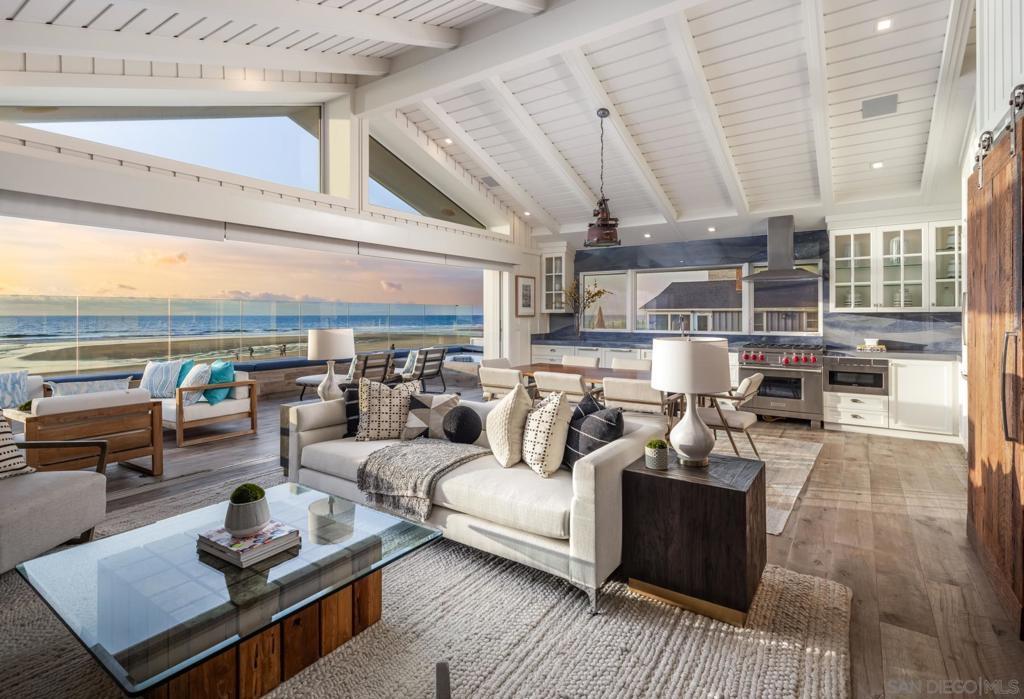 An extremely rare opportunity to own a corner-lot, oceanfront home directly on the sand in Del Mar, this 5-bedroom coastal retreat offers unmatched privacy, no direct neighbor to the north, and unobstructed panoramic views from every angle. A massive wraparound deck creates the ultimate setting for indoor-outdoor living with space to lounge, dine al fresco, soak in the jacuzzi at sunset, or rinse off in the outdoor shower after a surf session. Tastefullyrenovated with top-tier finishes and a timeless coastal design, this property blends casual beach living with elevated style. The single-level main residence features an ocean-view primary suite with vaulted ceilings, a guest suite, spacious open-concept living, and two full bathrooms. The detached guest quarters above the garage include two additional bedrooms, two bathrooms, and a cozy family room with wet bar, while a separate bedroom and bathroom with private entrance sits adjacent to the garage. Located just steps from Del Mar’s most popular restaurants and shops, this home checks every box for luxury beachfront living and is truly one of a kind.
