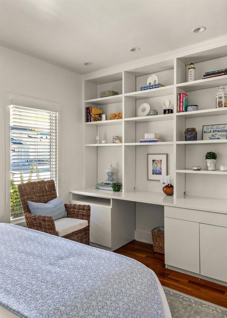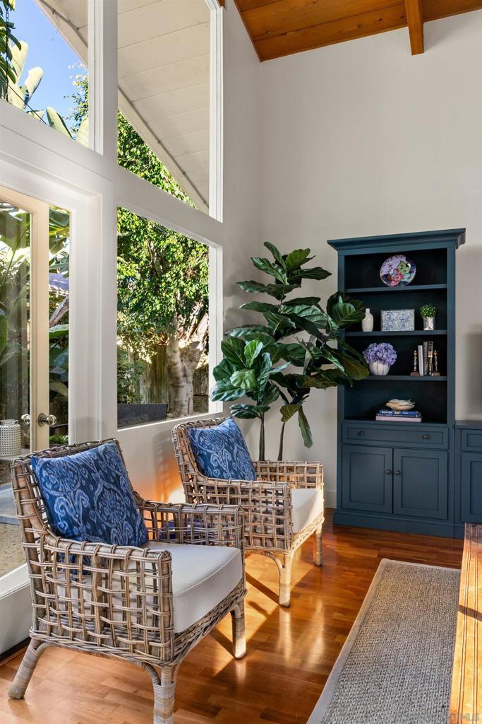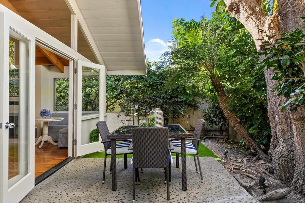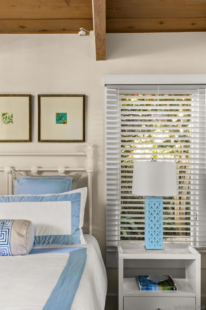 This fully furnished property is available for short-, mid-, and long-term rentals. Rates are subject to change based on seasonality and length of stay. Contact for specific rates tailored to your preferred stay length and timing. Welcome to this charming 2-bedroom, 2-bathroom cottage in the heart of La Jolla Shores. This classic beach abode is a mere 5 minute walk from the sandy shores and just one block from stylish boutiques, surf shops, and delightful dining spots. With its classic coastal design, vaulted wood ceilings, and hardwood floors throughout, this quaint retreat offers a warm and inviting atmosphere for your beachside getaway. The open living space is perfect for relaxation and gathering, featuring a cozy living room with a fireplace, a flatscreen TV, and large floor-to-ceiling windows that frame the lush backyard. Adjacent to the living area, the dining space comfortably seats six, creating an ideal setting for shared meals and conversations. The well-equipped kitchen includes stainless steel appliances and a breakfast bar with seating for three, offering everything you need for preparing meals during your stay. The primary bedroom is a peaceful sanctuary with a king-sized bed and direct access to the back patio, allowing you to enjoy the outdoors at any time. The second bedroom features a queen-sized bed and a built-in desk/vanity, offering versatility and comfort. The first bathroom boasts a stone vanity and a soaking tub, while the second bathroom includes a glass-enclosed rain shower. Step outside to your own backyard boho paradise, complete with lush landscaping, alfresco dining for four, and a cozy seating area perfect for enjoying the California sunshine. Additional amenities include a sofa bed for extra sleeping accommodations, air conditioning, and a washer and dryer for convenience. Parking is available for one car in the garage. This delightful retreat provides the perfect blend of comfort and location, offering everything you need to make your La Jolla Shores vacation unforgettable. Sleeping Accommodations (Maximum 4 guests): Bedroom 1 - 1 King bed Bedroom 2 - 1 Queen bed Living room - 1 Sofa bed STR-11033L TOT 658871