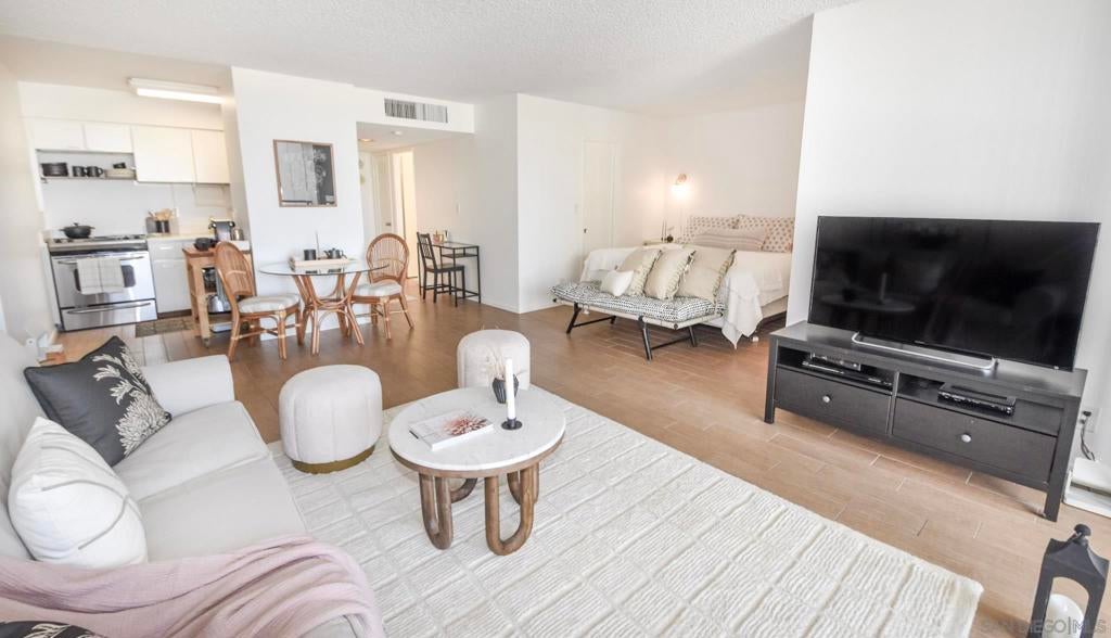 Welcome to this Vacation Rental in Coronado Shores at La Sierra! The studio is situated in a community that boasts a range of amenities to enhance your stay. Take a dip in the refreshing community pool, perfect for those warm summer days. Stay active and enjoy a game of tennis on the on-site courts, or work up a sweat in the well-equipped gym. For those who love the beach, the unit also provides access to a beach club, allowing you to soak up the sun and enjoy the sand and surf. Whether you're looking to relax by the pool, stay active with a game of tennis, or simply unwind on the beach, this short term or long term rental offers it all.