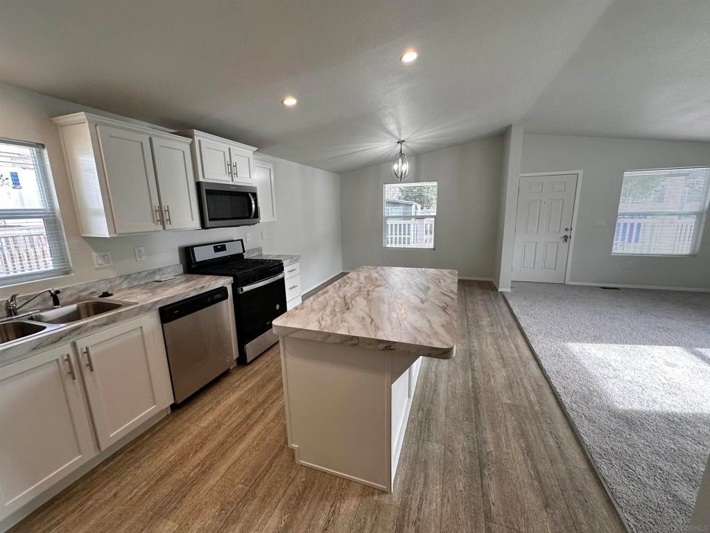 Beautiful and modern newly built 3-bedroom, 2-bath home in the highly desired Valley of Enchantment family park. Built with durable 2x4 construction and a 60 lb. roof load for snow, offering lasting quality and peace of mind. Features a bright open floor plan, vinyl sheet flooring, carpeted bedrooms, new appliances, and a spacious main bedroom with a large walk-in closet. A perfect starter for families or first-time buyers seeking quality and value. Space rent $1,080/month.