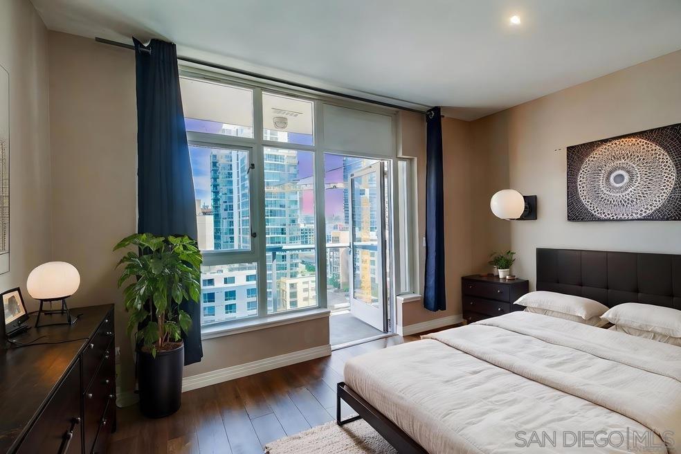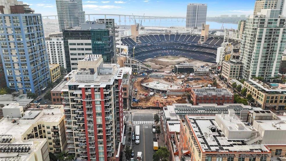 Captivating City Views Next to Petco Park! Elevate your lifestyle in this 12th-floor studio unit with high ceilings and city views. Residence #1207 boasts elegant granite counters, stainless steel appliances, wood floors, and floor-to-ceiling windows which offer natural light throughout the interior while also offering breathtaking cityscapes. There is also a private balcony which is perfect for enjoying a morning cup of coffee or evening glass of wine. The open floor plan seamlessly integrates the living spaces, creating an inviting ambiance complemented by the convenience of an in-unit washer/dryer, an underground parking space. The building's amenities include a secured lobby entrance, fitness room, and a rooftop BBQ/patio deck with exciting views of downtown. Immerse yourself in East Village, with easy access to Padres games, local bars, and top-rated restaurants.