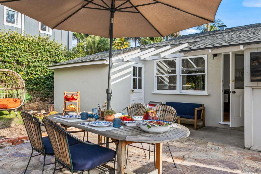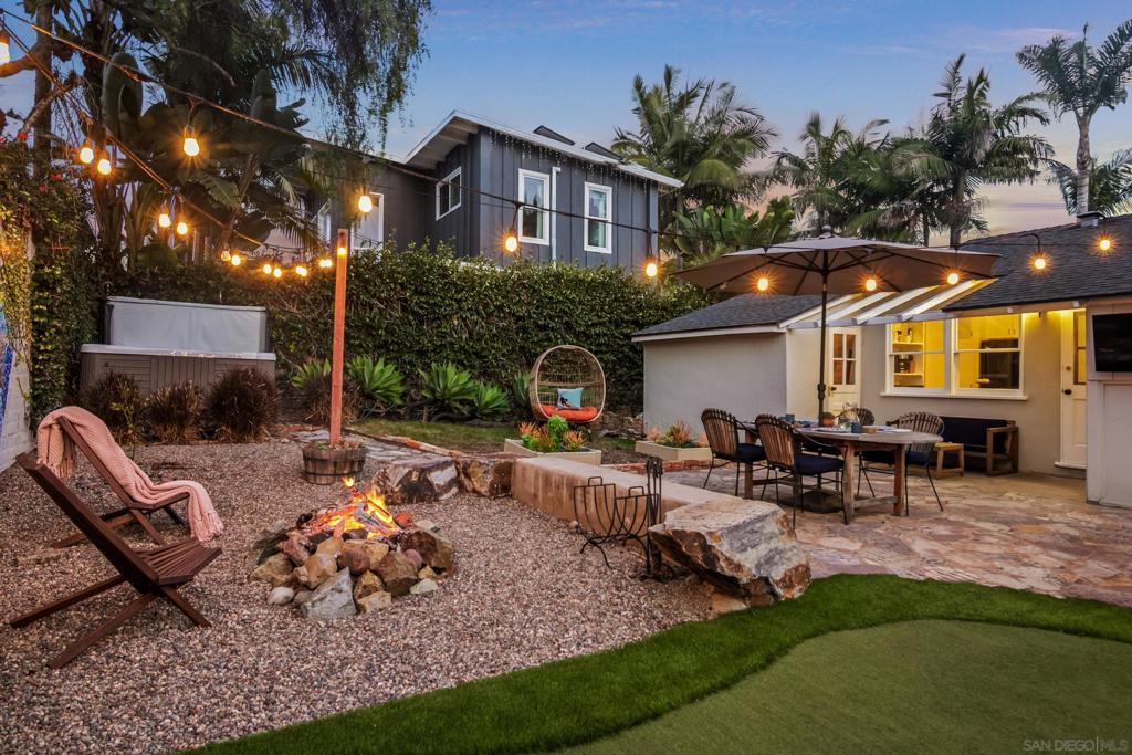 Welcome to this 2BR/1BA coastal retreat in a vibrant beachside neighborhood, perfect for relaxation and exploration. Enter through the front door, up four steps, into a cozy living room with a record player, plush couch, and flat-screen TV. The kitchen is fully equipped with a gas oven, air fryer, crockpot, and a dining table for four, with a large window overlooking the beautiful backyard. Note: no dishwasher. Down the hall are two serene bedrooms: one with a king bed and the other with a queen bed, both with ample closet space, ceiling fans, flat-screen TVs, and soft natural lighting. The full bathroom offers standard amenities. Step outside to a private backyard oasis with a hot tub, outdoor seating, propane BBQ, putting green, hammock, outdoor TV, and a wood-burning fire pit (wood not provided). An outdoor shower is perfect for rinsing off after a beach day. Located just blocks from the ocean, the home stays cool with coastal breezes. Free parking is available, and there’s a washer/dryer in the outdoor patio closet. Sleeping Accommodations (Max 4): Bedroom 1 - King bed Bedroom 2 - Queen bed 1 full bathroom. STR- 11105L TOT-640540