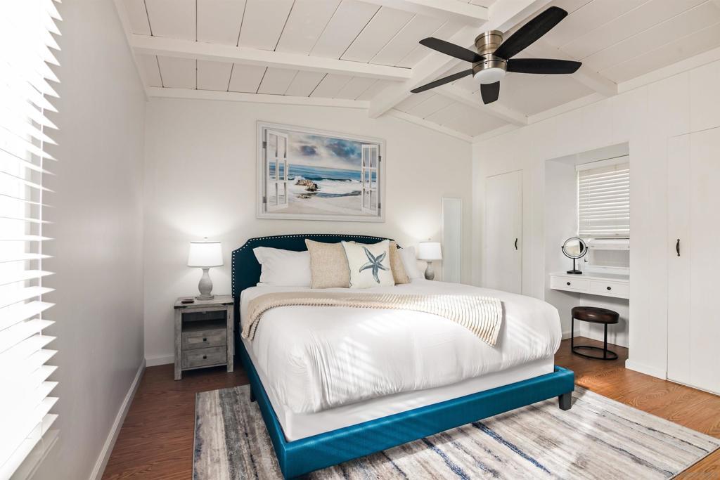 This coastal-inspired retreat offers a stylish open living and dining area with a 55" Smart TV, ceiling fan, and cozy décor. The bright, airy kitchen is fully stocked with modern appliances for easy meal prep and socializing. The tranquil bedroom features a king bed, sunlit windows, a ceiling fan, closet space, and a 55" Smart TV. The living room has a queen sleeper sofa and a 55" Smart TV for entertainment. The full bathroom includes a shower/tub combo. Enjoy an exclusive patio with bistro table seating for outdoor dining or morning coffee, plus an outdoor shower for rinsing off after the beach. Additional amenities include laundry access and garage parking. Sleeping Accommodations (Max 4 guests): Bedroom 1 - King bed Living Room - Queen Sofa sleeper STR- 11199L TOT- 636001