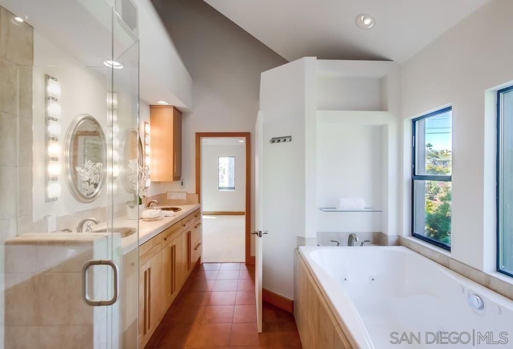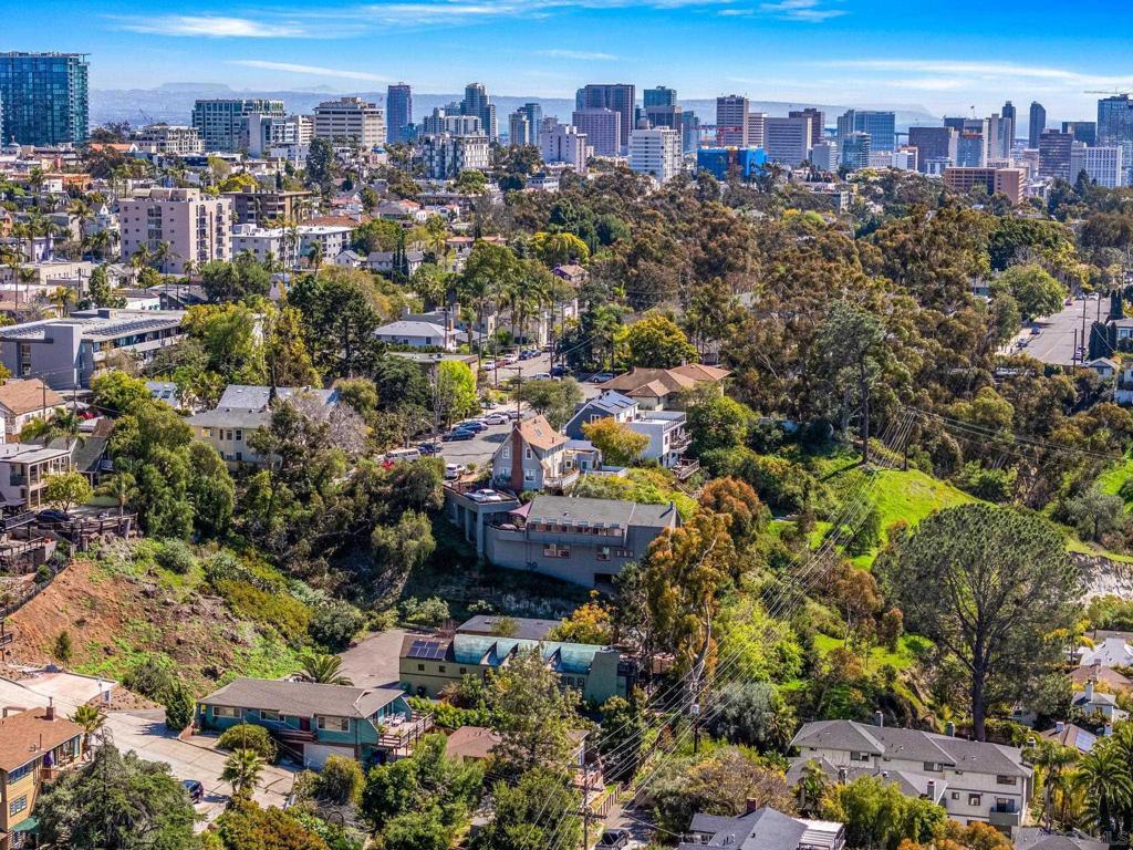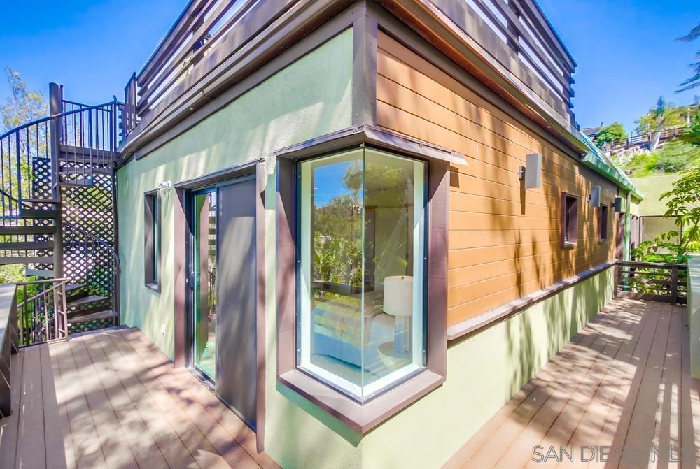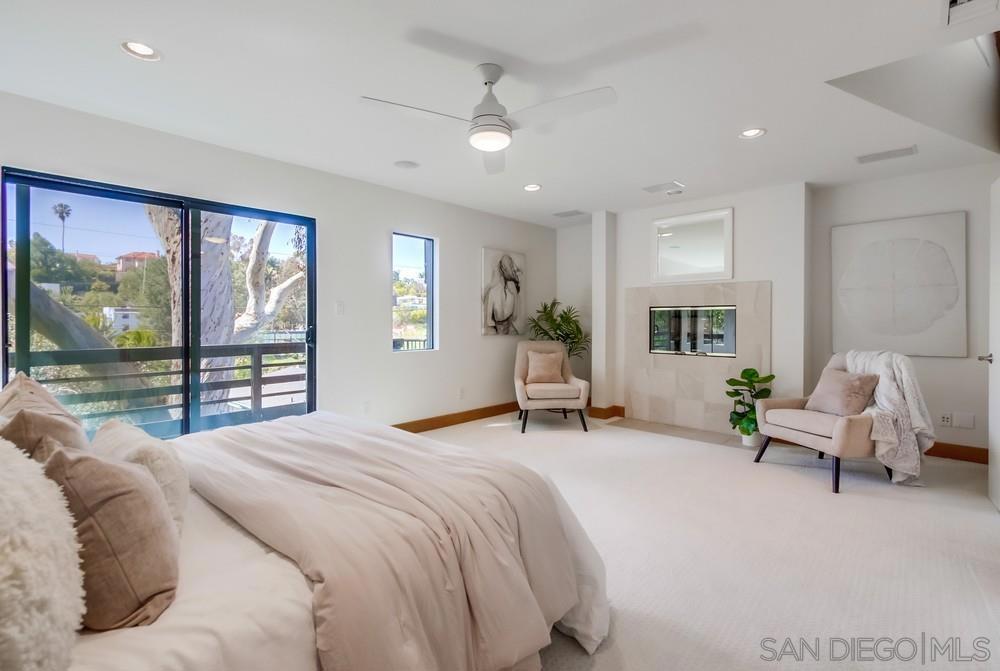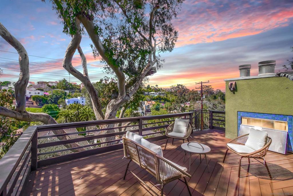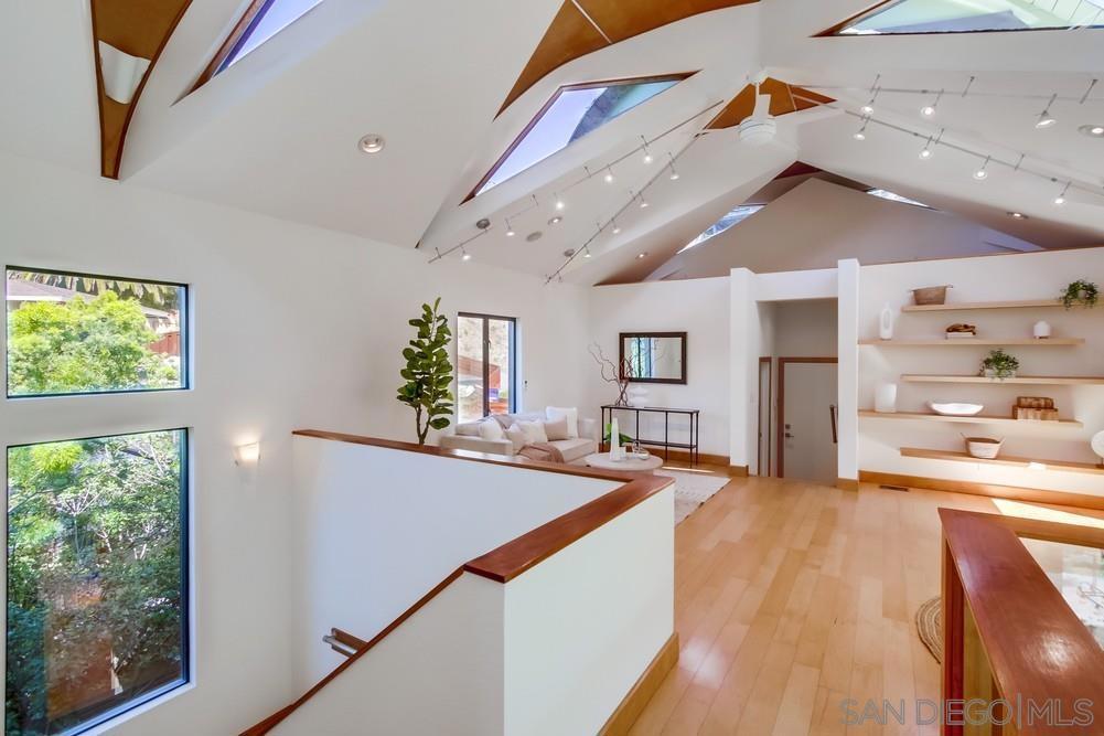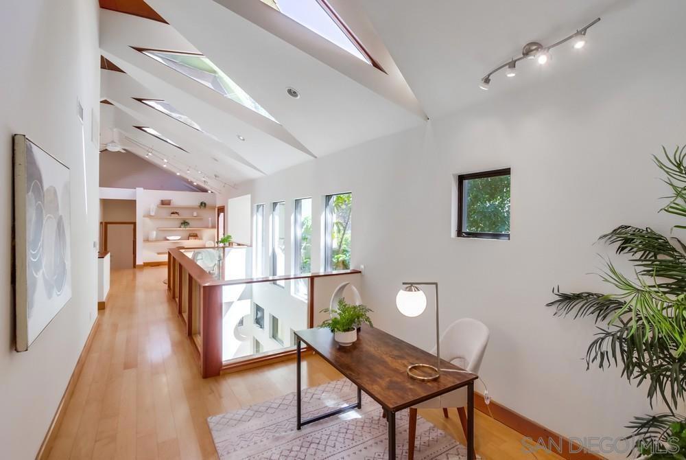 Designed by award-winning local architect Derek Heeb in highly sought-after Hillcrest, this beautifully updated home offers 2 bedrooms, with the option for a 3rd, and 3.5 bathrooms across 2,806 square feet of thoughtfully designed space. Recently refreshed with a newly painted exterior and interior, the home features newer carpets and refinished wood floors, along with the added benefit of solar panels for energy efficiency. The home is filled with natural light, thanks to all it's windows, skylights, and a striking two-story atrium. The spacious living room, complete with a cozy fireplace, invites you to relax and unwind. The primary bedroom offers a fireplace, a walk-in closet, and a peaceful retreat from the world. The chef’s kitchen is equipped with stainless steel appliances, a central island, and stunning granite countertops, making it perfect for entertaining. Two open lofts provide flexible living space, while the rooftop deck with a fireplace delivers sweeping city views, ideal for enjoying sunsets or hosting guests. Outside, the beautifully landscaped backyard is an oasis of tranquility, featuring mature trees and two built-in water fountains. Seller owned solar panel system with a backup Tesla battery. With no HOA or Mello Roos fees, this home offers the perfect blend of privacy and convenience. The attached 2-car garage and ample driveway parking ensure plenty of space for all your needs. Located on a quiet, private street with no through traffic, it’s under 3 miles to downtown and the San Diego airport, near Balboa Park, shops, and eateries. Don’t miss the chance to own this rare Hillcrest gem!
