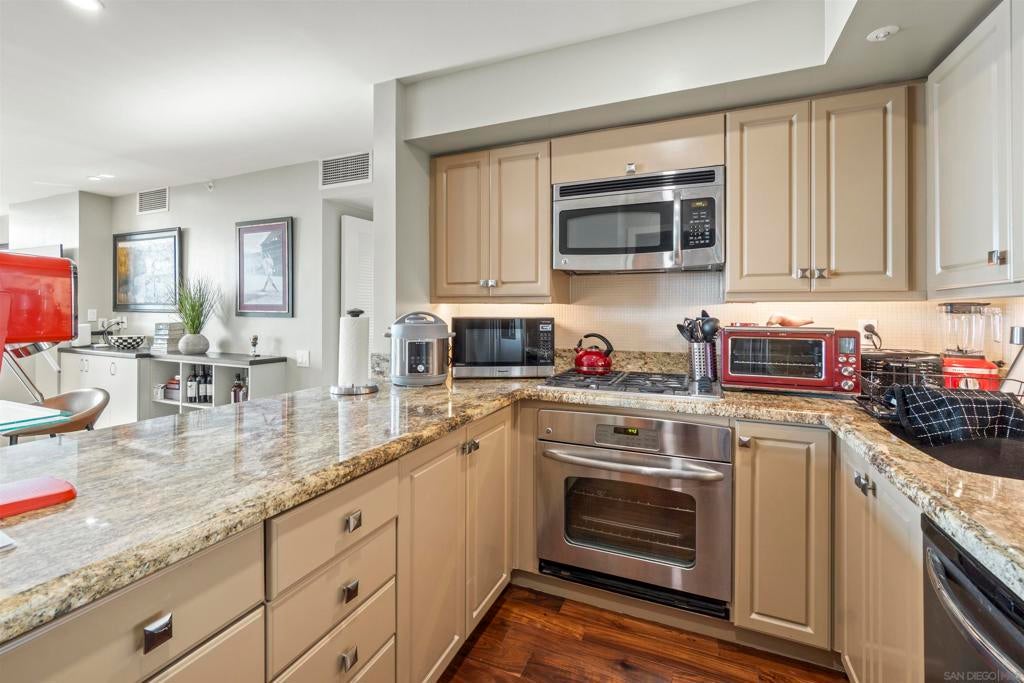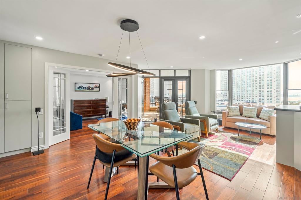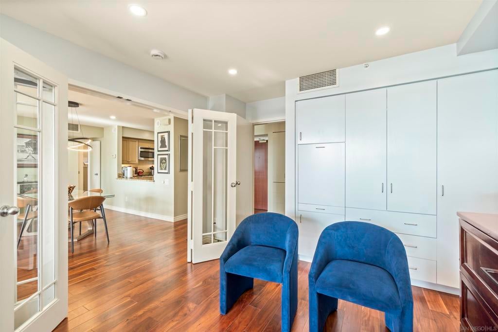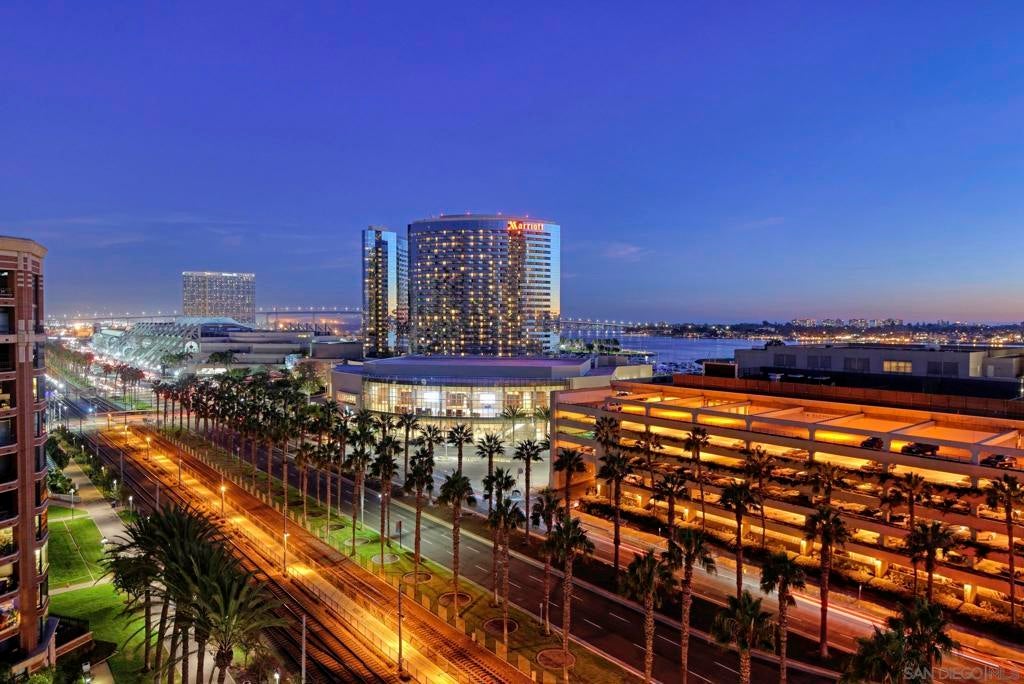 Exquisite Luxury 2-Bed, 2-Bath Condo with Stunning Bay & City Views in CityFront Terrace Experience luxury living in this stunning 2-bed, 2-bath FURNISHED condo in the highly sought-after CityFront Terrace community. Perched on the 10th floor, this elegant residence boasts breathtaking views of the San Diego Bay and city skyline through expansive floor-to-ceiling windows. This bright, open, and split floor plan features beautiful hardwood flooring, a fully equipped gourmet kitchen with stainless steel appliances, granite countertops, and custom cabinetry. The spacious primary suite offers a spa-like en-suite bathroom, while the second bedroom is perfect for guests or a home office. Sleeps 5 people and incudes an in-unit washer and dryer. There are also many luxury features including power shades and a Bose home theater system. This home is also fully accessible, including a roll-in shower, making it ideal for individuals with mobility needs. Enjoy spectacular sunsets from your private balcony overlooking the Marina District. CityFront Terrace offers resort-style amenities, including two heated swimming pools, a spa, a state-of-the-art fitness center, an elegant resident lounge, valet parking, package delivery to door, 24-hour security, and concierge services. Located in the heart of Downtown San Diego, you're just steps from Seaport Village, The Rady Shell, Gaslamp Quarter, Little Italy, and top dining, shopping, and entertainment options. Availability of 2026: May, June, July, November & December. Availability of 2027: May, June, July, November & December.