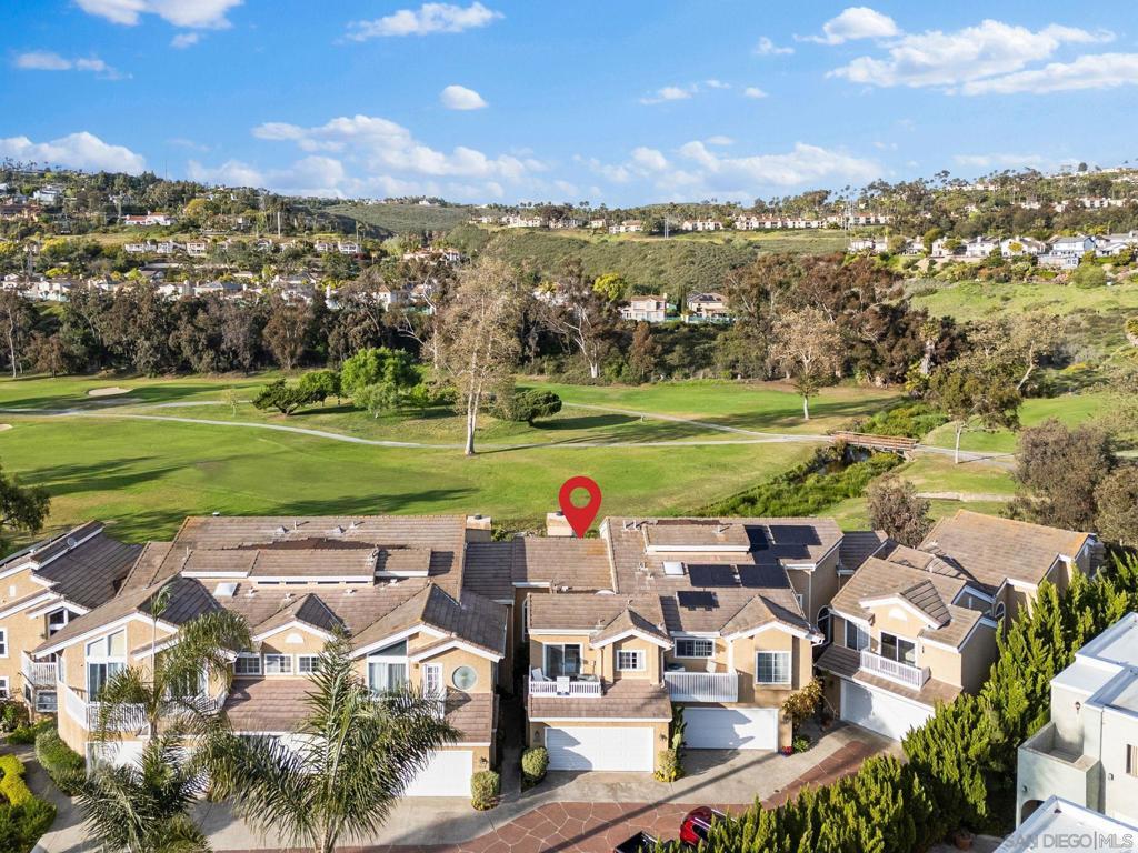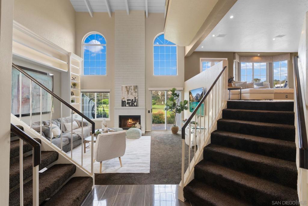 Wake up to sweeping views of the Omni La Costa Golf Course and end your day with colorful sunsets from your private balconies. This 2,045 sq. ft. tri-level townhome offers 2 spacious bedrooms, 2.5 baths, and multiple living areas designed for entertaining or unwinding. The living room impresses with soaring 25-foot ceilings, floor-to-ceiling windows, a custom built-in bookcase, and a cozy fireplace. The dine-in kitchen, large family room, and private backyard patio create even more places to gather and relax. Set in a quiet cul-de-sac of just six homes, opportunities here rarely come up. You’ll also enjoy an attached two-car garage plus an extra parking spot, a whole-house water filtration system, and convenient upstairs laundry.