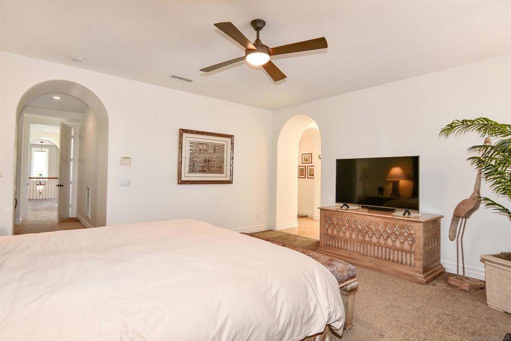This beautiful Davidson Plan 2 home is located at the end of a cul-de-sac in the sought-after Santa Luz community. With 5 bedrooms, 4.5 bathrooms, and 3,990 square feet of living space, this residence offers spacious accommodations for family living. The property is situated in the prestigious Santa Luz community with its world-class amenities, including hiking trails, golf course, clubhouse, community pools, and fitness centers. The home is part of the award-winning Poway Unified School District, making it ideal for families with children. As a resident, you'll have the option to enjoy access to the unique Hacienda membership offering an array of recreational activities and conveniences, including an 18,000 square foot Hacienda with exceptional recreation, relaxation services, resort-style pool, tennis courts, fitness facilities, and dining options. The home is located in the secure gated community of Santa Luz spanning 3,800 acres with only 836 homes, where you can enjoy golden hillsides, panoramic views, miles of hiking and biking trails, and acres of untouched land.