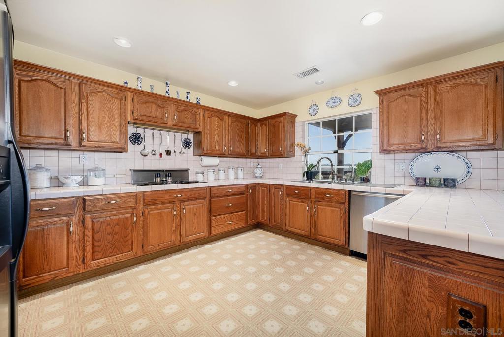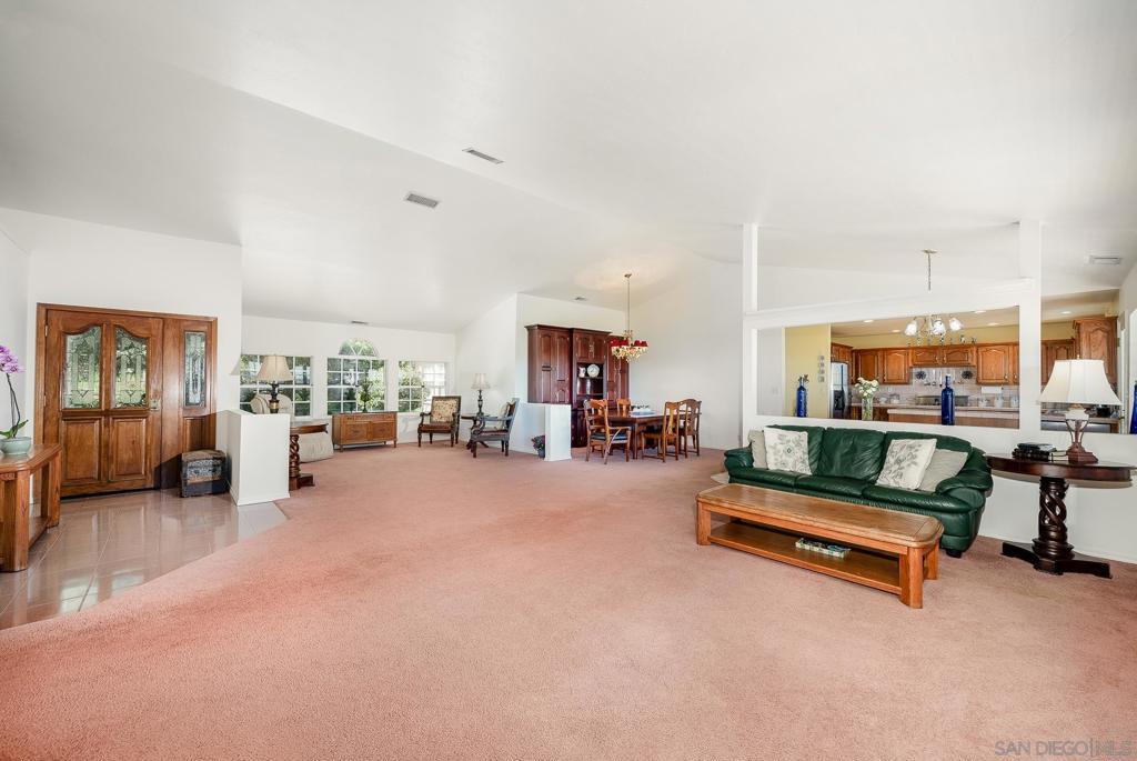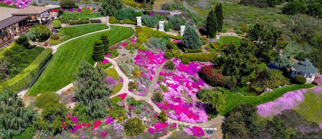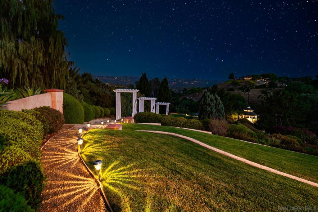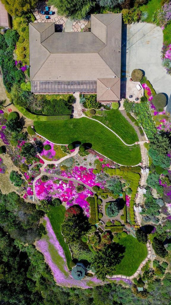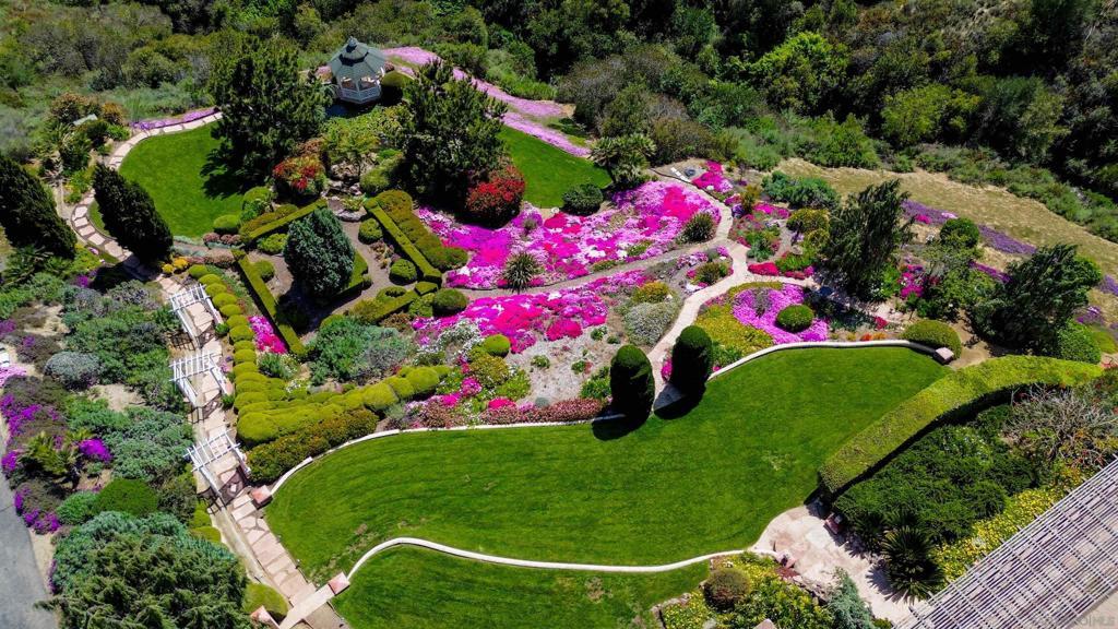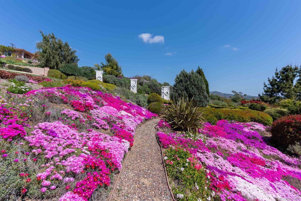 Welcome to this exceptional 3-bedroom, 2-bathroom estate boasting 2,659 SqFt of luxurious living space and 2.57 acres of usable land. This open-concept home is filled with natural light and features soaring 12-foot cathedral ceilings in the great room, which is perfect for entertaining with two sitting areas and a dining area. The kitchen is a chef’s delight, equipped with a gas burner stove, stainless steel appliances, trash compactor, and a reverse osmosis drinking water system. Enjoy meals in the eat-in kitchen area or step out onto the exterior deck through the convenient kitchen door. The primary ensuite is a true retreat, featuring a dual sink vanity, spacious walk-in closet, walk-in shower, privacy toilet room, large linen closet, and a Nutone built-in ironing center with an automatic timer. A private entrance leads to the expansive 60-foot deck, perfect for morning coffee or evening relaxation. The 2-car garage has been thoughtfully converted into a 525 sq ft finished office with a private entrance. This versatile space includes 2 built-in cherry wood desks and cabinets, 5 phone lines, a coffee bar, and more, making it ideal for a home office, art studio, recreation room, exercise room, optional bedroom, or granny flat. The professionally designed gardens, developed by award-winning Landscape Locators Unlimited, create a private retreat. The 2.57-acre estate offers unobstructed 180-degree views to the south overlooking the Santa Margarita River preserve and to the north toward the historic Rock Mountain. This entertainer’s paradise includes a front patio for relaxing, a large custom-built rear deck with patio covers that spans the entire back of the home. The exterior showcases pristine landscaping with over one hundred varieties of exotic plants and trees, stunning arbors lining the gravel and stone pathway, a gazebo overlooking the 10,000 gallon koi pond with hundreds of koi fish and breathtaking waterfalls. As you enjoy the expansive view from the back deck, watch spectacular sunrises over the snow-covered Palomar Mountain range and the fog-kissed river valley in the morning. Perfect as a potential wedding venue or private events venue, this serene escape in nature is conveniently located near downtown Fallbrook, Temecula wineries, shops, restaurants, commuting corridors, and more that North County San Diego has to offer. Additional features of this property include an automated irrigation system, including irrigated raised vegetable beds, a storage shed, a ground-mounted 44-panel solar system, a Ring camera and spotlight-enabled security system accessible from your smartphone. The home also boasts a built-in Vacuflow whole home vacuum, an entertainment wall with an integrated sound system that allows you to control volume from each room, the garage, or the deck. Don’t miss this opportunity to own a master-gardener’s dream home and private sanctuary!