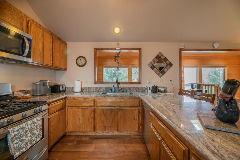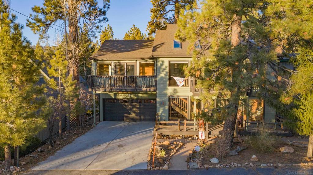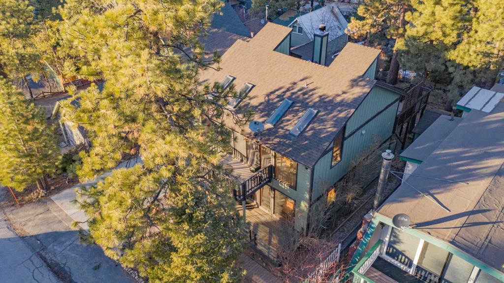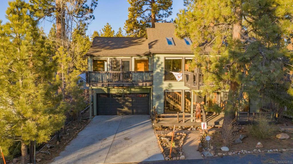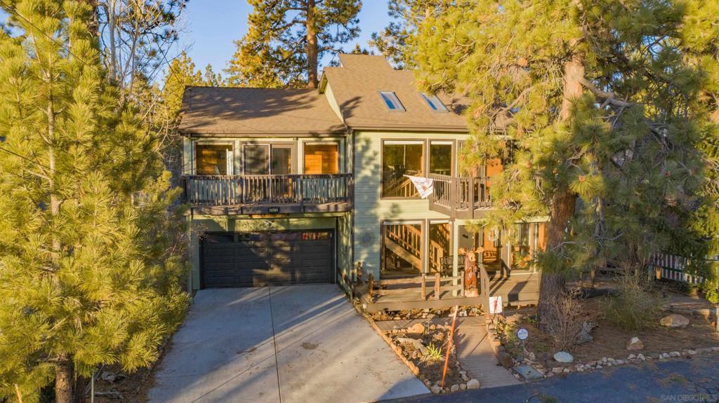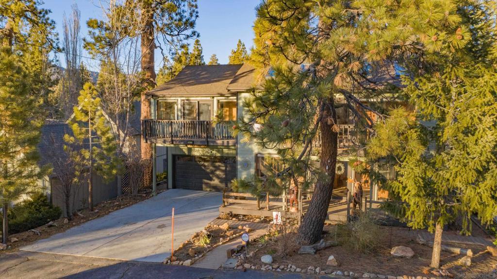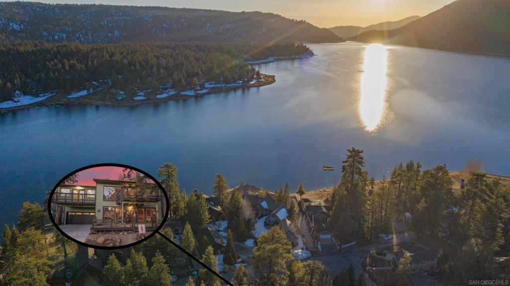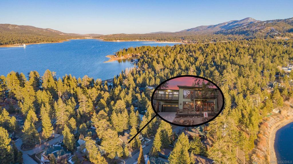 Located just across the street from Big Bear Lake, this property offers a spacious 3-bedroom, 2-bathroom home with an open floor plan and vaulted ceilings. The kitchen features granite countertops, stainless steel appliances, and a large island, while the living room boasts a stone fireplace. A bonus room provides additional space for an office, den, or exercise room. The property includes a 4-car drive-thru garage with a workshop and extra storage space. The fully fenced backyard features a spa and BBQ area, and the front deck offers a partial lake view. Other features such as skylights, forced air heating, smart thermostat, Trex decking, and RV-sized concrete driveway, this home is ideal for full-time living, a second home, or a vacation rental. The location is close to the lake, marina, and nearby amenities. (short sale approved at 690K)