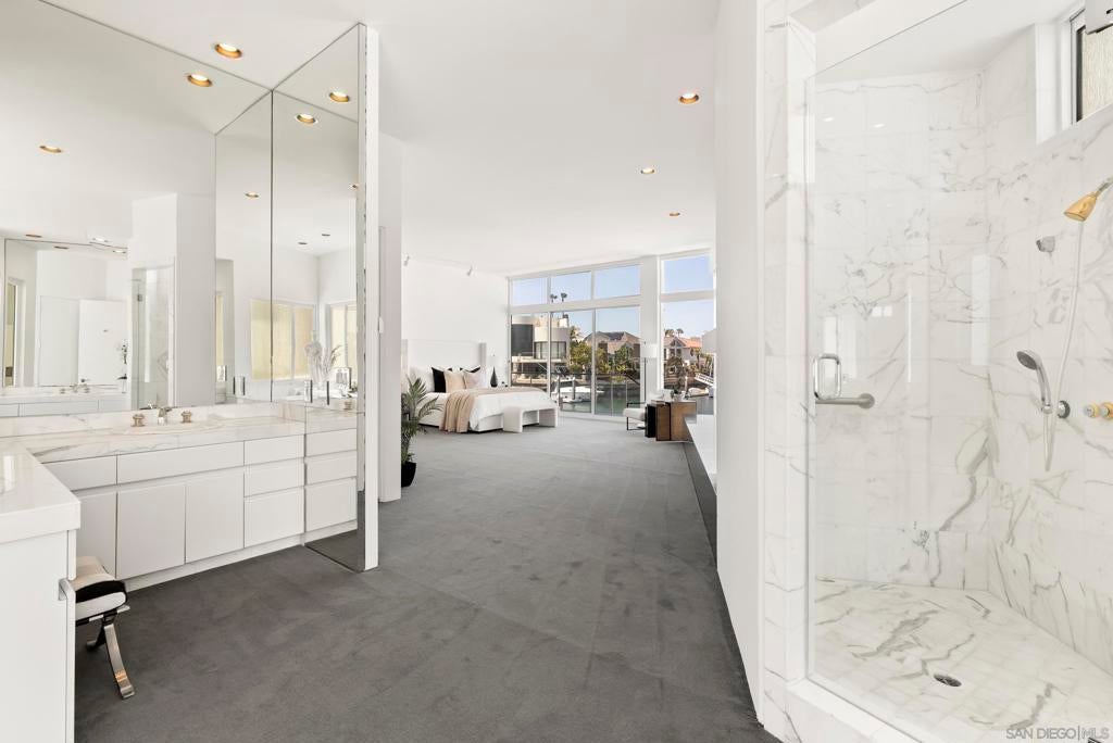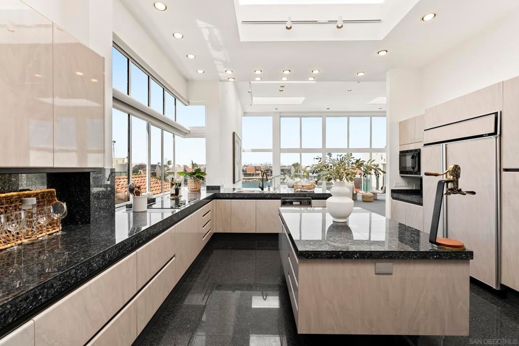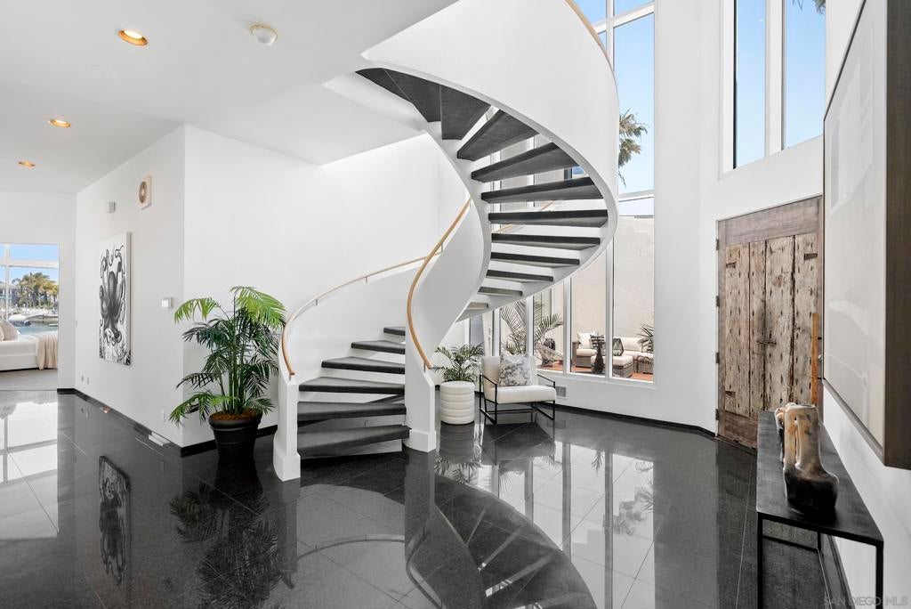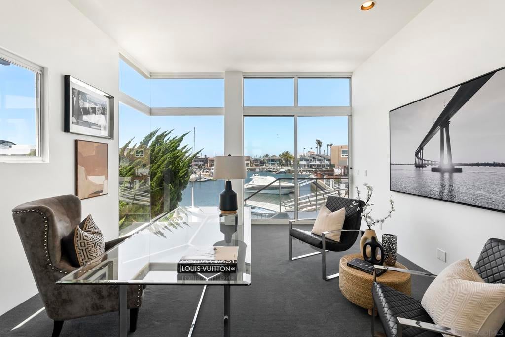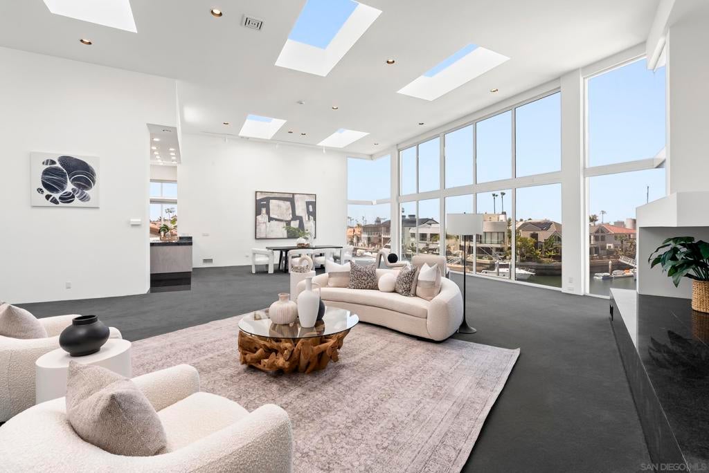 This extraordinary residence in Coronado Cays represents a unique opportunity to own a one-of-a-kind home with exceptional design and timeless luxury. Crafted to perfection, this home features a towering height of 33 feet, including breathtaking 18 to 21-foot ceilings that create an expansive, open atmosphere. Designed before recent building codes and HOA restrictions, it offers rare architectural elements that are no longer allowed, making it a truly irreplaceable property. The home’s subterranean garage with 10-foot ceilings provides ample space for several vehicles, ensuring plenty of room for your prized collection. Directly attached to the garage, an art storage room, wine cellar, and workshop give this home a creative edge that offers unparalleled functionality and style. An elevator connects all levels, providing ease and convenience throughout the expansive floor plan. Enjoy stunning views from every angle—whether it’s through the 14-foot windows of the living room that frame the natural beauty of Coronado or from the rooftop deck, which offers panoramic views of the surrounding area. From this vantage point, you'll be treated to spectacular firework displays during the annual Big Bay Boom, making every holiday season truly unforgettable. This magnificent property represents a rare blend of exceptional craftsmanship, luxurious living, and unparalleled views in one of Coronado's most coveted locations.