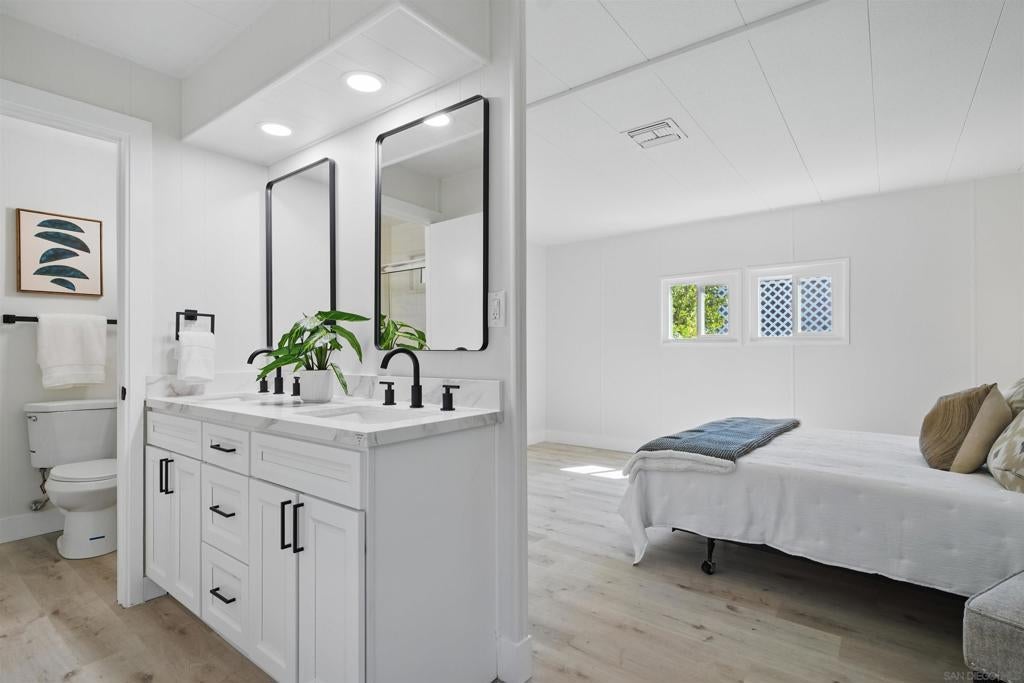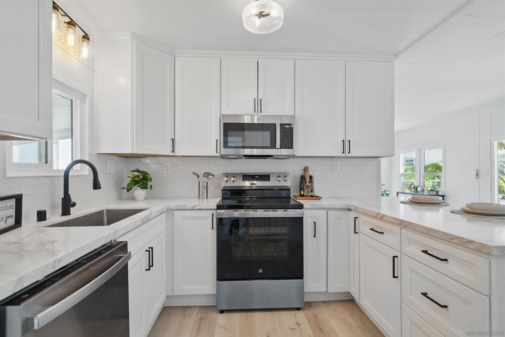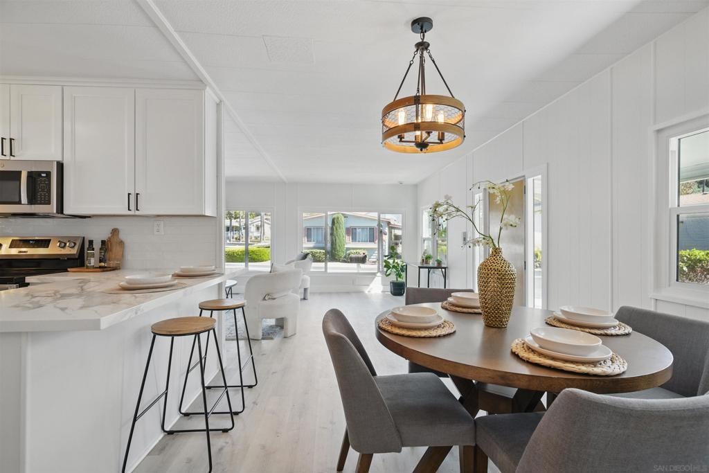 Welcome to this beautifully renovated home nestled in a quiet location in one of San Diego’s most sought-after mobile home parks! This turnkey home with a brand new HVAC system, a new roof, and has undergone a complete transformation, offering modern comforts and stylish upgrades throughout. Enjoy a bright, open concept living space with freshly painted walls, brand-new flooring, and a completely updated kitchen. The fully renovated bathrooms with contemporary fixtures and finishes adds a touch of luxury to your everyday routine. This gated 55+ community is one of the rare parks where you own the land as well, this one will go fast!
