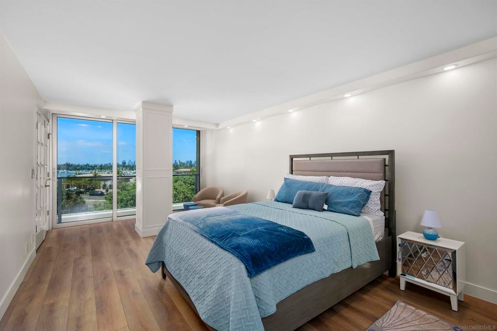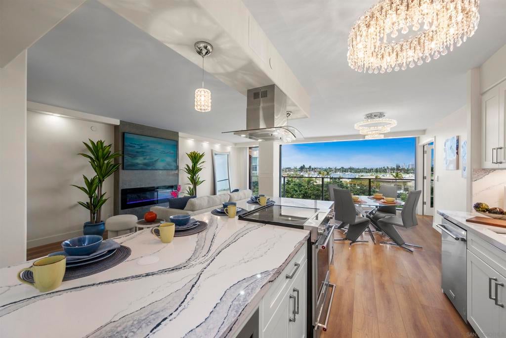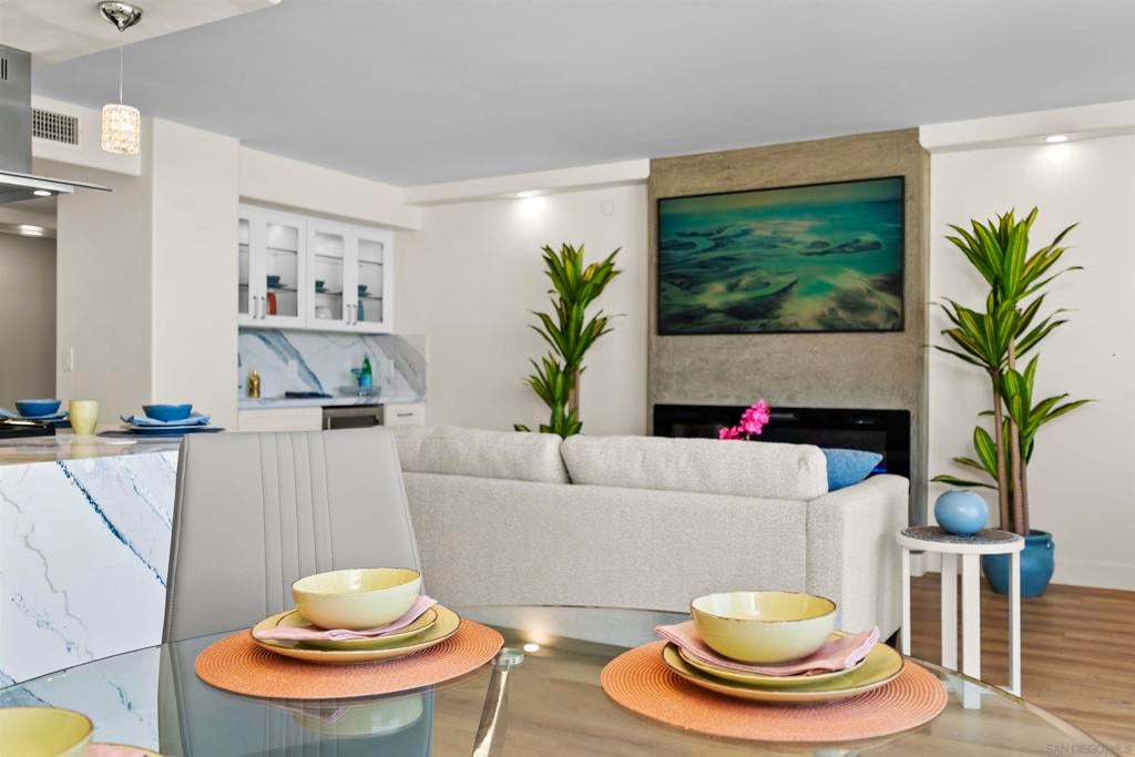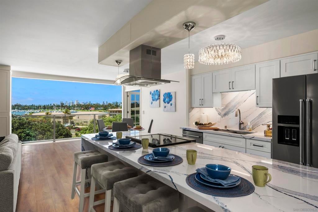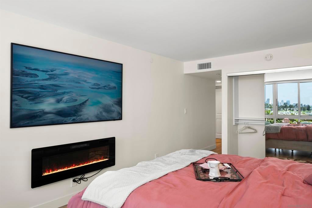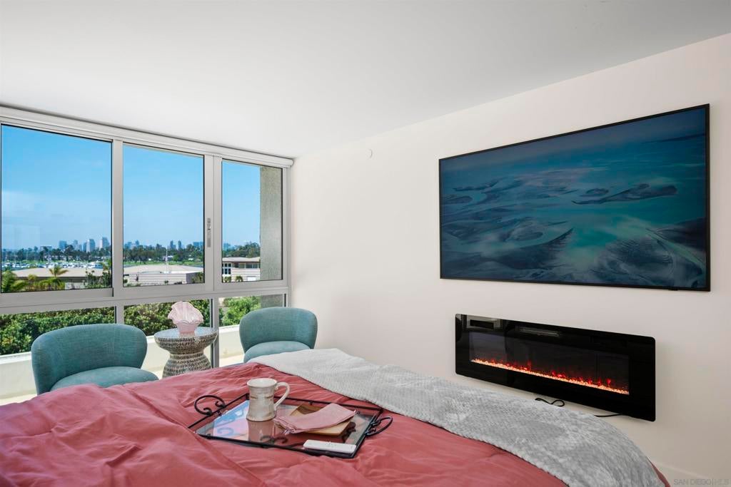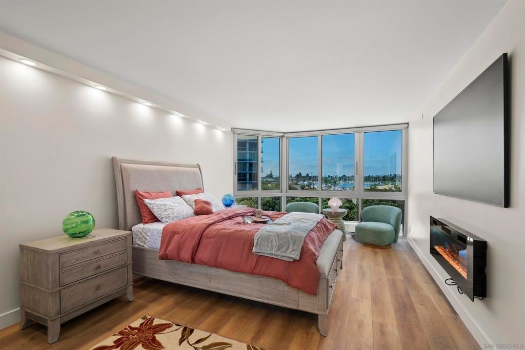 This unit has the best of both worlds! Full bay view and a partial ocean view. Fully remodeled unit from all aspects with higher end finishes. New sliding panoramic glass doors that open to give you the unobstructed bay, Coronado Bridge and the Downtown skyline. Enjoy the 4th of July fireworks from anywhere in the living room or primary bedroom. New HVAC system, wall finishes, plaster finished fireplace with operable electric wall mounted units. Custom bar with it's own wine cooler and sink. LVP flooring throughout with custom tile finishes in the bathrooms. The panoramic windows also have automatic shades. The kitchen boasts a custom island with new appliances and high quartz with a waterfall finish on both ends. Enjoy the luxury of having 4 large swimming pools, 8 tennis courts, 2 clubhouses, a sauna and a gym all included in the association. This unit is 100% move-in ready and there is a lease to own option.