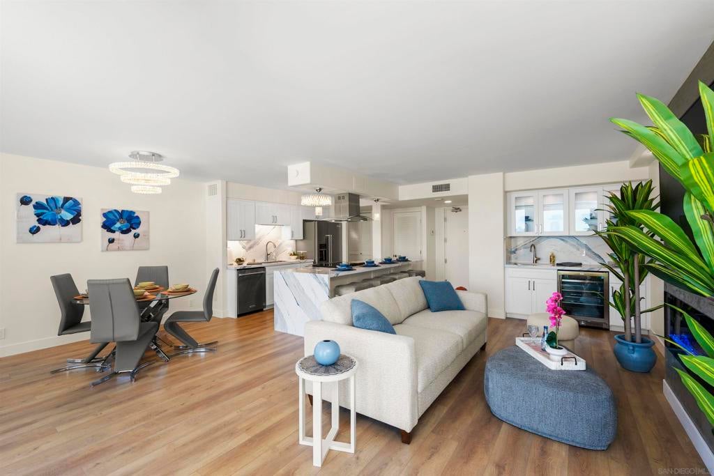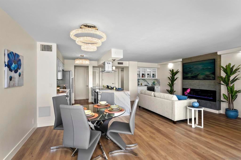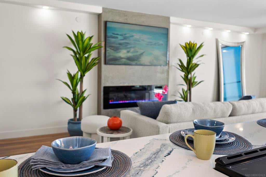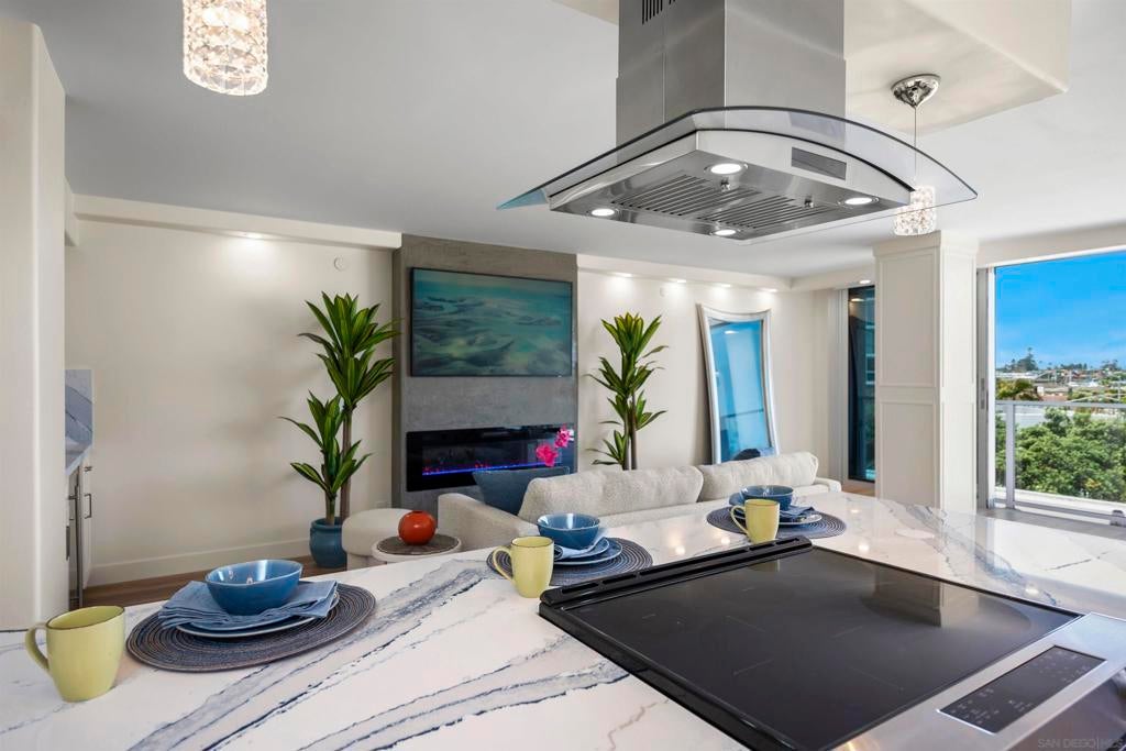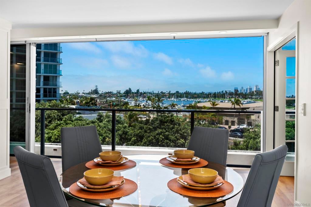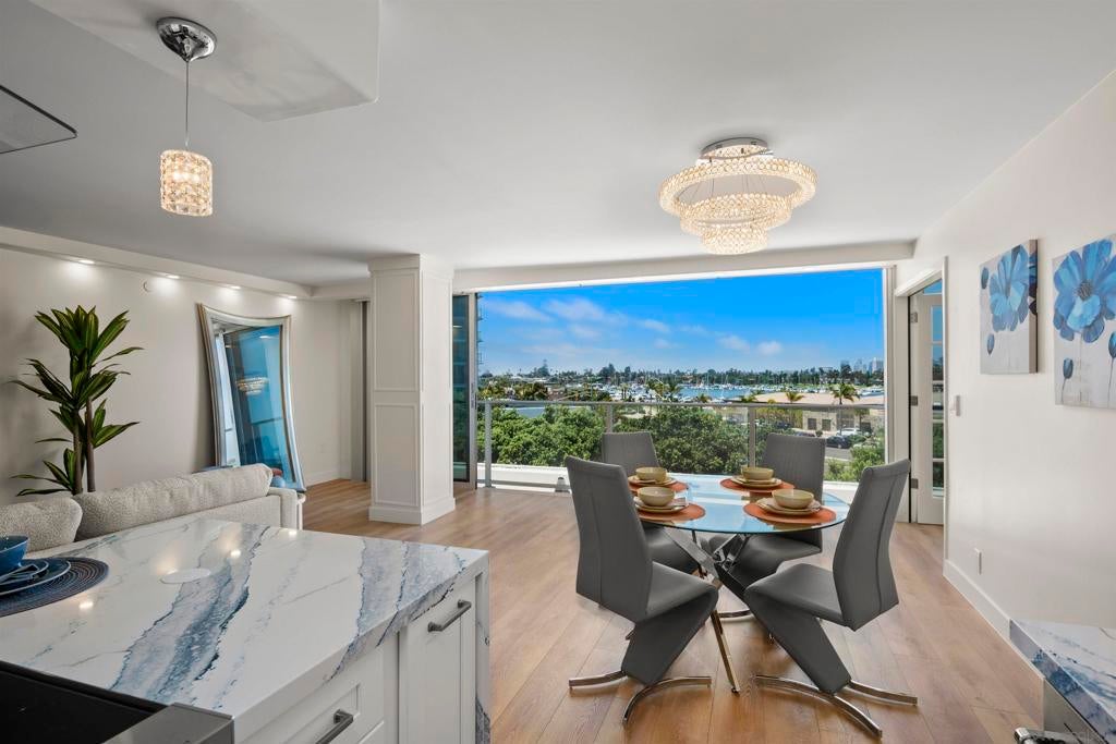 This unit has the best of both worlds! Full bay view and a partial ocean view. Fully remodeled unit from all aspects with higher end finishes. New sliding panoramic glass doors that open to give you the unobstructed bay, Coronado Bridge and the Downtown skyline. Enjoy the 4th of July fireworks from anywhere in the living room or primary bedroom. New HVAC system, wall finishes, plaster finished fireplace with operable electric wall mounted units. Custom bar with it's own wine cooler and sink. LVP flooring throughout with custom tile finishes in the bathrooms. The panoramic windows also have automatic shades. The kitchen boasts a custom island with new appliances and high quartz with a waterfall finish on both ends. Enjoy the luxury of having 4 large swimming pools, 8 tennis courts, 2 clubhouses, a sauna and a gym all included in the association. This unit is 100% move-in ready and there is a lease to own option.