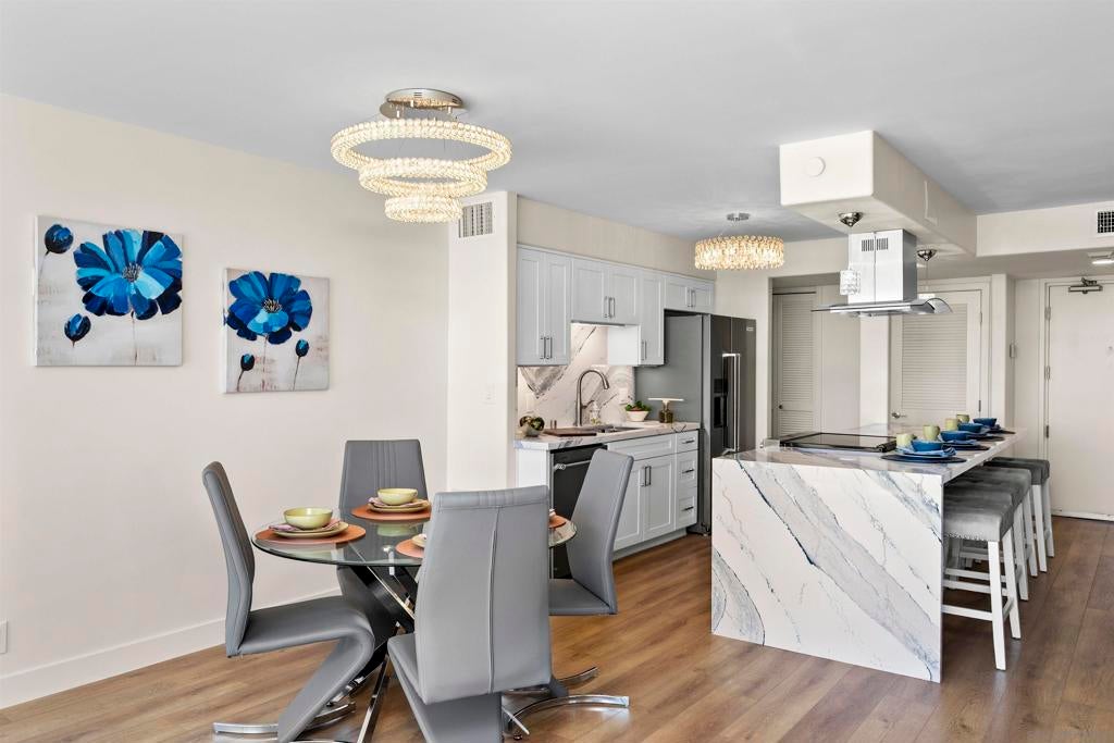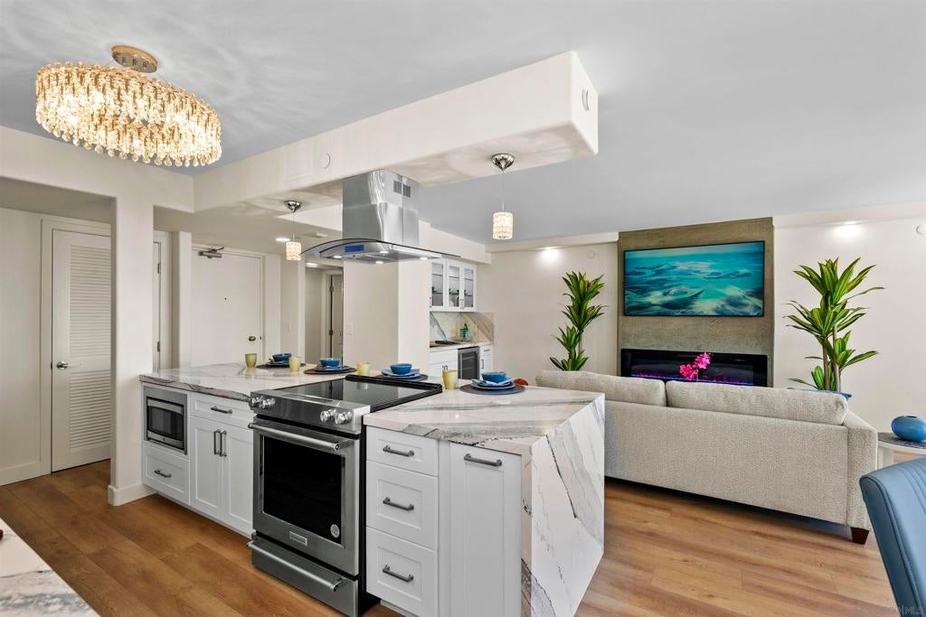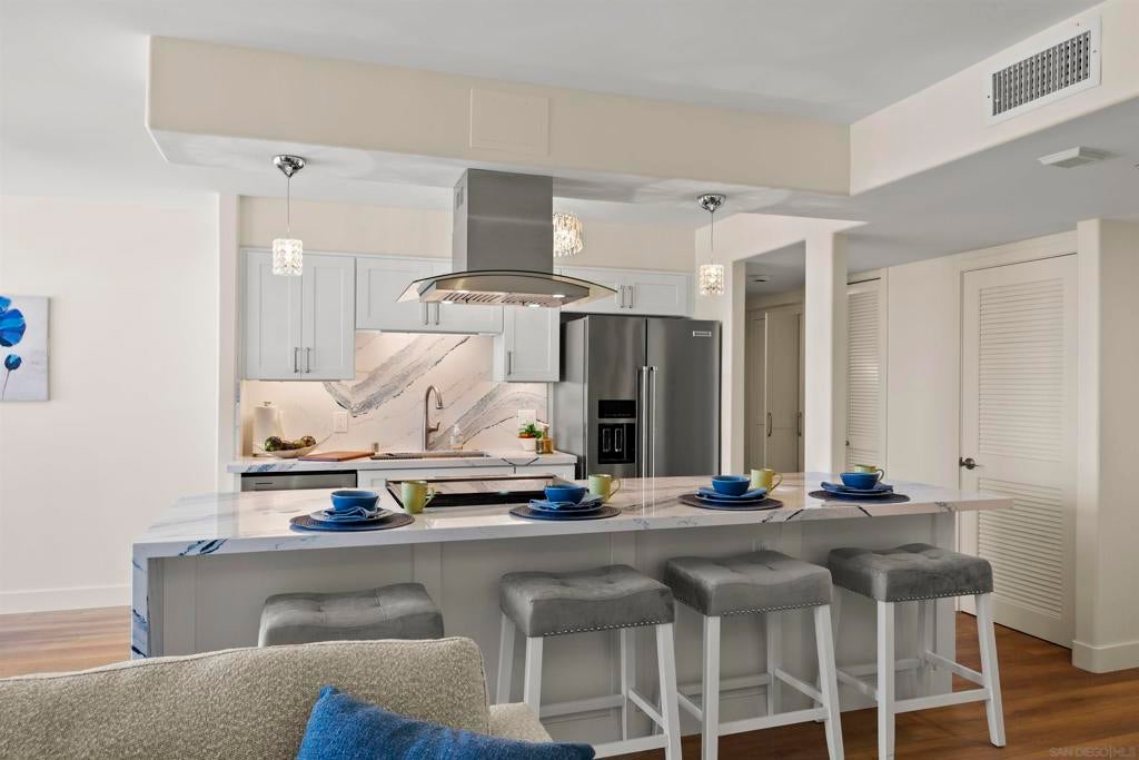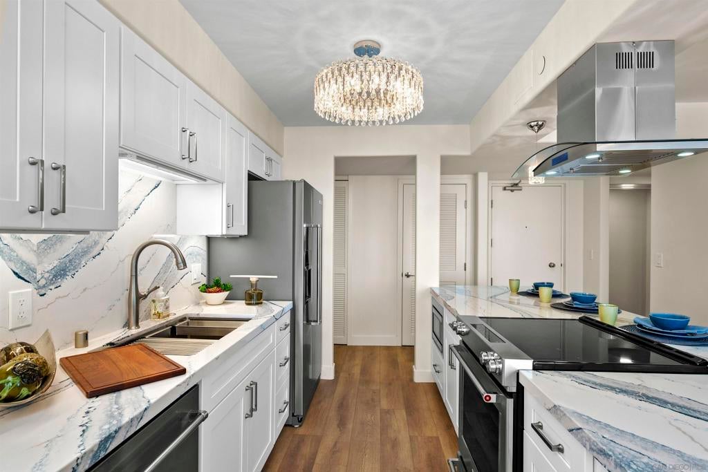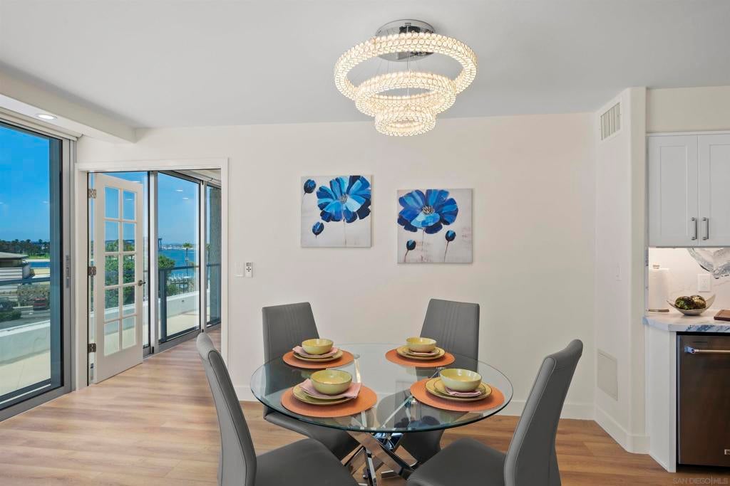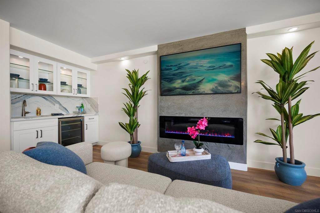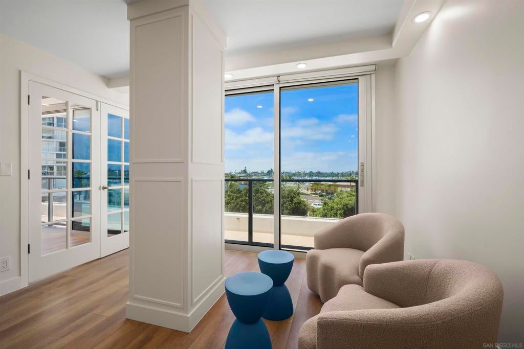 This unit has the best of both worlds! Full bay view and a partial ocean view. Fully remodeled unit from all aspects with higher end finishes. New sliding panoramic glass doors that open to give you the unobstructed bay, Coronado Bridge and the Downtown skyline. Enjoy the 4th of July fireworks from anywhere in the living room or primary bedroom. New HVAC system, wall finishes, plaster finished fireplace with operable electric wall mounted units. Custom bar with it's own wine cooler and sink. LVP flooring throughout with custom tile finishes in the bathrooms. The panoramic windows also have automatic shades. The kitchen boasts a custom island with new appliances and high quartz with a waterfall finish on both ends. Enjoy the luxury of having 4 large swimming pools, 8 tennis courts, 2 clubhouses, a sauna and a gym all included in the association. This unit is 100% move-in ready and there is a lease to own option.