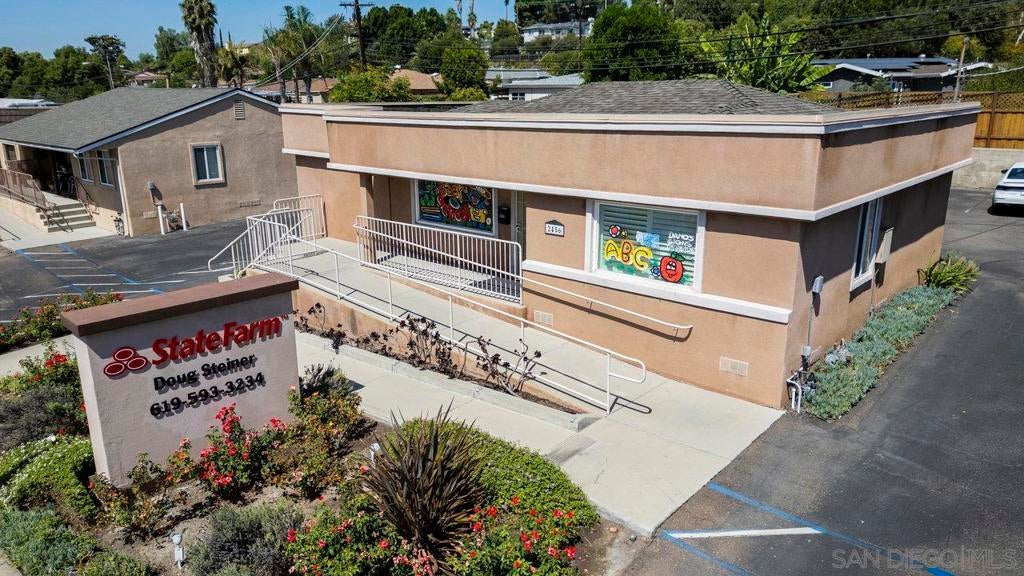 Prime Fletcher Hills Commercial Property: Versatile Mixed-Use Opportunity. Discover an outstanding investment at 2456 Fletcher Parkway with this well-appointed 1,219 SQFT commercial building. Currently home to an insurance office, this versatile space offers a professional layout featuring a welcoming reception area, comfortable waiting room, four private offices, and a bathroom. Zoned O-P Office Professional with a valuable M-U (Mixed-Use) overlay, this property presents endless possibilities for various business ventures. Benefit from excellent visibility with premium signage exposure in a high-traffic area, ensuring your business captures attention. Convenience is paramount, with ample on-site parking and a private driveway for easy access. Ideally situated with proximity to major freeways, this property is perfect for investors seeking stable income, owner-operators desiring a prime location, or developers looking towards future potential. Don't let this opportunity to own a well-positioned commercial asset in thriving Fletcher Hills slip away.