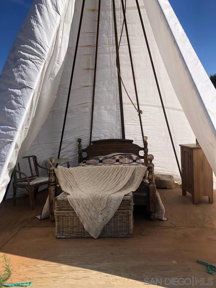 Your off-grid oasis awaits! Establish your family compound in the country or generate rental income following established Air BnB plan on 20 acres of your own land. Main home, manufactured home on foundation, has 2 bedrooms (optional 3rd) and 2 bathrooms, large multi-purpose room facing glorious sunsets. Teepee, patio, picnic and BBQ areas share 360º mountain views. Carriage House with 2 br/1ba and Guest House with 2 br/1ba, Teepee, and glamping trailer generate rental income. Paid solar, propane, and 2 wells serve all your needs.