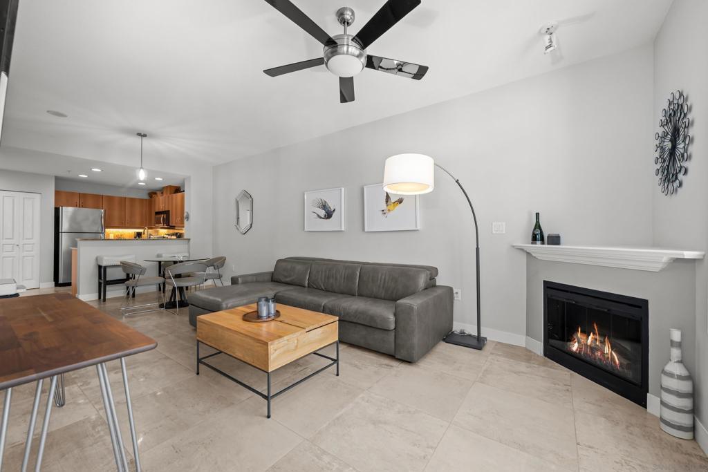 Experience elegant living in downtown Little Italy at La Vita! This fully furnished unit boasts stylish decor and tile flooring, featuring stainless steel appliances, a cozy fireplace in the living room, and a private patio with views of a tranquil courtyard. It includes an in-unit washer and dryer. Residents can enjoy community amenities such as a pool, spa, and fitness center.