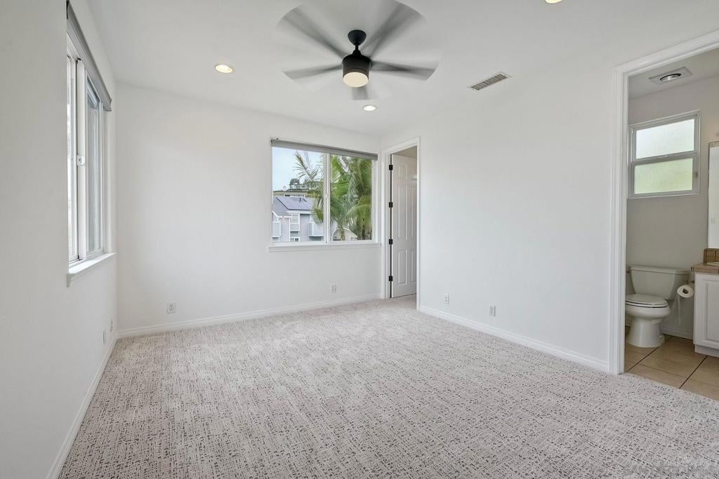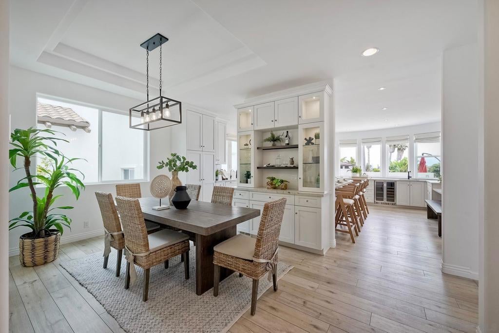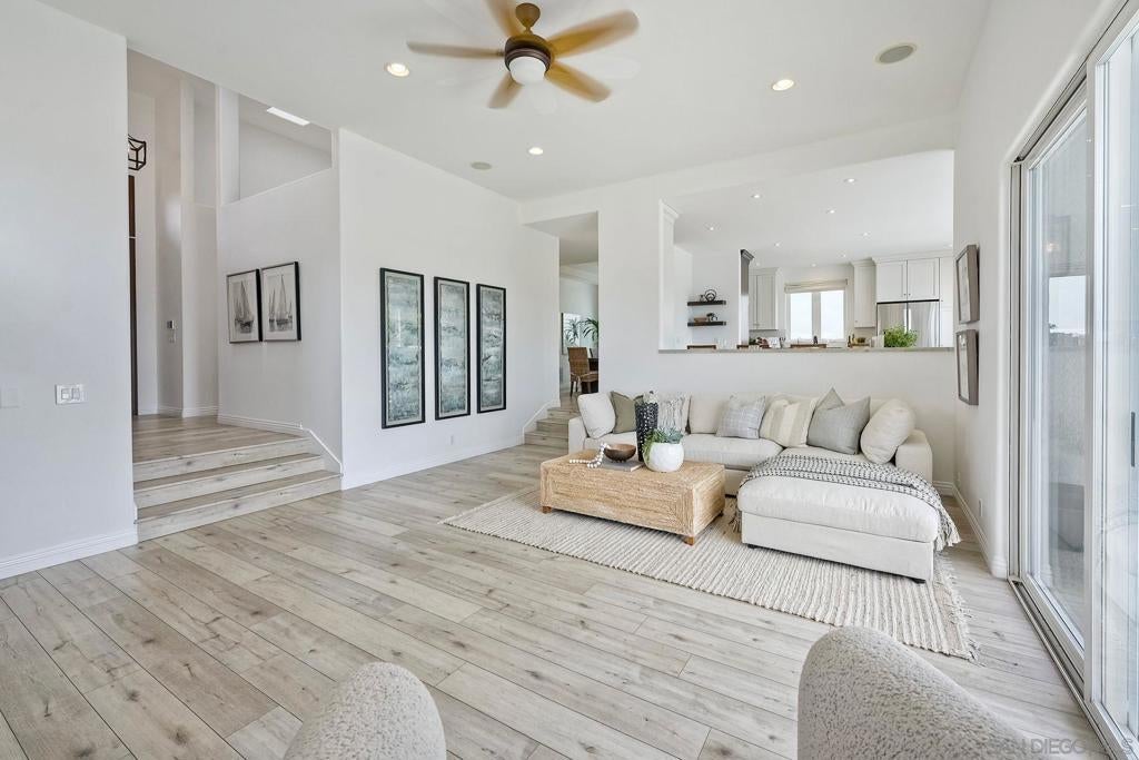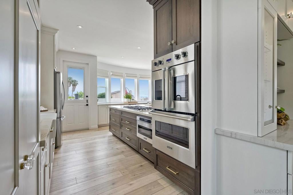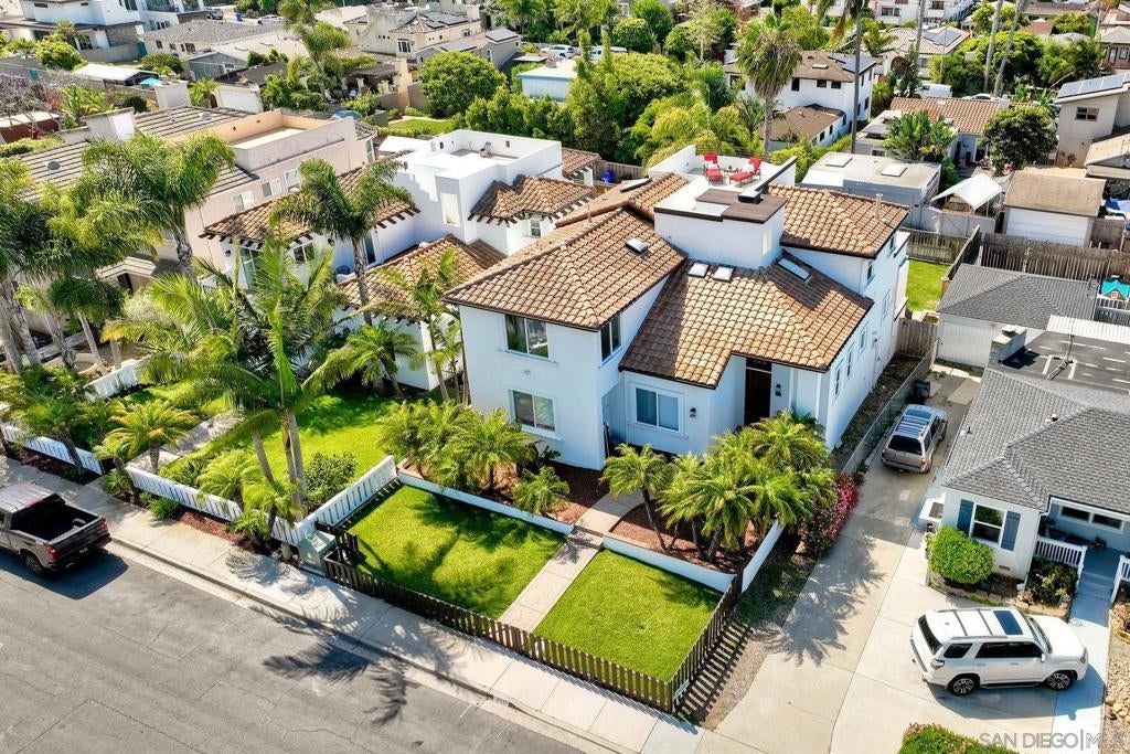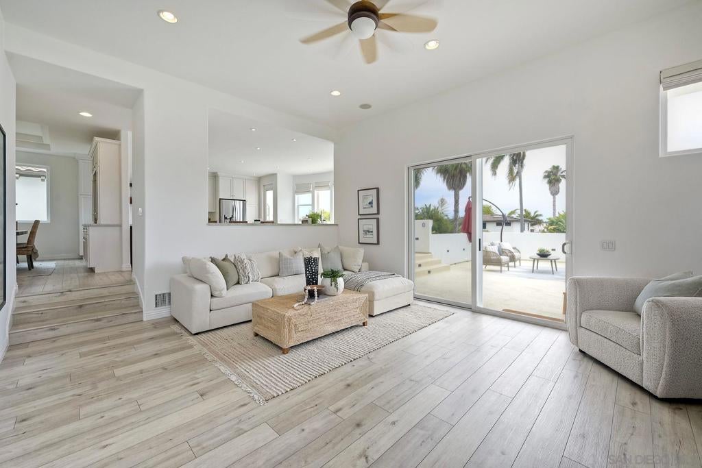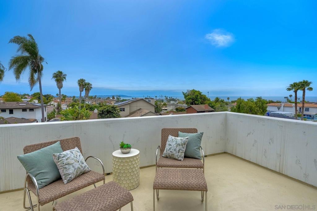 Price Reduction! Nestled in the heart of Pacific Beach, this rare coastal residence offers 3,029 square feet of light-filled living space, panoramic ocean views, and an ideal layout for both relaxing and entertaining. Built in 2001 and thoughtfully upgraded throughout, this 4 bedroom, 3.5 bath home includes a flexible 5th bedroom currently used as a home office, complete with an electric fireplace and a sliding door to an expansive ocean-view deck. The main level welcomes you with a dramatic foyer featuring high ceilings, a skylight & luxury vinyl plank flooring. A spacious step-down living room open to a large ocean facing deck – perfect for taking in sunset views and city lights. The dining room with built-in cabinetry, flows seamlessly into the beautifully remodeled chef’s kitchen, complete with crisp white cabinetry, a wood-finished island, quartz countertops, Viking stainless steel appliances, 6 burner cooktop, double wall ovens, two sinks – a farmhouse sink and a prep sink-both under light filled windows, a beverage fridge, subway tile backsplash, and charming bay windows. Two guest bedrooms and a full bath are conveniently located on the main level. Upstairs, the bonus family room or office is bathed in natural light and leads to another large view deck shared with the luxurious primary suite.The primary bedroom boasts a wall of windows, private deck access, and a spa-inspired ensuite bath with a jetted tub, separate shower, and skylight. An additional ensuite bedroom and laundry room complete this level. Ascend to the rooftop deck to take in breathtaking panoramic views of the Pacific Ocean, city skyline, and evening lights-there’s even a 50-amp outlet ready for a hot tub. The lower level includes a mudroom with direct access to a two-car garage and covered carport. The fully fenced backyard features a grassy area and gated alley access. A rare opportunity to own a move-in-ready view home in one of San Diego’s most desirable beach communities! Within La Jolla School District close to Pacific Beach, Bird Rock, restaurants, coffee shops, boardwalk and La Jolla Shores Beach.