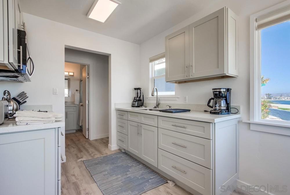 Prime bay-front duplex on Bayside Walk—two detached homes on a 3,179 sq ft lot with an exceptional 1.10 FAR, allowing roughly 3,500 sq ft of future living space. The front cottage, gutted to the studs in 2020, offers two bedrooms, one bath, full A/C, and stunning views open to expansive lawn-style patio where sunrise colors, fireworks, and paddle-boarders unfold at your doorstep. Tucked behind, the bright one-bedroom, one-bath carriage unit crowns a two-car garage, capturing panoramic water views from every window and enjoying its own private entry with no shared walls. Three parking spaces, in-garage laundry, coastal-designer finishes, and turn-key furnishings make this a ready-to-go vacation rental or effortless owner-occupy. Stroll to Belmont Park, ocean waves, cafés, and water-sport rentals in minutes. Assemble with the 4,996 sq ft lot next door, also for sale, to create a landmark bay-front trophy.
