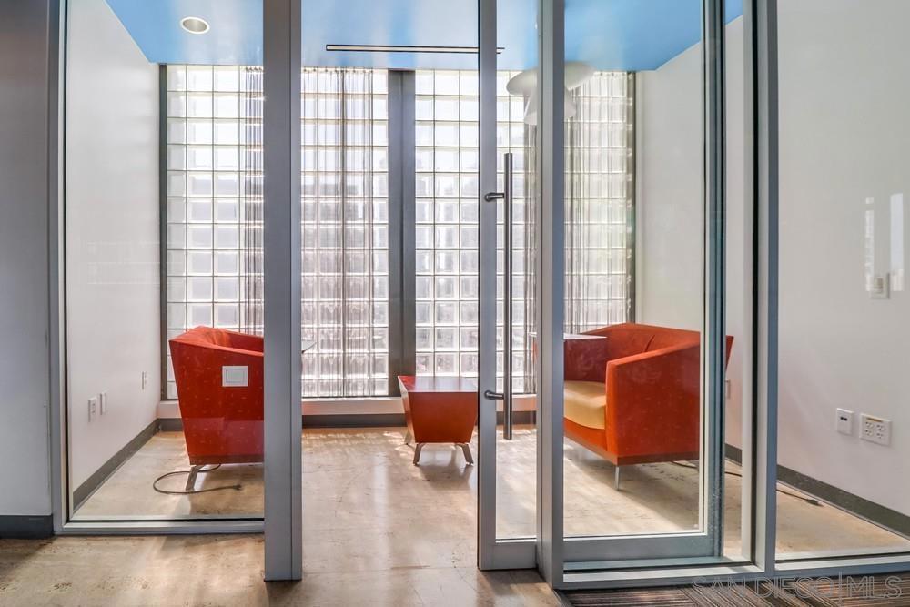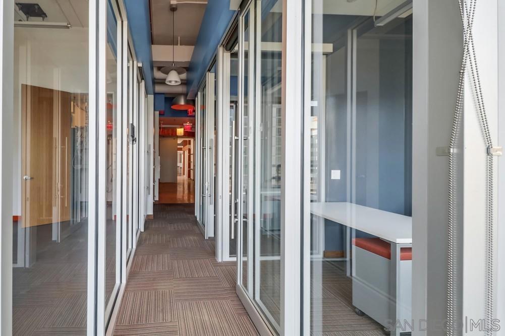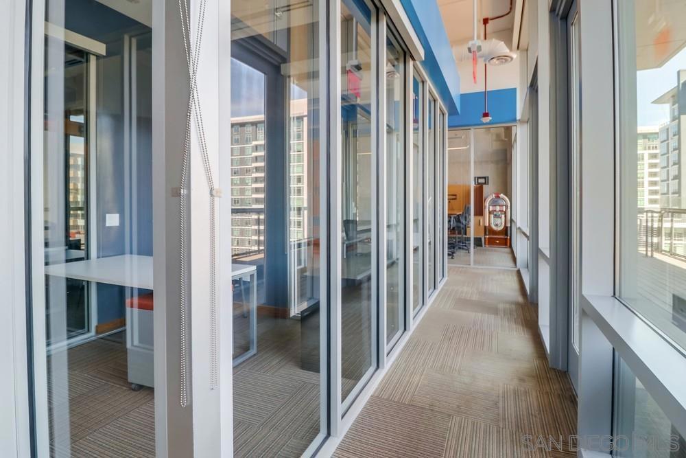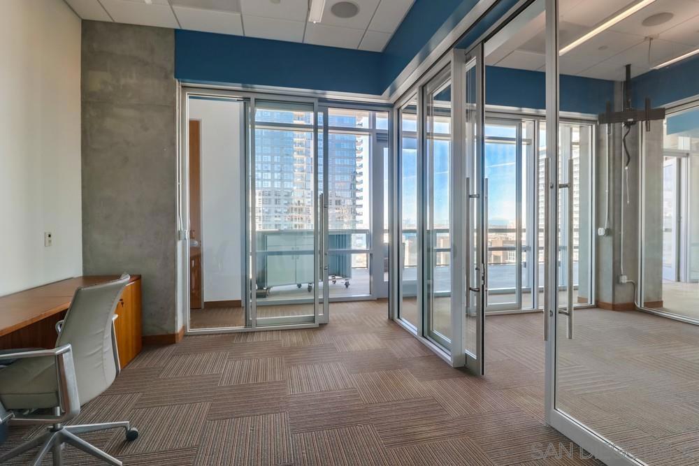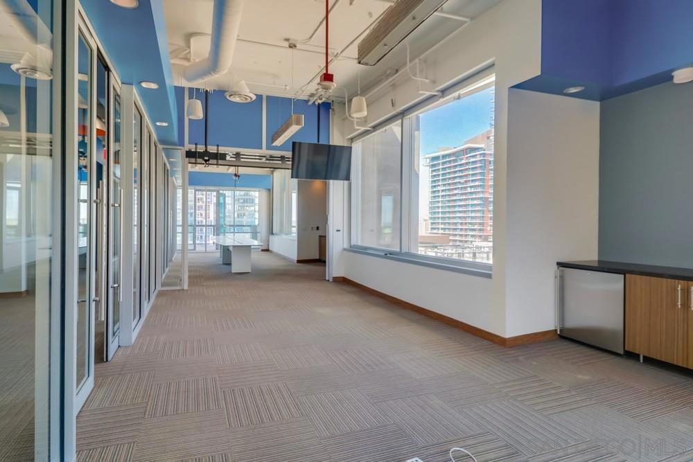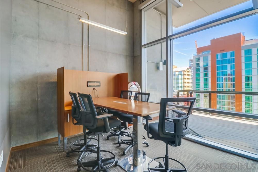 Claim an entire top penthouse floor in the heart of Downtown’s Columbia/Little Italy creative hub! The 9th-floor suite (legally 3 condos combined) at Metrowork Condo (approx. 6678 sf is a designer-furnished, fully built-out open-concept office delivered TURN-KEY. Secure direct-access elevator opens to polished concrete floors, soaring 12' ceilings, exposed steel & ductwork, and panoramic windows wrapping three sides for all-day natural light and dramatic city & bay vistas. Current configuration: spacious collaborative bullpen with ergonomic workstations, glass-walled conference room, two privacy phone pods, hospitality bar with sink, dishwasher & beverage fridge, lounge area for client pitches, dedicated server/storage room, and in-suite restroom. Plug-and-play infrastructure—CAT-6, fiber service, ceiling-mounted speakers, smart HVAC, security cams—lets you move in and start creating day one. 7 deeded, gated parking spaces plus bike storage convey; abundant guest parking garages nearby. HOA fee covers water, trash, janitorial of common areas, and a stylish lobby with digital directory. Prime walk-score location steps to Waterfront Park, Amtrak/Trolley, Little Italy’s famed dining, and quick access to I-5 & airport—ideal for creative firms, family offices, tech start-ups, or boutique financial, design and legal practices seeking an exclusive full-floor identity. Furniture, fixtures & equipment negotiable. Square footage per tax records; buyer to verify all. Metrowork is a well-capitalized HOA with solid reserves and recent building systems upgrades.