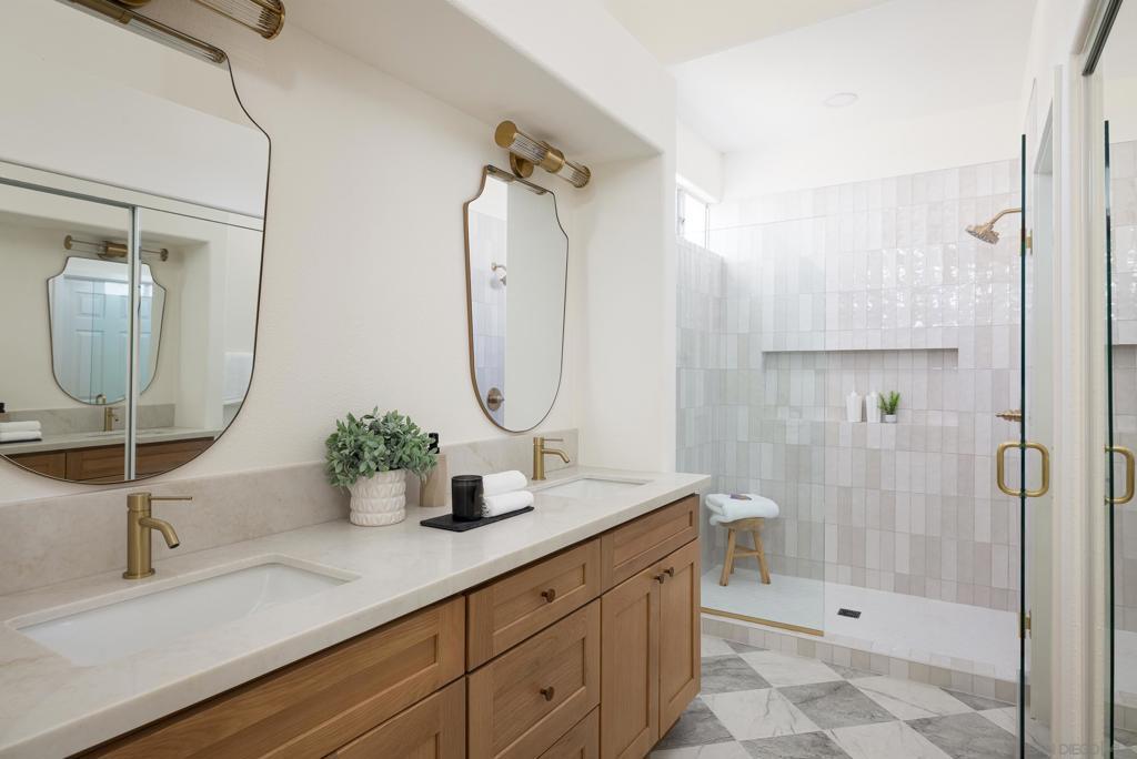 Elegance and modern charm are abundant in this remodeled Ocean Hills Country Club home, filled with natural light and elegant designer finishes. Vaulted ceilings, wide-plank floors, and a seamless open layout create an inviting and modern feel throughout. The chef’s kitchen features sage cabinetry, quartz countertops, and stainless steel appliances, opening to bright living and dining areas. The primary suite is a relaxing retreat with a spa-like bath, dual vanity, and oversized walk-in shower. Additional highlights include central A/C, skylights, a two-car garage, and indoor laundry. Endless resort-style amenities with 24/7 guard-gated security, a private 18-hole golf course, a heated pool and spa, pickleball and tennis courts, bocce ball, a clubhouse, gym, billiards room, library, and more. With over 40 clubs and activities to choose from, it’s the perfect place to live your best chapter yet.