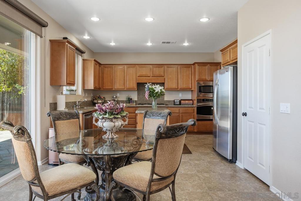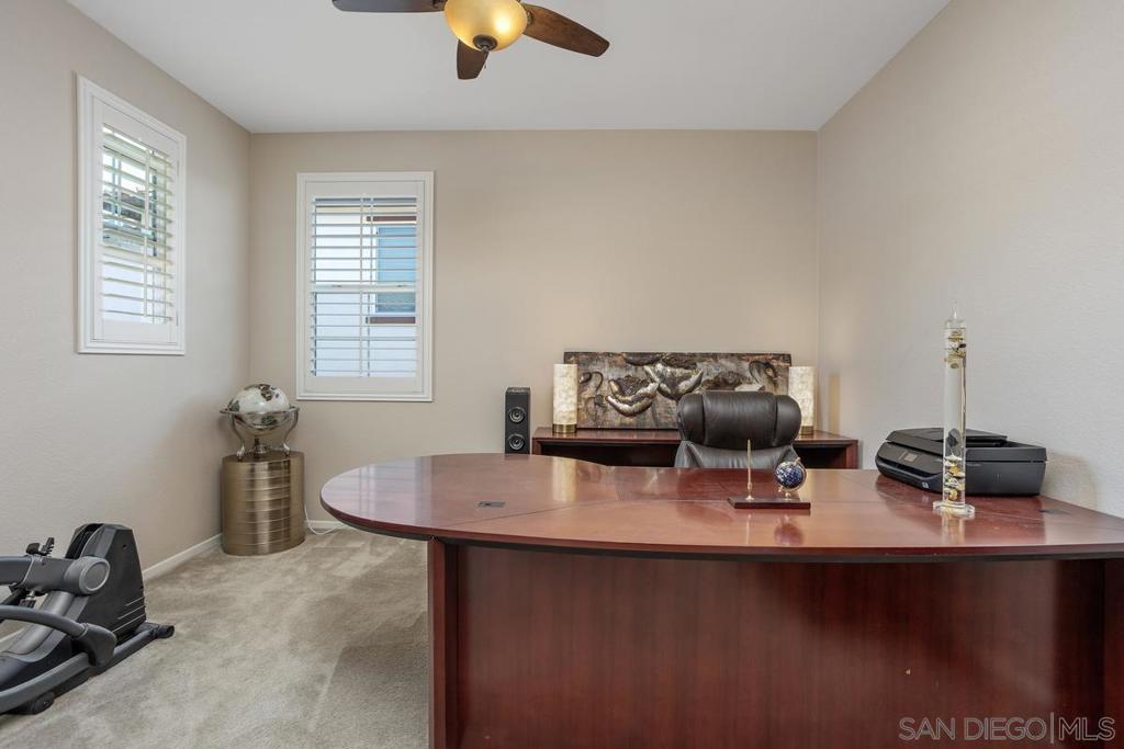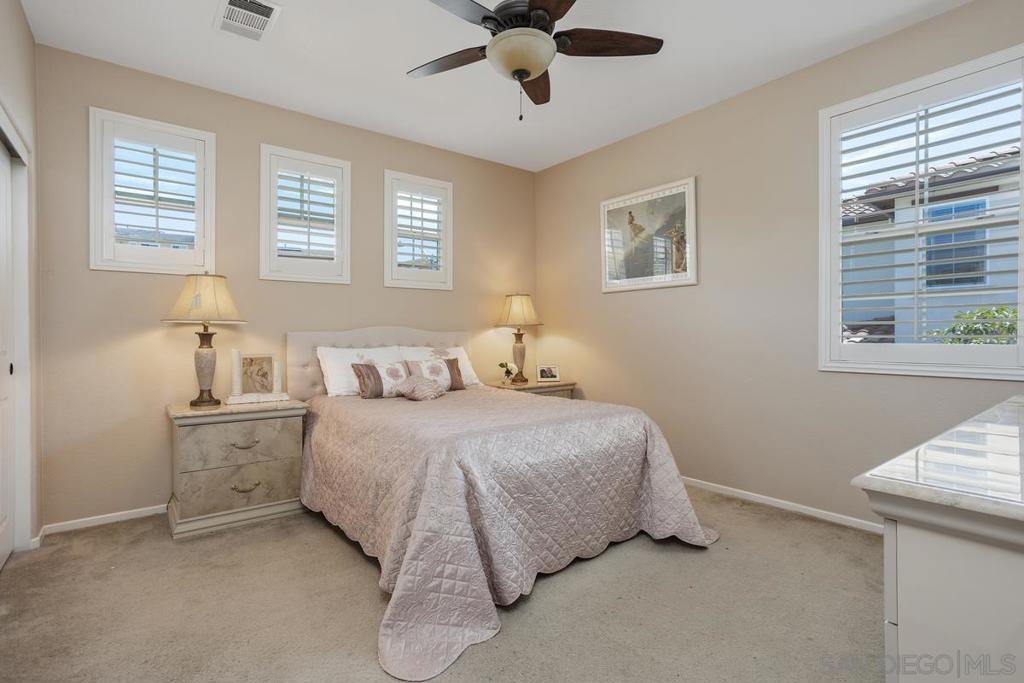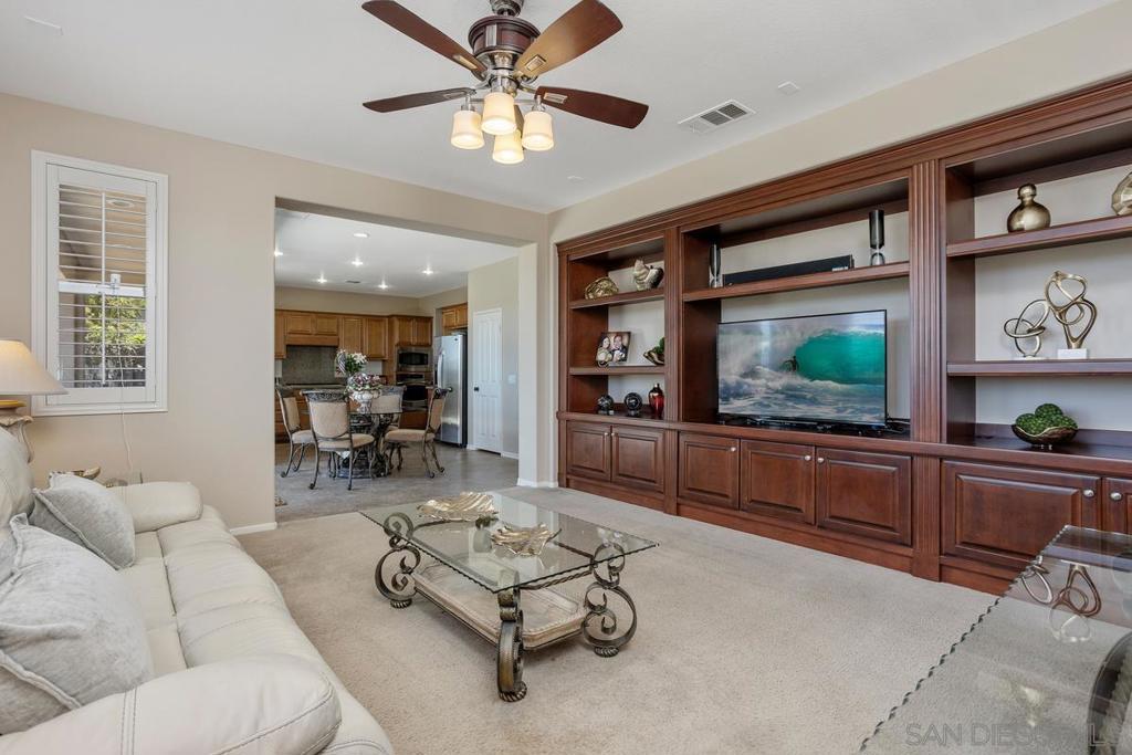 Panoramic Views | No Mello Roos | Arrowood Living: This beautifully maintained 4bd/3ba home with 2,887 sqft of living space is located in the sought-after master-planned community of Arrowood, and offers 180-degree mountain and hillside views. It's an ideal blend of comfort and function. The bright, open floor plan features a spacious kitchen with granite countertops, stainless steel appliances, a large center island, and an extended butler’s pantry with ample storage. Plantation shutters, recessed lighting, ceiling fans, and custom built-ins add both style and practicality throughout. Upstairs, the generous bonus room can easily serve as a fourth bedroom, media room, or office. The oversized primary suite offers sweeping views and a large bathroom with dual vanities, a soaking tub, walk-in shower, and separate walk-in closets. Additional features include a tankless water heater, water softener, and central AC. Outside, the professionally designed backyard includes stamped concrete and mature landscaping—perfect for relaxing or entertaining against the scenic backdrop. Enjoy access to the Jr. Olympic swimming pool, Arrowood Golf Course, walking trails, and more. Located in the Bonsall School District and close to parks and shopping. No Mello Roos and low HOA!