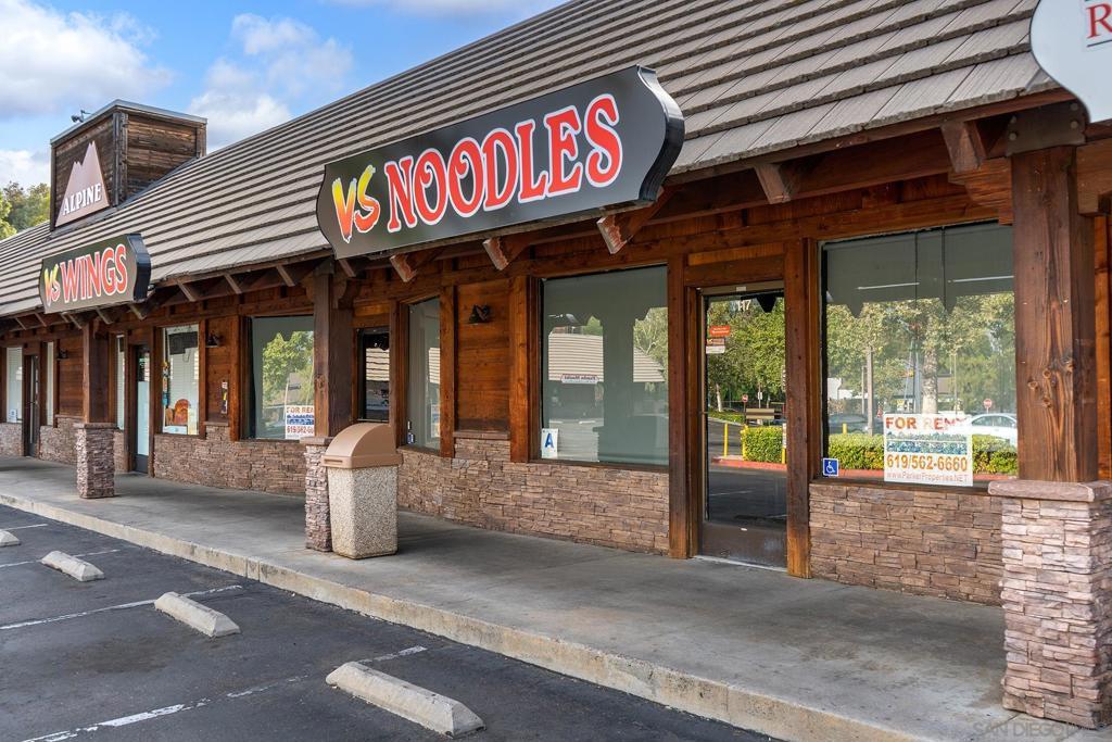 FOR LEASE! A rare turnkey opportunity to lease a fully outfitted 2,240 square foot restaurant space in one of Alpine’s most highly visible and desirable shopping centers. Zoned C-36. Perfect for launching a new concept or relocating an existing restaurant with minimal downtime! Property Highlights; Fully equipped with commercial kitchen appliances, tables, chairs, and more. Easy access from Interstate 8, both East and West directions. Excellent storefront visibility with prominent signage on both the building and monument sign. High foot and vehicle traffic at the intersection of Tavern Road & Alpine Blvd. Surrounding Tenants Include: Carl’s Jr • Chase Bank • Edward Jones • Little Caesar’s • Jersey Mike’s • Panda Machi Sushi • Alpine Florist • Farmers Insurance • DMK Pharmacy • Liquor Store • Dance Studio • Seek & Gather Boutique • and more! Surrounding Tenants Include: Carl’s Jr • Chase Bank • Edward Jones • Little Caesar’s • Jersey Mike’s • Panda Machi Sushi • Alpine Florist • Farmers Insurance • DMK Pharmacy • Liquor Store • Dance Studio • Seek & Gather Boutique • and more!