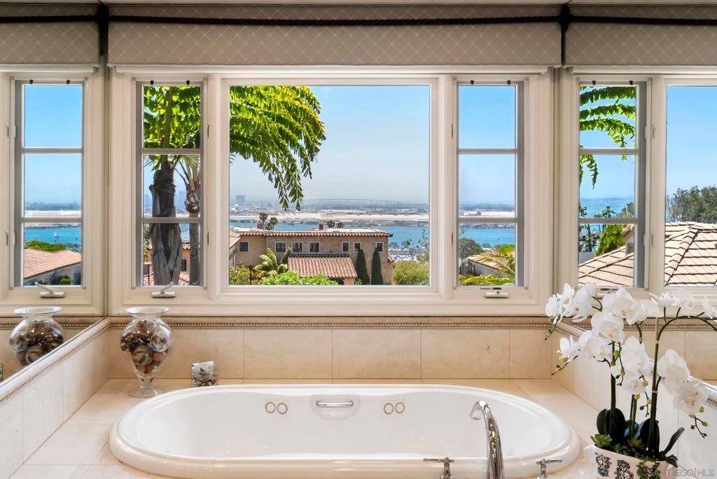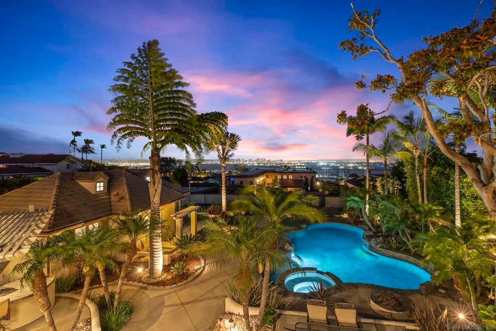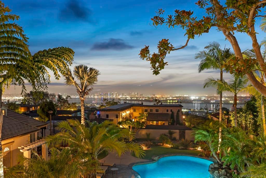 Just Reduced! Discover coastal luxury at 617 Gage Drive, an exceptional home in Point Loma’s coveted La Playa and Wooded Area. Set on a rare ½-acre lot, this 4-bedroom, 4.5-bath residence with a detached guest house offers breathtaking south-facing views of Coronado, San Diego Bay, and the downtown skyline from nearly every room. Each bedroom includes an en-suite bath and walk-in closet, while the open, light-filled layout features original hardwood floors and a modern chef’s kitchen with stainless-steel appliances and custom finishes. Two upper-level balconies invite seamless indoor-outdoor living and panoramic views. Step outside to a resort-style backyard oasis with a sparkling pool and waterfall, spa, outdoor fireplace, basketball court, putting green, and multiple areas for dining and lounging—perfect for entertaining or relaxing in the sun. The home also offers solar panels, a Tesla charger, and a 3-car garage. Located on a quiet, tree-lined street just minutes from Liberty Station, Sunset Cliffs, the bay, and top-rated schools, this property combines timeless elegance with modern comfort. With its protected view corridor and premier location, 617 Gage Drive presents a rare opportunity to own a truly exceptional piece of coastal San Diego real estate. Elegant. Private. Distinctly La Playa.