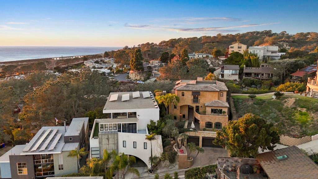 PHENOMENALLY PRICED....Tucked into the hills of Del Mar Terrace with views of the Pacific Ocean and the Torrey Pines Reserve is this masterfully built, modern Italian villa. Custom designed and constructed with extraordinary materials and workmanship this home offers privacy and exudes quality. Complete with 4 bedroom suites, each with outdoor access, a sound proof gym, wine cellar, elevator, 3 fireplaces, outdoor spa with ocean view, cook's kitchen, walk- in pantry, primary retreat with 2 walk-in closets, and 3 car garage. Incredible opportunity to live life above the fray! Located minutes to the beaches and California surfing, the Village of Del Mar, hiking and golf at world class Torrey Pines, the Del Mar Race Track, shopping and dining, just 30 minutes to public and private airports, 3 universities and downtown San Diego. The best known secret in Del Mar is the neighborhood of Del Mar Terrace with its viby, eclectic charm offering exclusivity, luxury and privacy, a blend of cutting edge design, panoramic views and a lifestyle and community that values privacy and quiet, but remains close to nightlife, fine dining, entertainment and outdoor endeavors. Priced below replacement cost - Nothing compares.