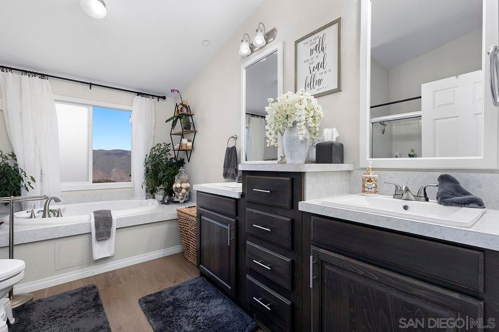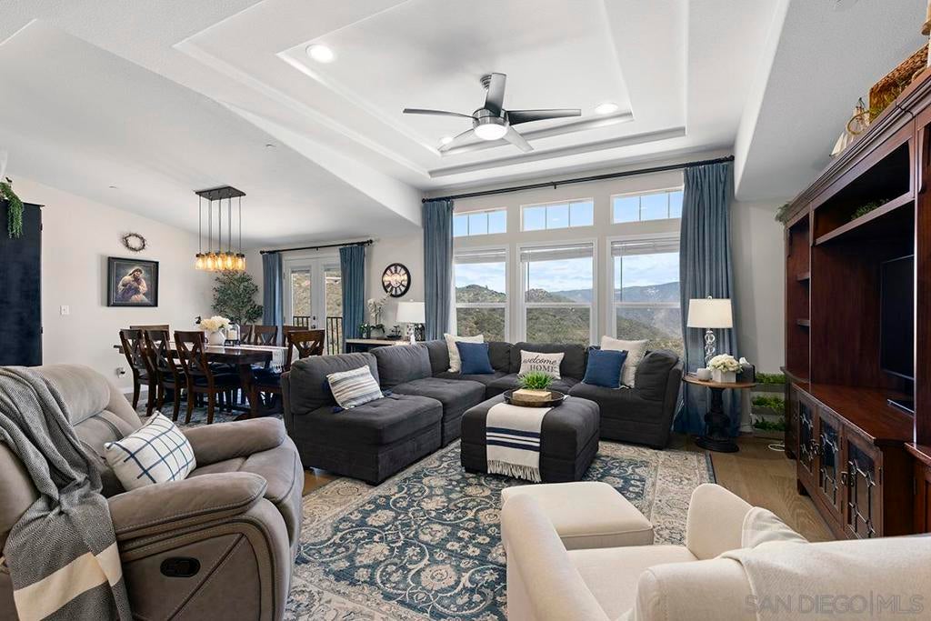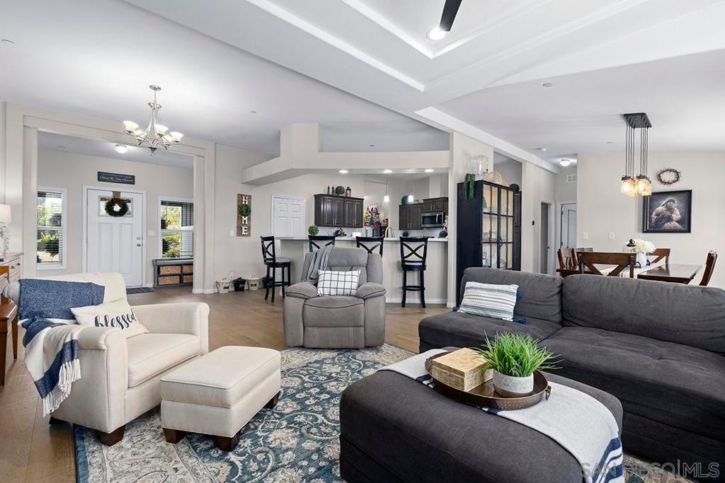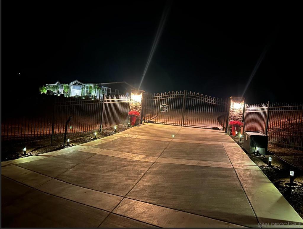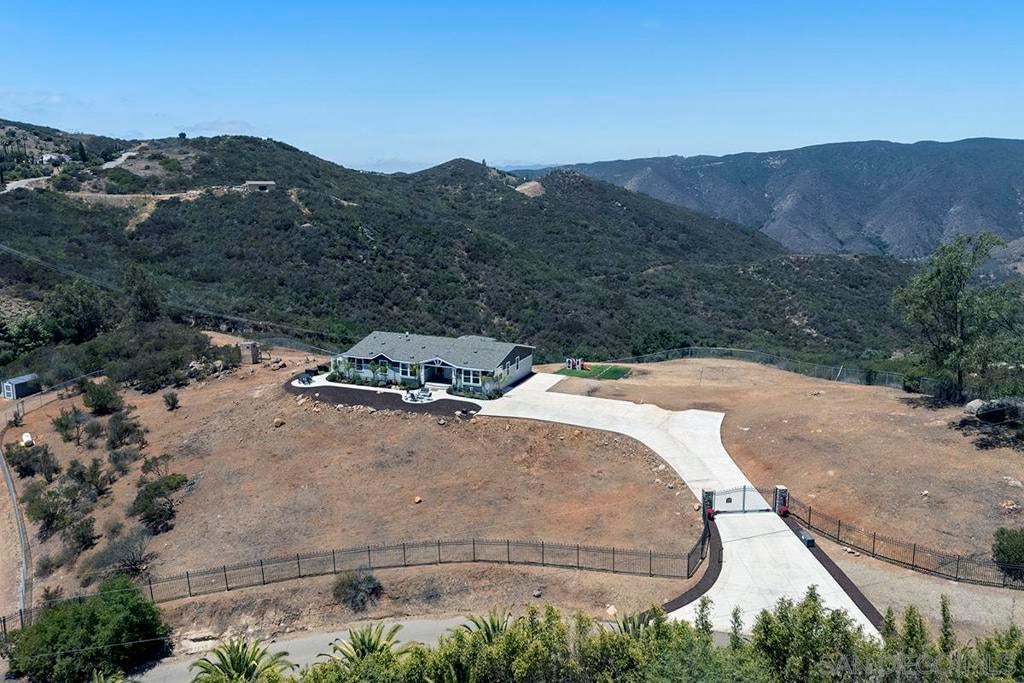 Panoramic views on almost 10 acres only 5 minutes from the 15 freeway! Almost new and move in ready. This home has it all from real hardwood floors, central A/C, vaulted ceilings with architectural elements, an oversized primary bedroom and the list goes on. The electronic gated private entry to the full concrete driveway says it all. 400 amp electrical panel is ready to add more structures such as an ADU, workshop, garage, office, etc. This manufactured home is not your average manufactured home but boasts all the amenities of a conventional build and more. Spacious rooms and a huge kitchen will even accommodate large gatherings. Plans have been just approved for a three car garage with an attached office as well as a two tiered deck facing the west canyon. Two Tuff sheds as well as a 40 foot container convey with the property.