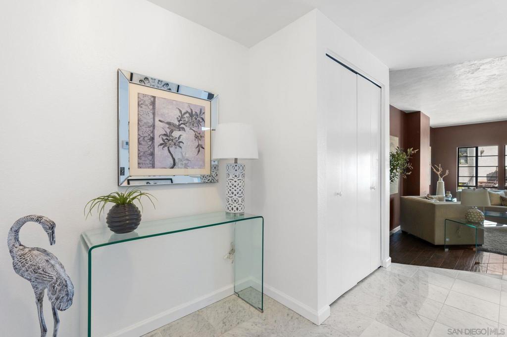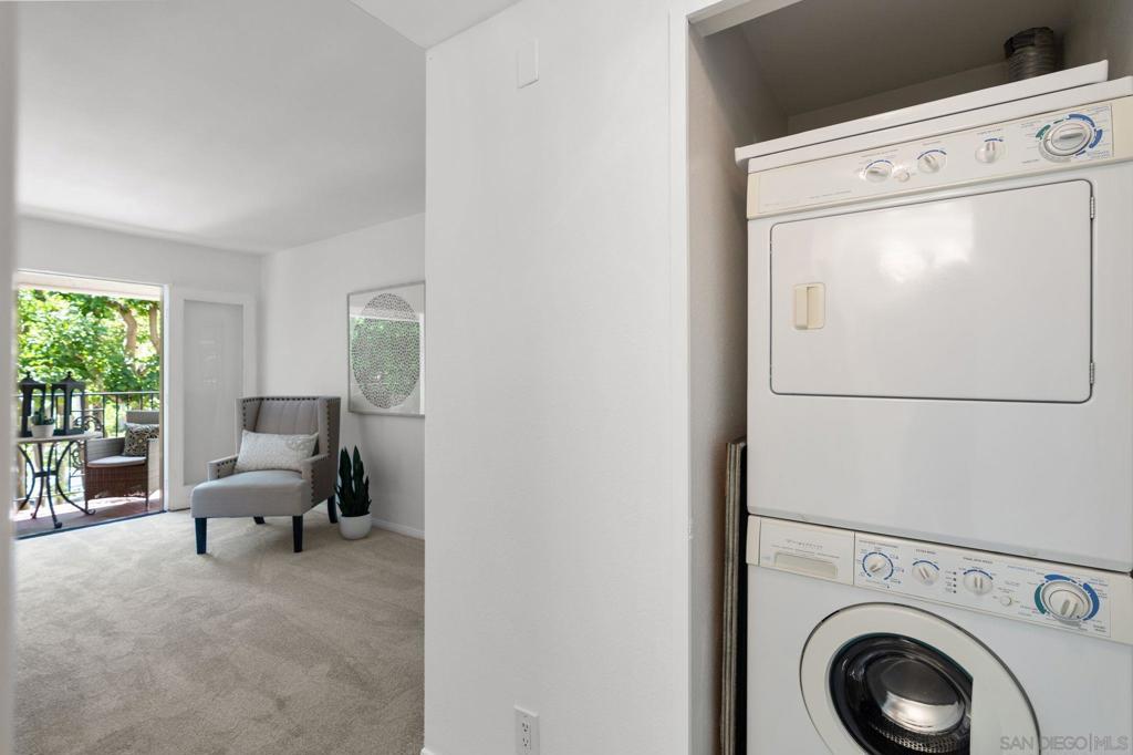 Welcome to this top floor condo in sought after in La Costa, nestled in a gated complex just minutes from world-class golf courses, shopping, dining, and the beach. Step inside to a sumptuous interior featuring stone tile floors, high ceilings and gas fireplace in the spacious living room. Dine with friends under the twinkle of crystal embellished fixtures in the open dining area or sip coffee on one of the two private balconies ideal for enjoying the morning coastal breeze. In unit laundry plus AC. Additional highlights include in-unit laundry, great storage with pair of closets in the primary bedroom, efficient wet bar, and access to the community pool, spa, redwood rock sauna and charming gated landscaped grounds. Gated parking with conveniently located assigned parking space with storage. HOA pays water, sewer, trash and gas utilities. Owner pays electricity, cable & wifi.