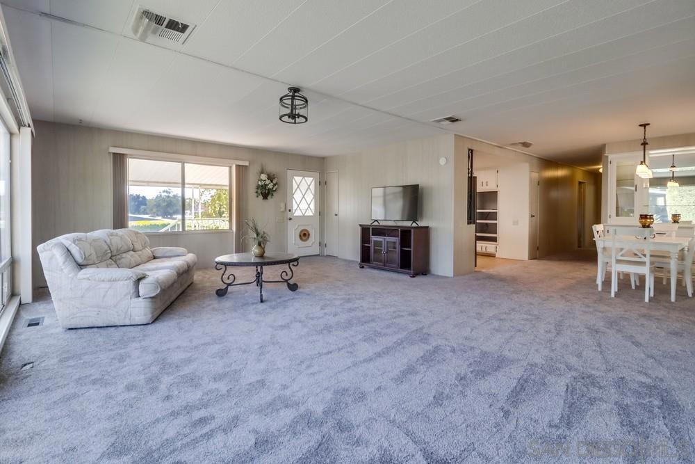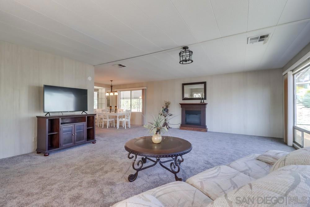 Beautiful Gated Retirement Living with a Private community 9 hole Golf Course. This 2Bd/2Ba home offers a semi circular driveway, covered parking and large covered front porch. Enter into the spacious open living area with electric fireplace and newer carpeting, dining room and kitchen. The roomy Master Bedroom has 2 mirrored wardrobes and an enclosed patio room (not in sqft) (See Supplement for More). for additional sitting area, hobby room or??? Fully landscaped front & rear yards, covered patio in rear yard with beautiful sitting areas, covered work space behind the carport perfect for all your outdoor projects. Skyline Ranch community includes swimming pool, clubhouse, gym and more all in a beautifully maintained gated community.