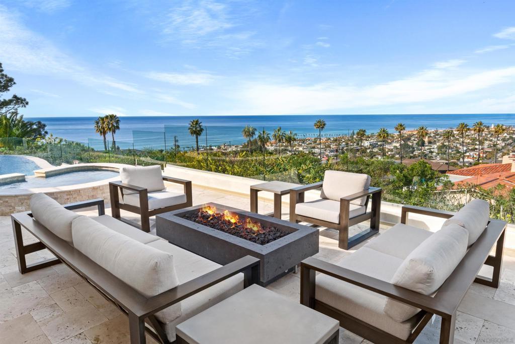 Luxury Vacation Rental. Stunning La Jolla ocean view estate. Furnished rental available during Winter & Summer break. Beautiful water, coastline, and golf course views throughout. The home has high-end upgrades from top to bottom. Spacious chef's kitchen with large custom island. 4 bedrooms all with en-suite bathrooms. Large master suite with a fireplace, spa bathroom with steam shower, and a large ocean view deck. Beautiful La Cantina doors create an amazing indoor/outdoor living experience. Enjoy the views from the gorgeous infinity edge pool and spa. The pool also has a large Baja shelf perfect for lounging. The exterior also features a covered fire pit and lounge/seating area, a BBQ island/bar, turf yard, and a trampoline. The property is close to the beach, Village, shops, restaurants, etc. This is the prefect home for the ultimate vacation. Available 7/11/26-8/15/26.