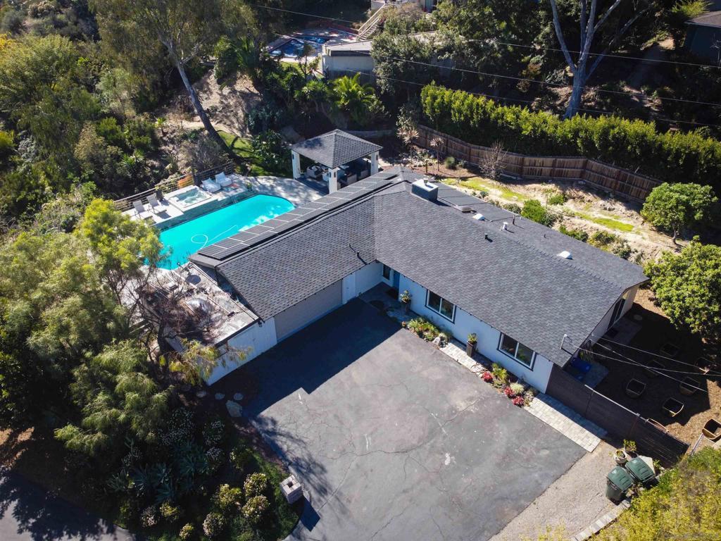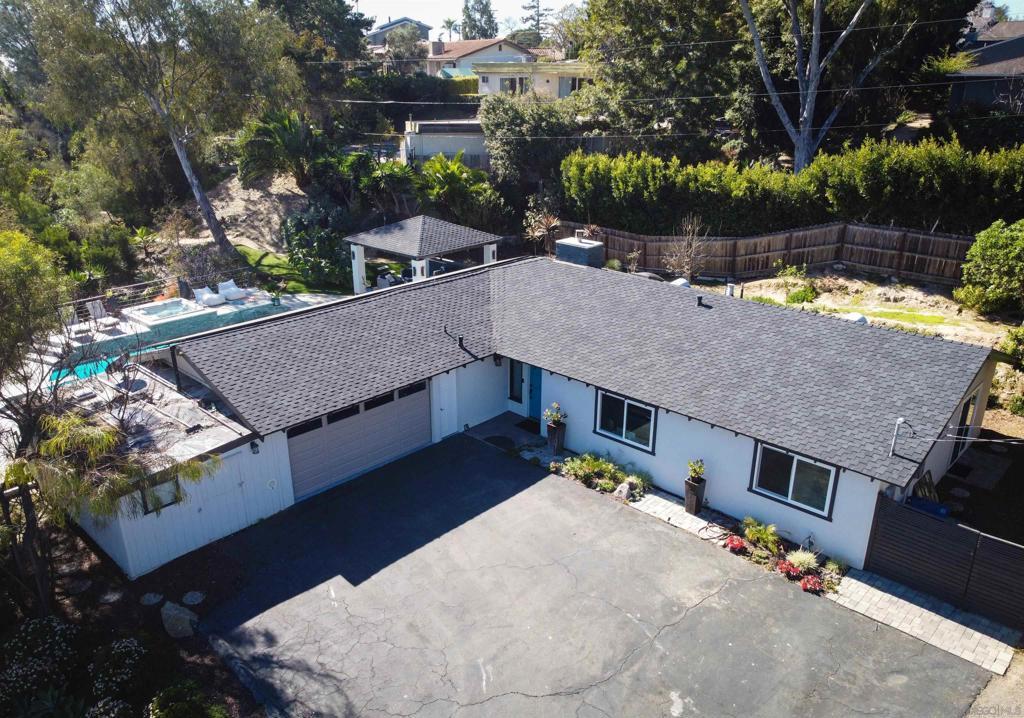Beautiful Farm style Solana Beach property with south facing ocean views of La Jolla Cove in highly sought-after neighborhood off Lomas Santa Fe with private lane off Glencrest Dr. Home is engulfed on 1/2 an acre of tropical luscious towering trees & foliage creating a private sanctuary backyard. Current home is turn key beautiful 3 bedroom, 2 bath remodeled single-level home w/coastal feel offers an open floor plan w/original cedar vaulted ceilings in family area & gas fireplaces inside &out. Attached garage, large driveway & side yard offer plenty of parking/ will accommodate an RV or ADU potential. Home also comes with APPROVED and payed for permits & plans by City of Solana Beach & Coastal Commission to add on 765 sqft 2nd story master bed/bath+balcony. Additional 172 sqft stairway+laundry room. 45 sq ft Rooftop deck, larger garage w/game room option & 500 sqft lanai veranda for full indoor outdoor modern living. (see 3D renderings of architectural designs). Home has been an AirBnB, VRBO rental w/approximate rental income of 170k (2023) $216k (2024). P&L's available on request should buyer be interested in continuing this rental business. West of 1-5, only minutes to major beautiful beaches, freeways, shopping centers, Coaster/Amtrack, Cedros Design District, Racetrack, & Del Mar fairgrounds. Excellent Public Schools: Solana Vista, Skyline (walking distance), Earl Warren (walking distance) & Torrey Pines High School.