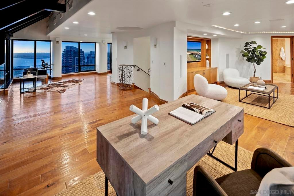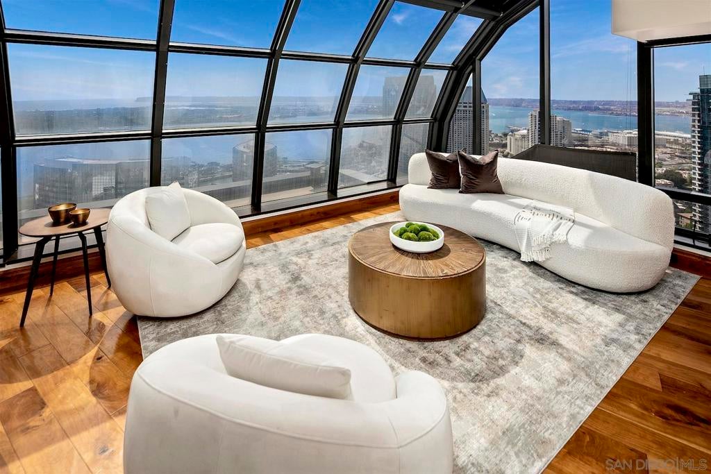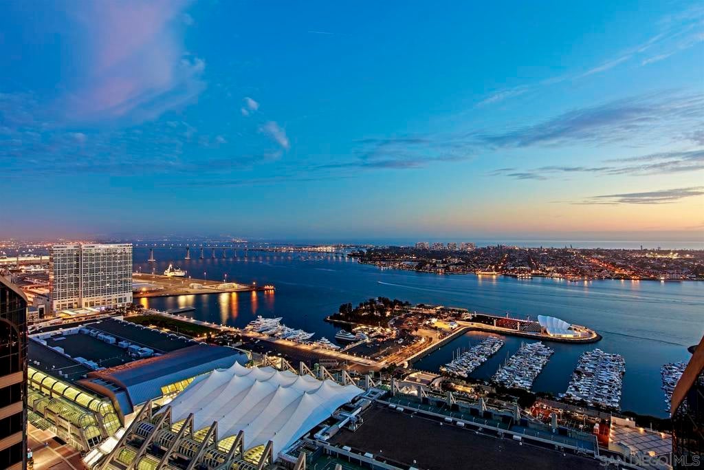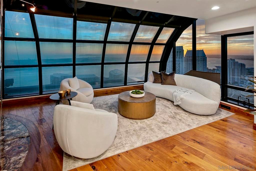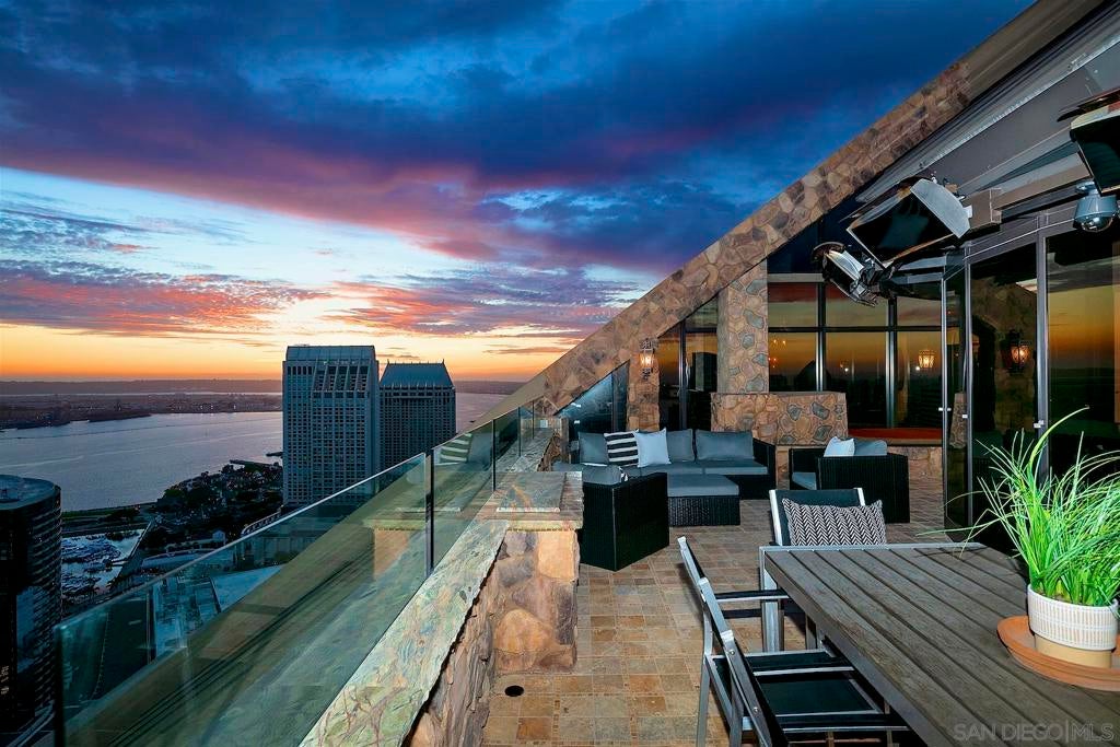 Enjoy breathtaking 360-degree ocean, San Diego bay, Downtown cityscape & surrounding landmark views! Along with views from every room, you will be embraced by thoughtful design that takes full advantage of the dramatic architecture & incorporates the finest finishes creating an exceptional private paradise soaring above the city! Located on the 41st floor, you will be greeted by the grand foyer that leads to the main living level with formal living & dining rooms, a gourmet kitchen, 2 en-suite bedrooms & the first of 3 outdoor spaces, spacious & complete with an outdoor kitchen. The second floor is dedicated to the expansive primary retreat that provides sitting & office areas, luxurious spa-inspired bath & two terraces! Harbor Club continues to be an icon of luxury living with an abundance of resort style amenities! Rarely does the opportunity come along to own one of the few, true penthouses in Downtown San Diego. Enjoy breathtaking 360-degree views of our unique & special San Diego landscape that includes ocean, San Diego bay, Downtown cityscape & surrounding landmark views. Along with views from every room, you will be embraced by thoughtful design that takes full advantage of the dramatic architecture & incorporates the finest finishes creating an exceptional private paradise soaring above the city! Located on the 41st floor, you will be greeted by the grand foyer that leads to the main living floor with formal living & dining rooms, a gourmet kitchen with custom cabinetry, breakfast bar & top of the line appliances, 2 bedrooms, both en-suite & the first of 3 outdoor spaces, spacious & complete with a pizza oven & Evo grill. The second floor is dedicated to the expansive primary retreat that includes sitting & office areas, luxurious spa-inspired bath & two more outdoor terraces! Harbor Club continues to be an icon of luxury living with an abundance of resort style amenities; a pool, spa, sauna, fitness center, clubhouse, firepits, sitting & BBQ areas are just a few of the ways to relax in comfort & style! An ideal location offering a tranquil retreat while remaining conveniently close to vibrant attractions and amenities. Enjoy a stroll along the harbor, take in a Padres game and plenty of restaurants, nightlife and entertainment are yours to enjoy!