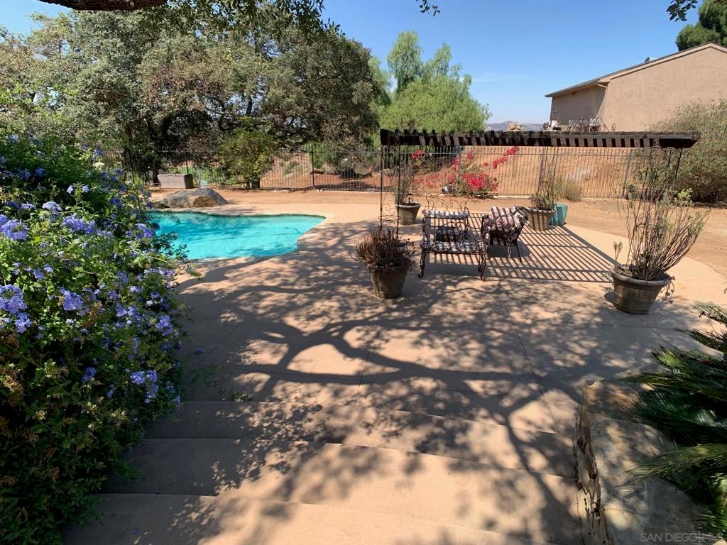 Beyond a private, gated entry lies a world meant for gathering, living, and dreaming. On a flat, useable acre framed by mature trees and golden westerly sunsets, three distinct structures create a rare multi-generational haven. The Tuscan-inspired main home, rich with high ceilings, 8-foot custom doors, earth-toned finishes, and sunlit spaces, invites you to linger—whether by the family-style kitchen with its granite island and black cabinetry, or fireside under the stars beside the newly built-in firepit. The permitted loft above the garage transforms into a chic studio rental, while the cottage-inspired front home offers two bedrooms, a warm fireplace, and a private walled patio. Between them, a pool house with bath and laundry stands ready for summer days beside the sparkling inground pool. With 7 bedrooms, 5.5 baths, and over 5,400 sq. ft. of living space, this compound offers 5 laundry facilities, 2 septic systems, paid-off 38-panel solar, paved RV parking with hookups, and an oversized driveway for endless guests. Wander the small orchard—avocado, grapefruit, lemon, lime, apricot—and imagine more. Here, life is secure, serene, and full of possibilities, where privacy meets connection in perfect harmony.