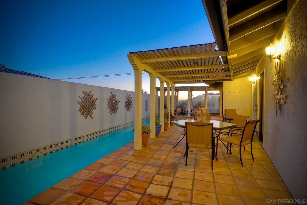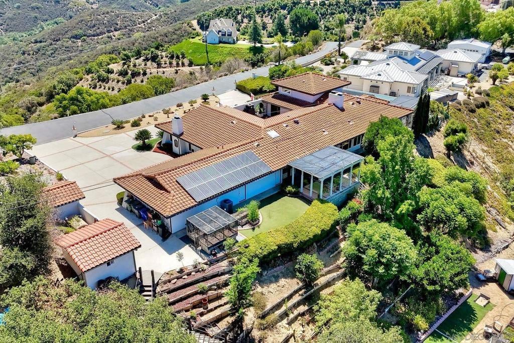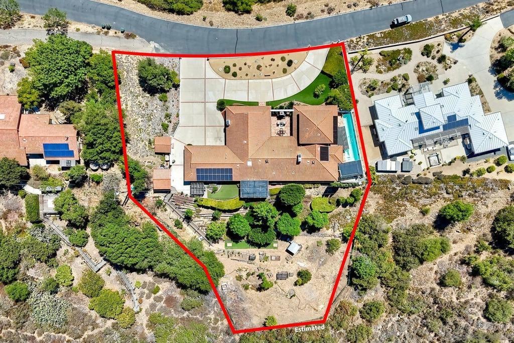 Come for the views and stay for the amazing home!! This Spanish-style home is a hidden gem located in the peaceful and private gated community of Edgewater Estates. The home has been lovingly upgraded and maintained and offers an open floor plan, an abundance of nature light and great views. Features include luxury vinyl flooring, original Saltillo tile in the hallways and kitchen, solid mahogany doors and cabinets, gas fireplaces and tall ceilings. Eighteen owned solar panels make this home energy efficient. Cool off in the lap pool and relax in the spa. Come see this one-of-a-kind home! The spacious kitchen has a large center island with waterfall edge, leather finish granite countertops, stainless steel appliances, breakfast area, huge walk-in pantry and two beverage refrigerators. Large picture windows in the living room provide spectacular eastern views. The cozy family room has vaulted ceilings, beams, wood stove with custom reclaimed wood wall and mantel. The sunroom can be used for a gym, office or additional living space. An expansive primary bedroom has a gas fireplace, bay window with storage and a large walk-in closet. Primary bath has an over-sized soaking tub, separate shower, double sinks and linen closet. Upper level can be used as an office, loft or bedroom and includes a full bathroom.Laundry room has wall to wall storage cabinets and a granite countertop. The home also features double panes windows, ceiling fans and Pella sliding glass doors with integrated blinds. The front gated courtyard has a custom fireplace. Watch the sunsets from the back patio which has remote shades, ceiling fan, Viking barbecue,refrigerator and sink. Outbuilding #1 has a hookup for a propane backup generator - a must have during potential power outages. Outbuilding #2 can be used as a workshop for the DIYer or additional storage. The acreage at the back of the property, accessible by a new Trex staircase, has raised gardening beds, a storage shed, horseshoe pits and is irrigated with sprinklers and drip irrigation.