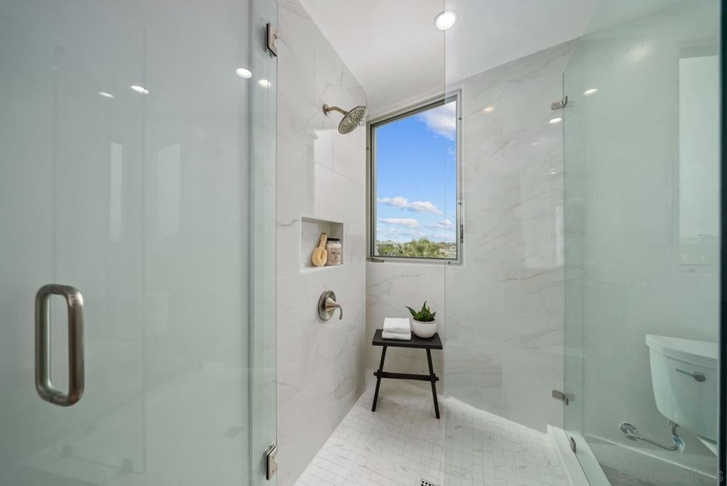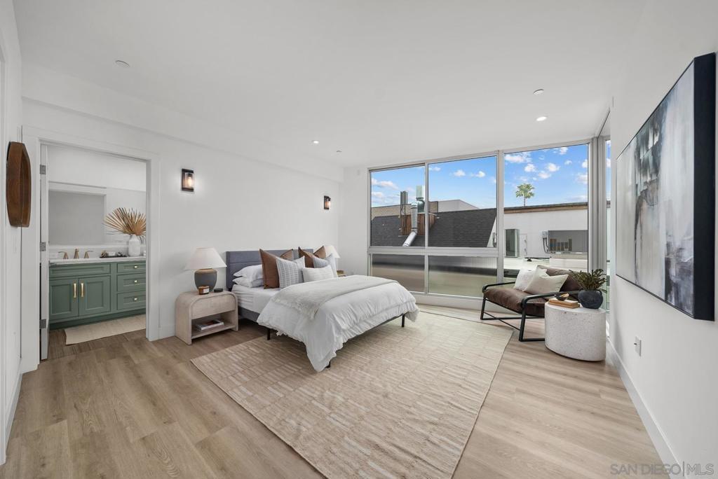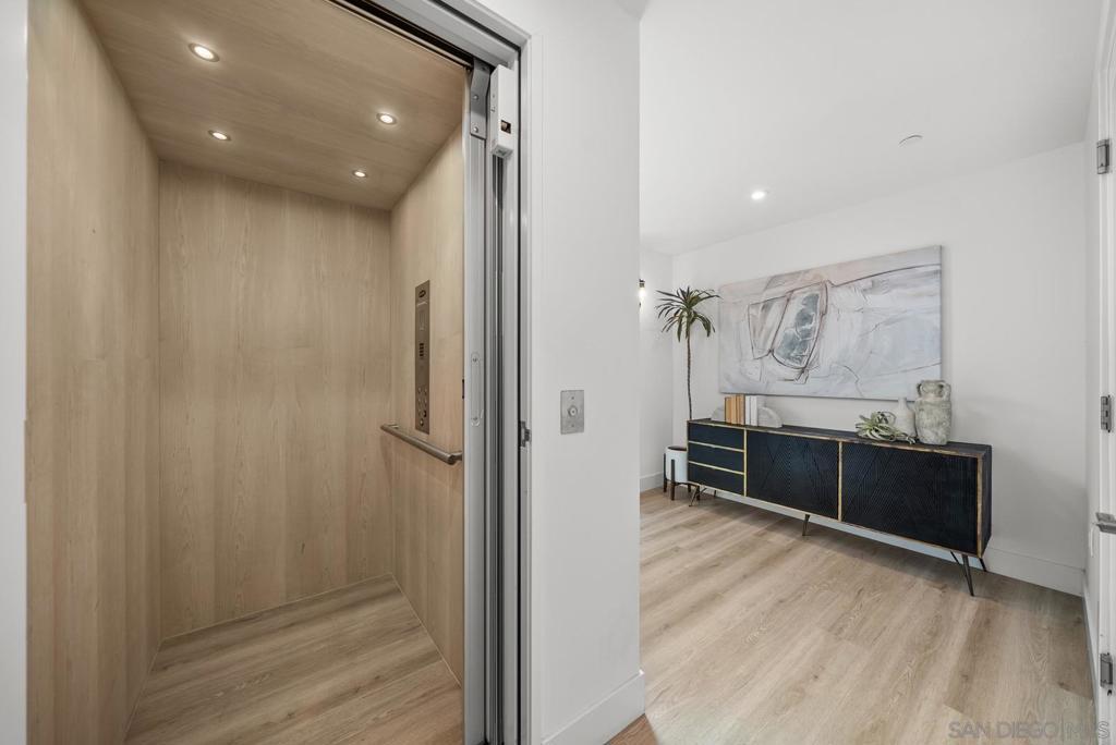 Coastal Luxury in Carlsbad Village. Built in 2022 and never lived in 4-story luxury townhome with private elevator was designed by award-winning Safdie Rabines Architects. The stunning architectural saw-tooth design floods all 2,330 sq ft with natural light. Located just a few blocks from the beach in the heart of Carlsbad Village. Interior highlights include floor-to-ceiling sliding glass doors that seamlessly blend indoor/outdoor living, two expansive private decks with glass railings offering panoramic city views, and a chef-inspired kitchen with premium Thermador appliances and sleek quartz countertops. Three bedrooms each feature an ensuite bath and closet, while high ceilings throughout enhance the spacious feel of the home. The attached, large two-car garage is EV-ready. Enjoy Carlsbad Village's vibrant coastal lifestyle with its weekly farmers market, local shops, and acclaimed dining including two Michelin-starred restaurants Jeune et Jolie and Lilo right across the street. Enjoy sunsets from your private decks while ocean breezes flow through your light-filled home. Property is no longer staged.