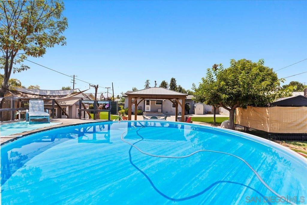 Nestled in the heart of Bostonia, this meticulously maintained original owner mid-century cottage sits on an expansive, flat 1/4 acre lot (11,300 sq. ft lot), offering a rare combination of charm, functionality, and future potential. A welcoming front porch overlooks a lush, manicured lawn framed by a stately shade tree, setting the stage for the warmth and character found within. Inside, the beautifully remodeled kitchen blends vintage allure and modern elegance, featuring a classic chrome-top O’Keefe & Merritt stove, sleek quartz countertops, and generous cabinetry. The open floor plan invites easy living, seamlessly connecting to the outdoors for year-round enjoyment. Step outside to discover a private backyard retreat designed for relaxation and entertainment, complete with a spacious wood deck, a 12x14 gazebo with solar lighting, a Kevlar-reinforced sunken above-ground pool, and new low-maintenance turf surrounded by mature fruit and shade trees. The expansive lot offers gated side access—ideal for RVs, boats, or off-road vehicles—and presents an excellent opportunity for a future guest house or ADU. Additional highlights include quality craftsmanship, central A/C, fresh interior and exterior paint, a two-car garage with built-in cabinetry, extra outbuildings, and an automated sprinkler system. Perfectly situated with walkable access to shops and dining, and just minutes from schools, parks, and freeways, this property is a rare find with timeless appeal and limitless possibilities.